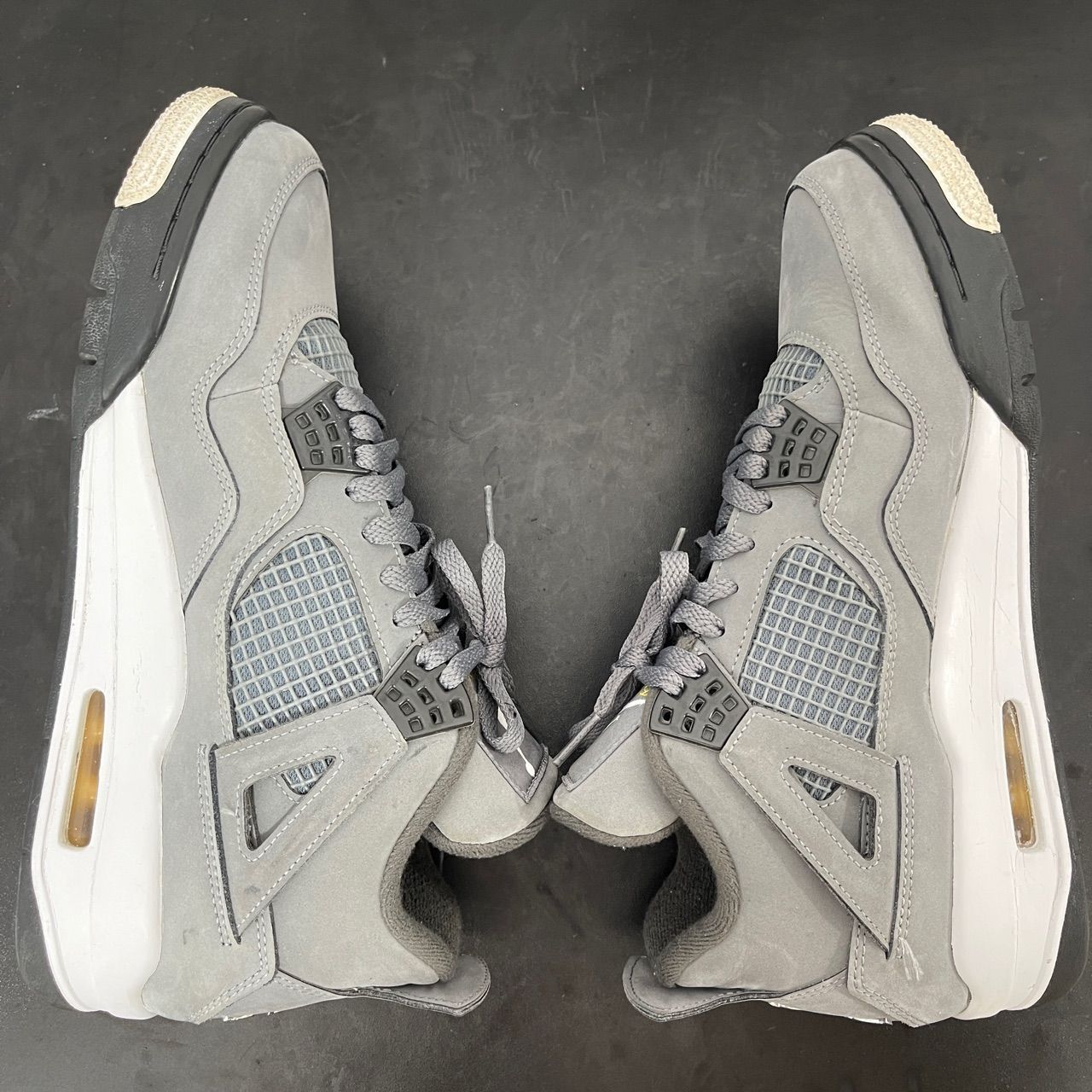 AJ4酷灰在4代里的颜值应该可以进前5吧?没人反驳的话我接着吹了(讲真的) 灰色的配色很耐看而且很百搭!这就是为什么价格 一直居高不下的一个原因虽然有点小冷门但是绝对不影响它是一双好鞋 可能你会说,这个麂皮的鞋面不太好打理! 自穿很久了 说实话只要不是油点粘鞋上都不是大问题 灰色本来就耐脏一些灰尘剐蹭在酷灰上基本看不出来 相对来说,还是比较好打理的老款的4代版型也好看