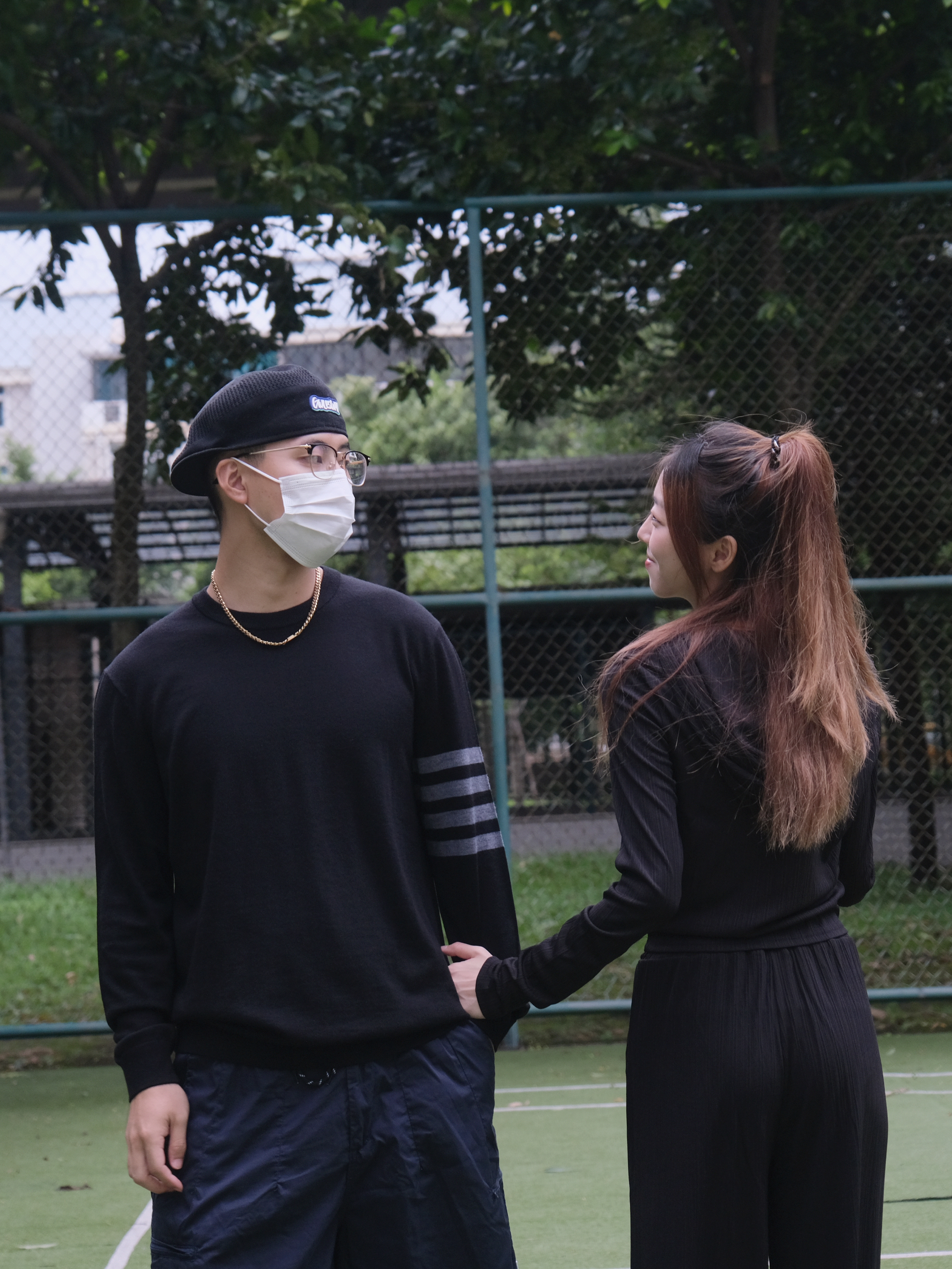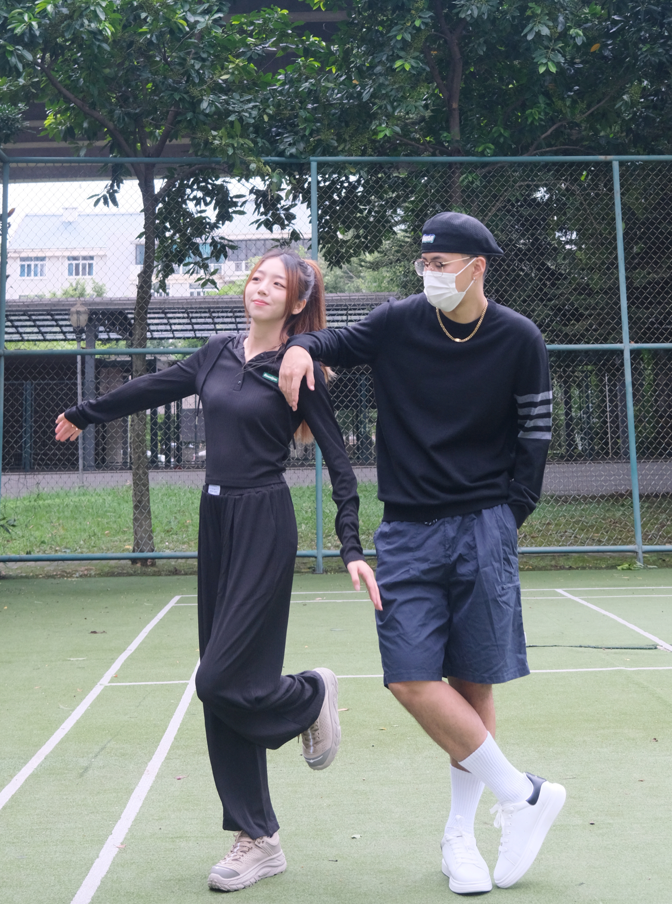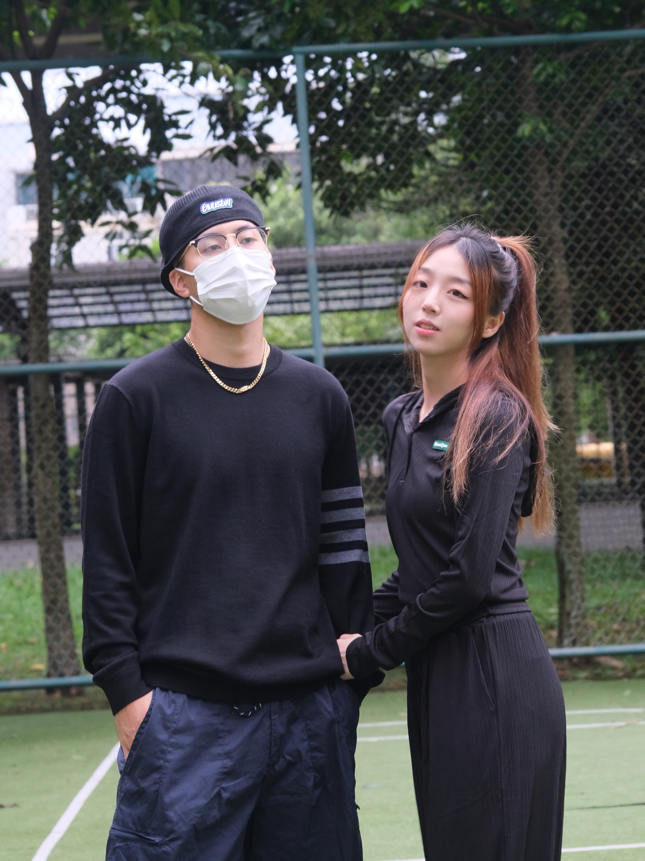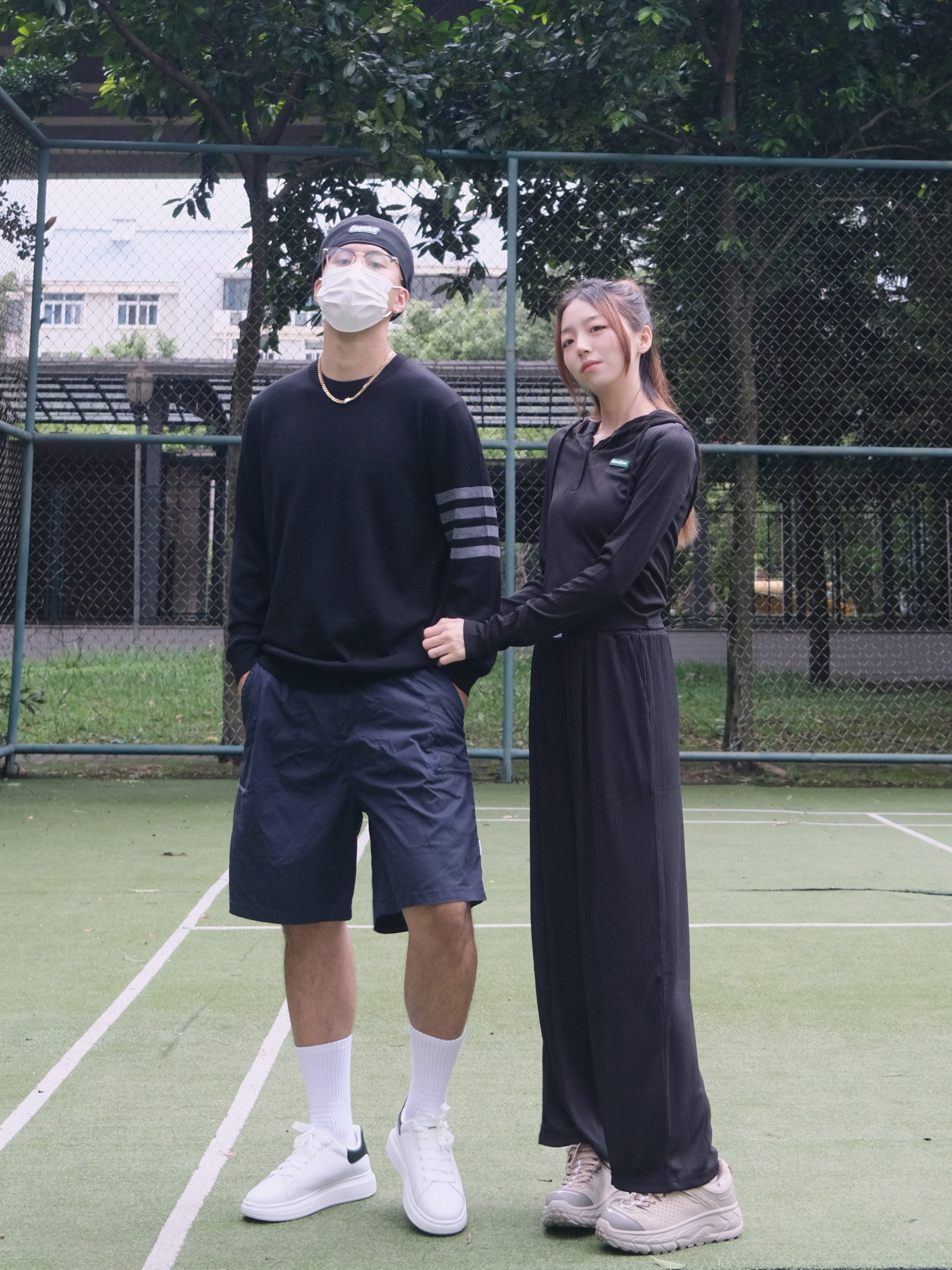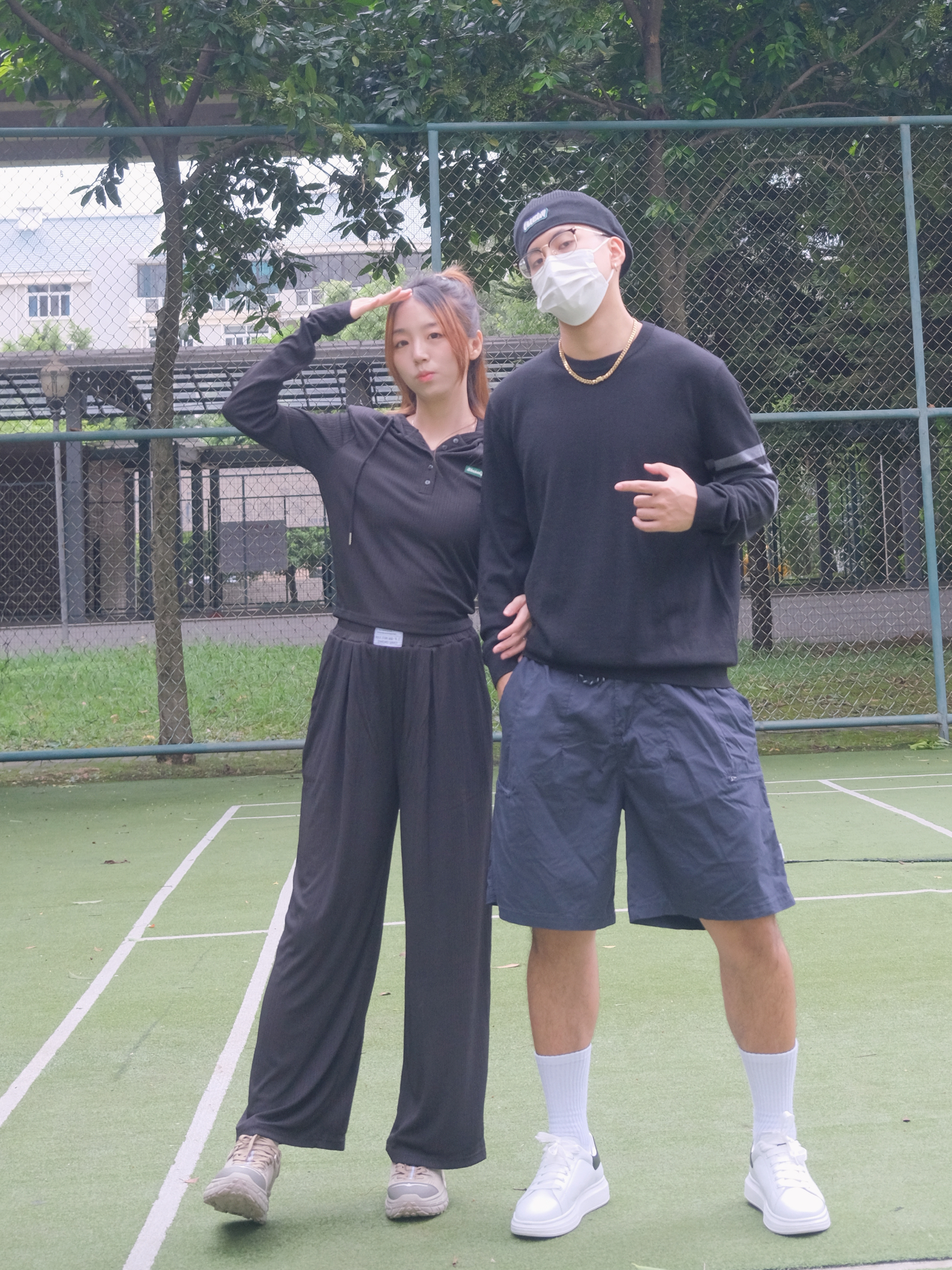 欢迎大噶来到我们情侣穿搭频道💗 👧:168/44 👦:182/70 在我看来秋天就很适合高级一点的穿搭~ 今天就做黑色系的小情侣惹🖤 男生黑色羊毛衫穿起~搭配上一条工装短裤 简约的穿搭但却看着不平凡😏 女生就选择一套舒服的黑色套装吧 懒人的必备啦~ 入秋开学季 回头率超高的情侣穿搭就这套啦