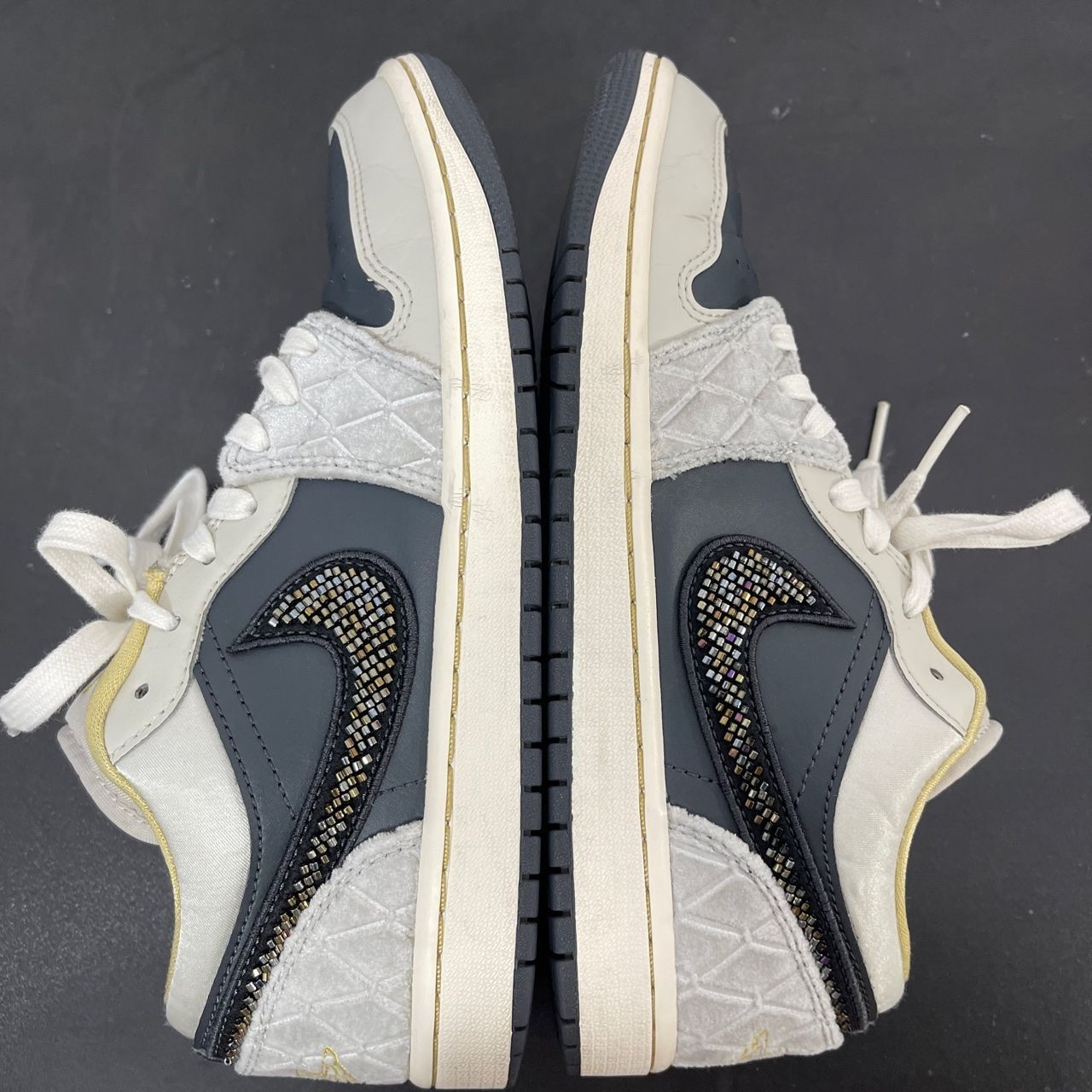 本篇笔记关联了Air Jordan 1 板鞋 运动休闲鞋 复古潮流支撑合成革 低帮/黑灰绸缎/彩虹串珠等商品,为用户提供真实的使用体验和购买参考。