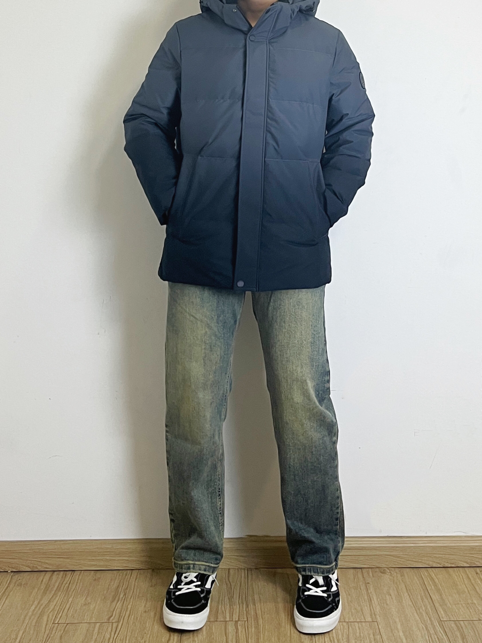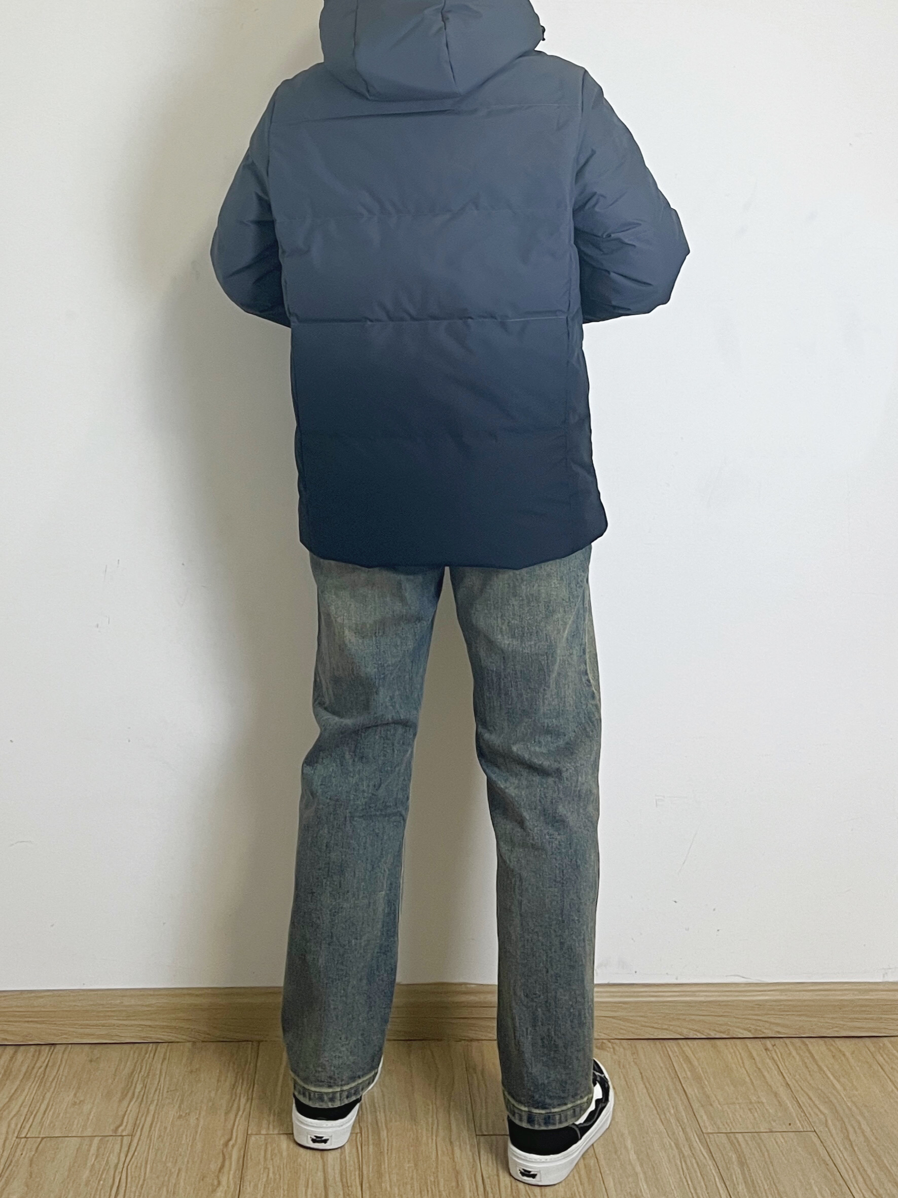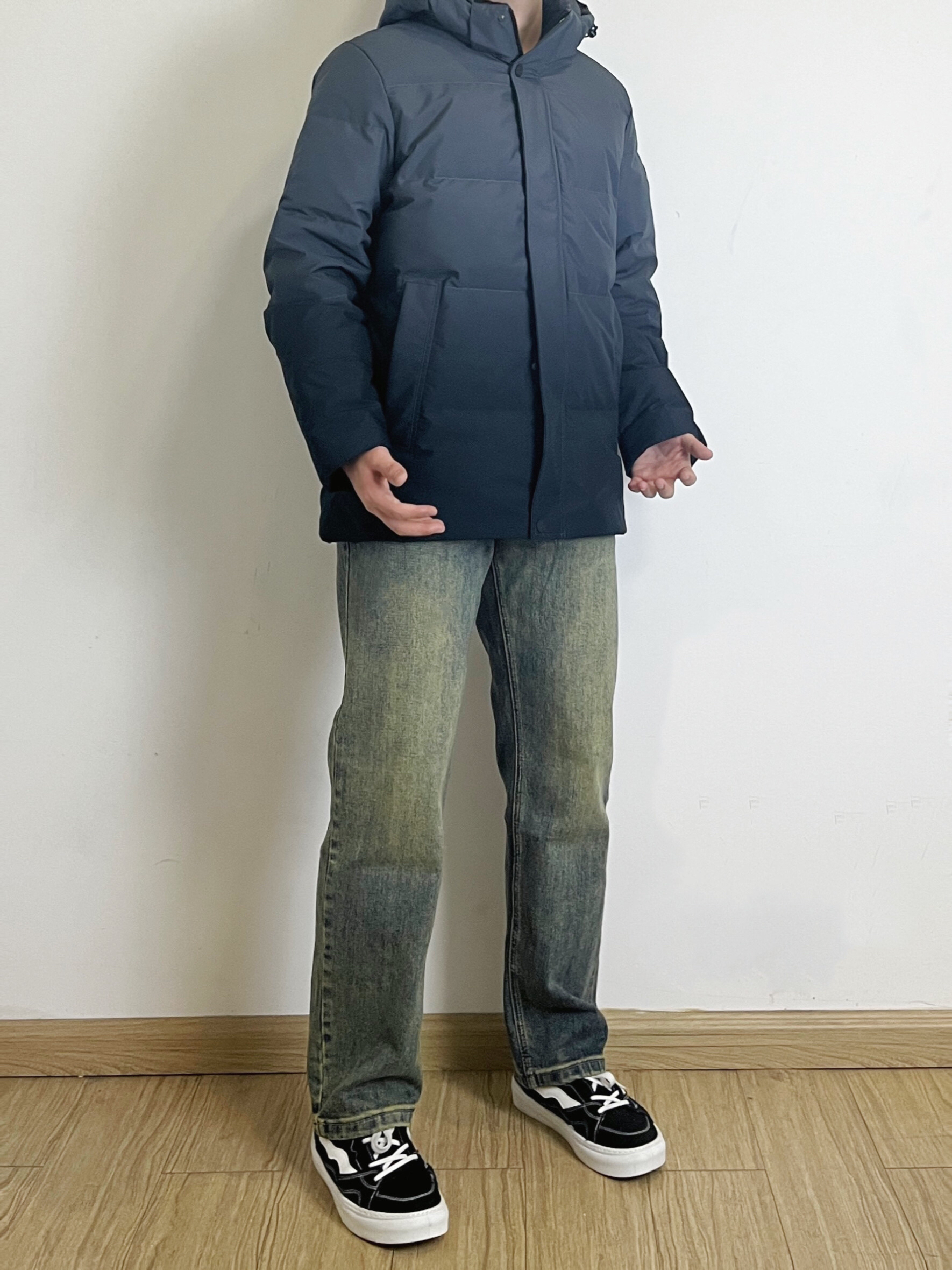 😼身高178体重68 冬季降温了兄弟们🥶 入冬保命羽绒服得穿上了 美式复古羽绒服穿搭分享 黑灰色 波司登 美式简约羽绒服 搭配上复古蓝美式做旧牛仔 黑色跟蓝色的撞色搭配真的帅 羽绒服简约的配色加上渐变的小细节设计 整体简单的同时又不失帅气 而且90%的绒子含量保暖性也是非常不错的 搭配上美式牛仔的做旧设计美式复古感直接拉满 兄弟们入冬了保命羽绒服穿搭这样穿真的太帅了