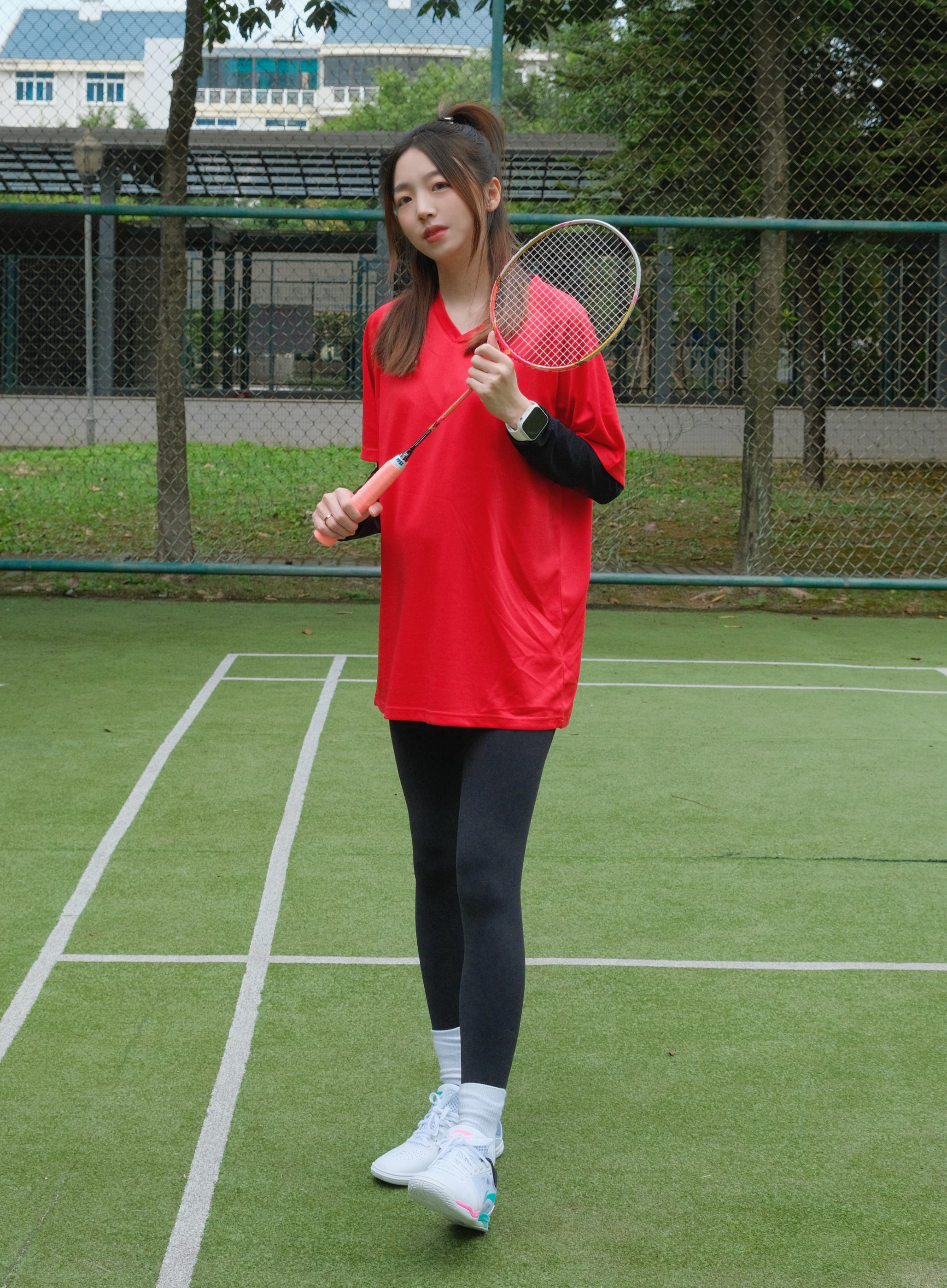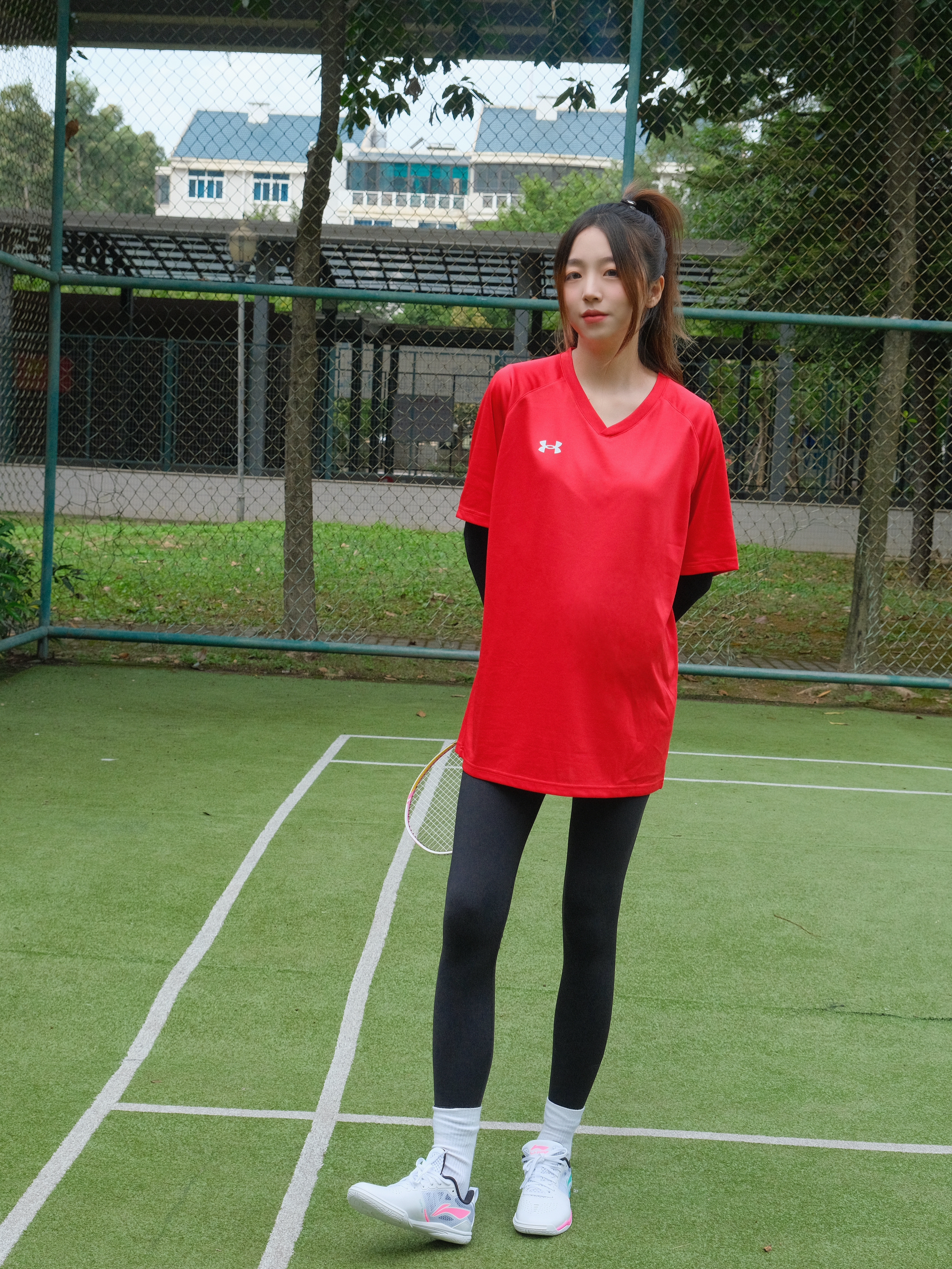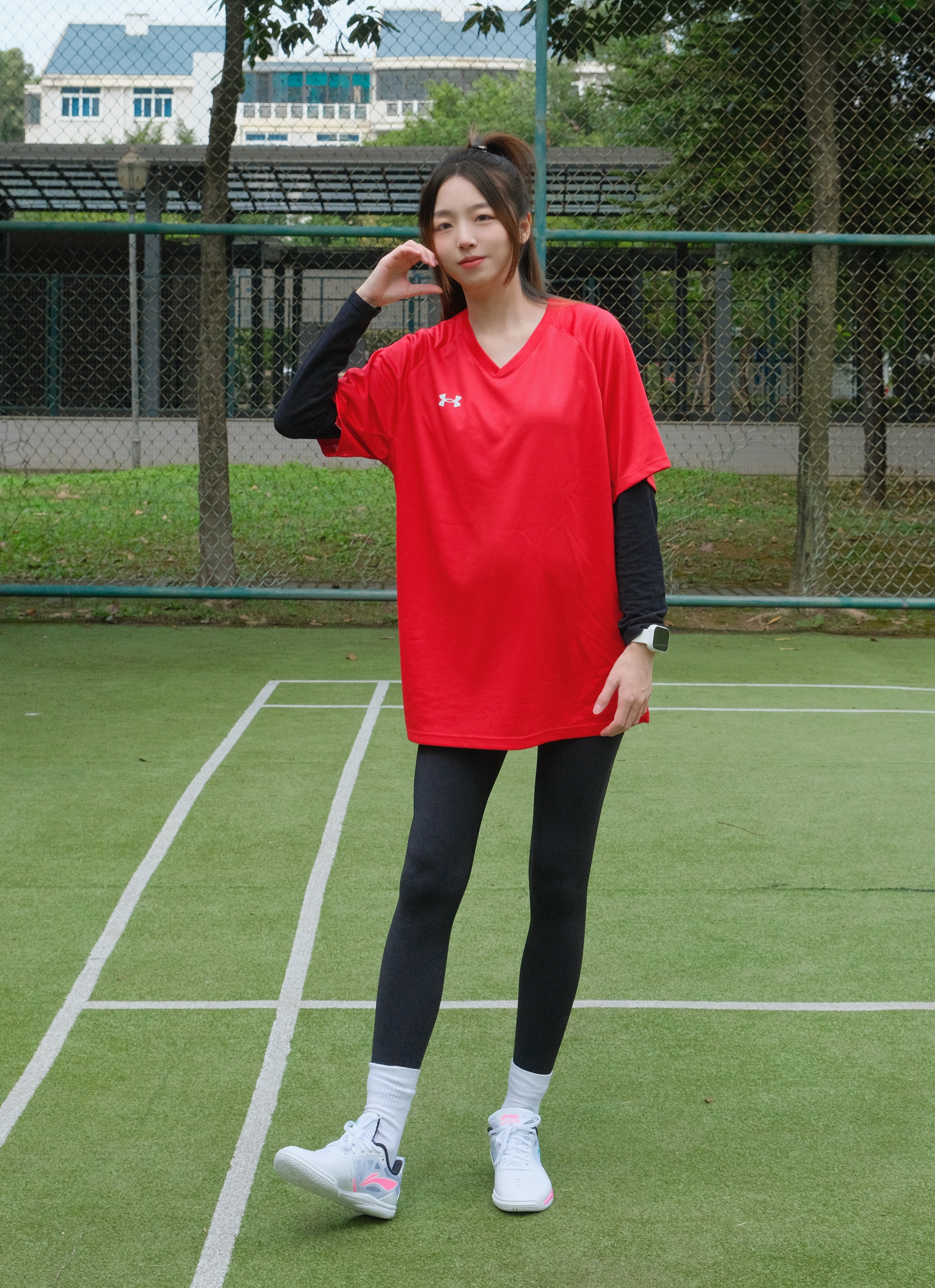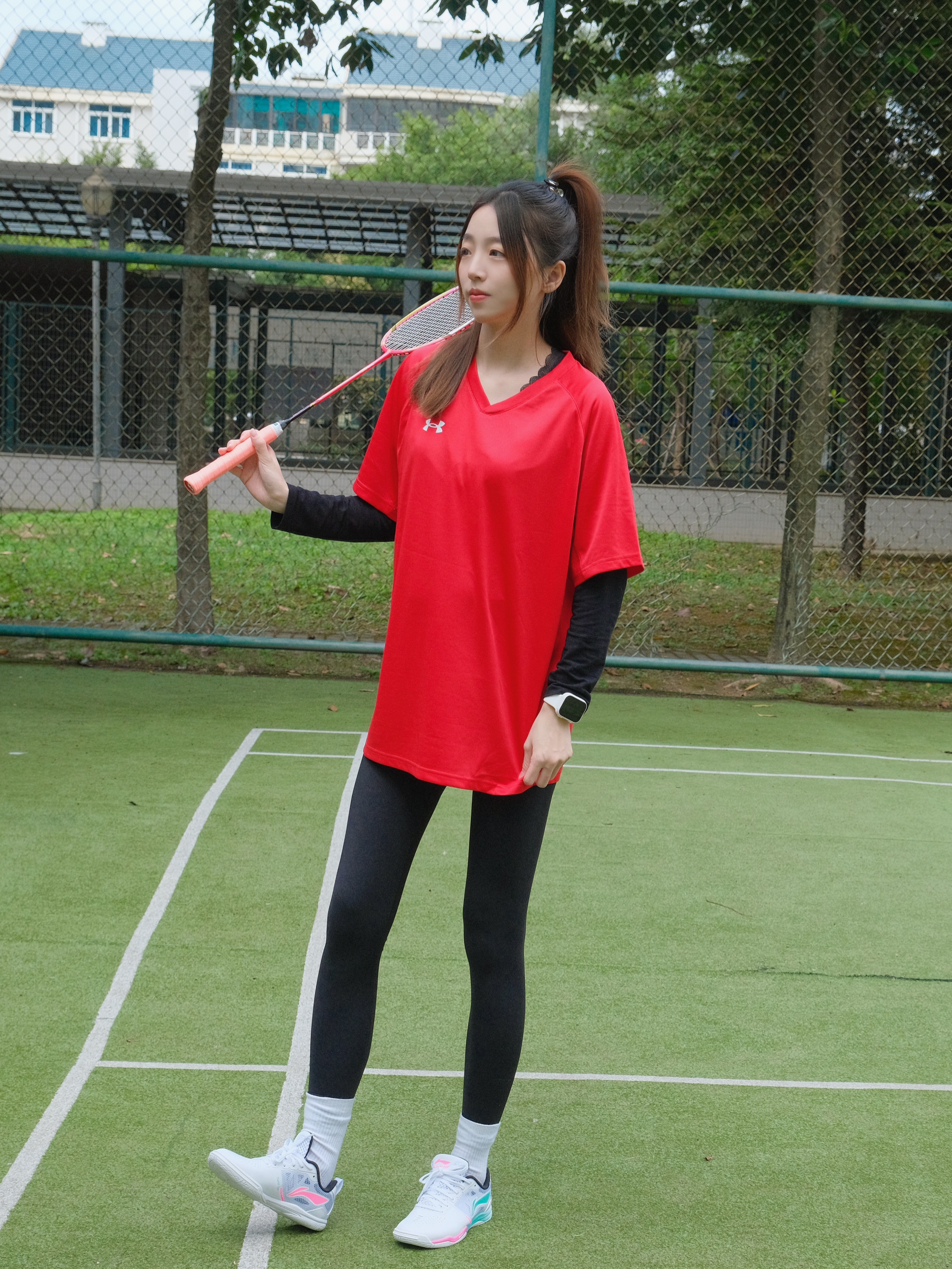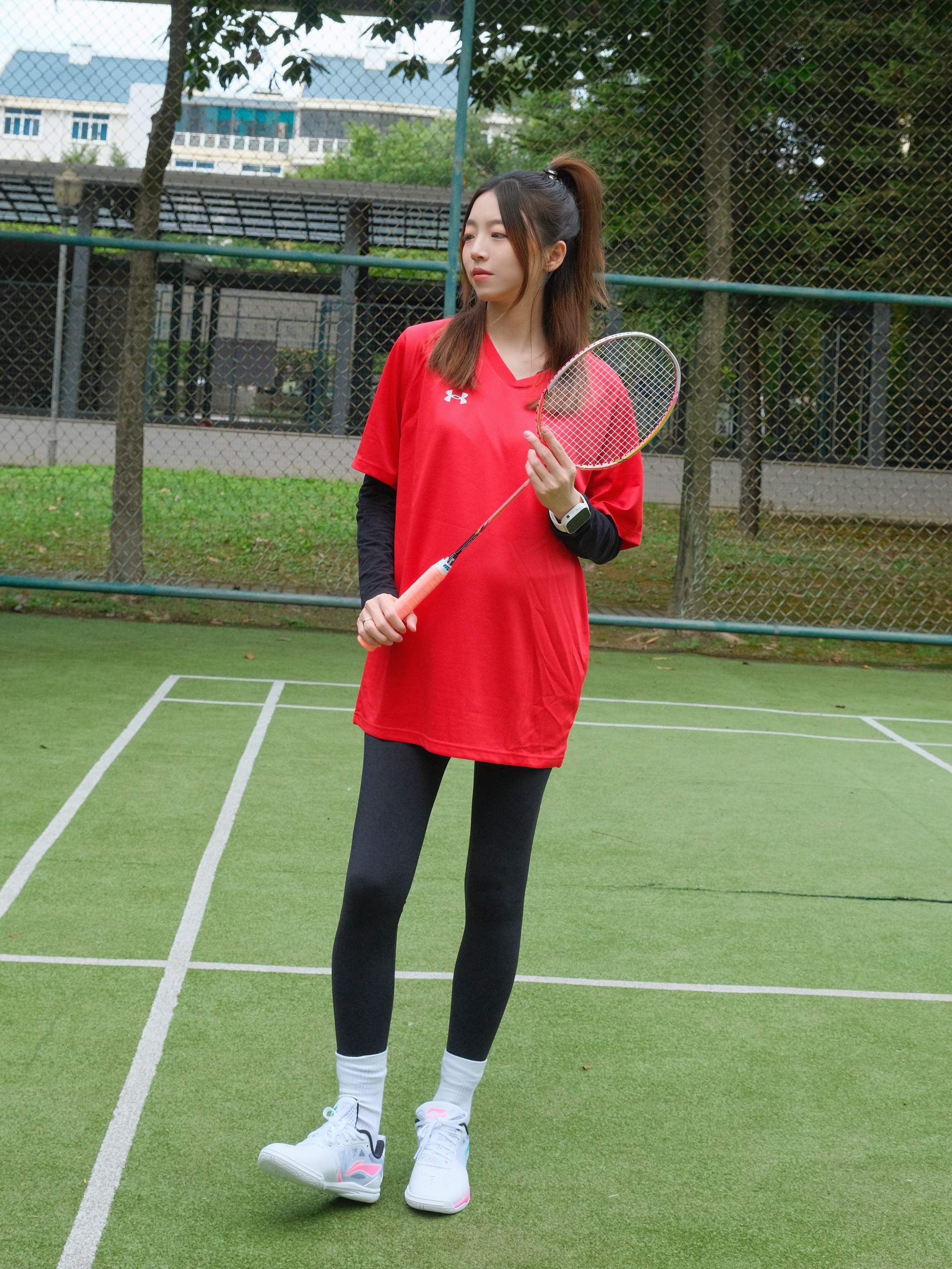 👧:168/48 ———————运动look🌟————————— - 快到元旦圣诞啦! 运动短袖也选择了红色系❤️❤️ 打羽毛球就喜欢穿这种速干滴 做球场上最靓的仔😎 - 搭配上瑜伽裤 运动起来无束缚~ - 专业的运动鞋🏸也安排上惹~ 一点点荧光粉💓➕绿💚好好看! 粉绿cp大旗我来扛~