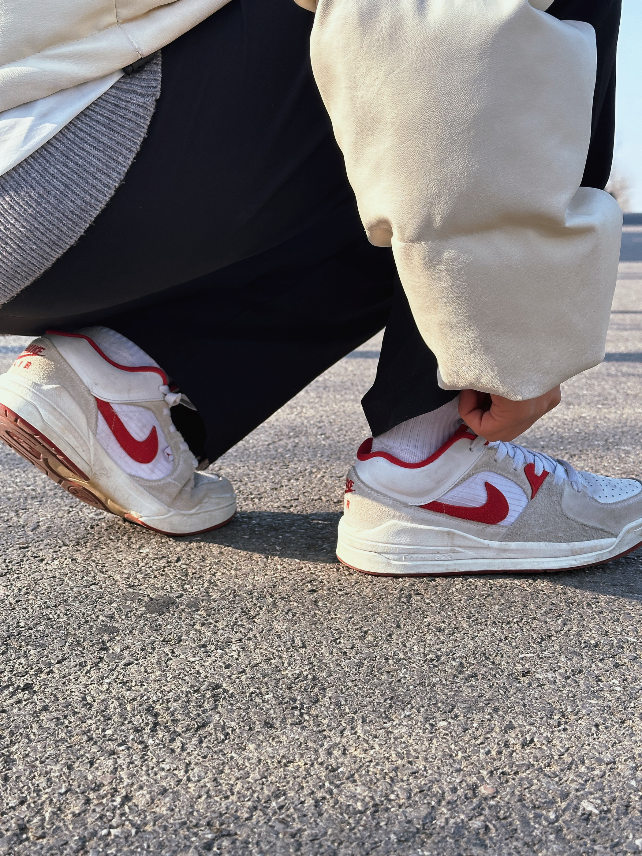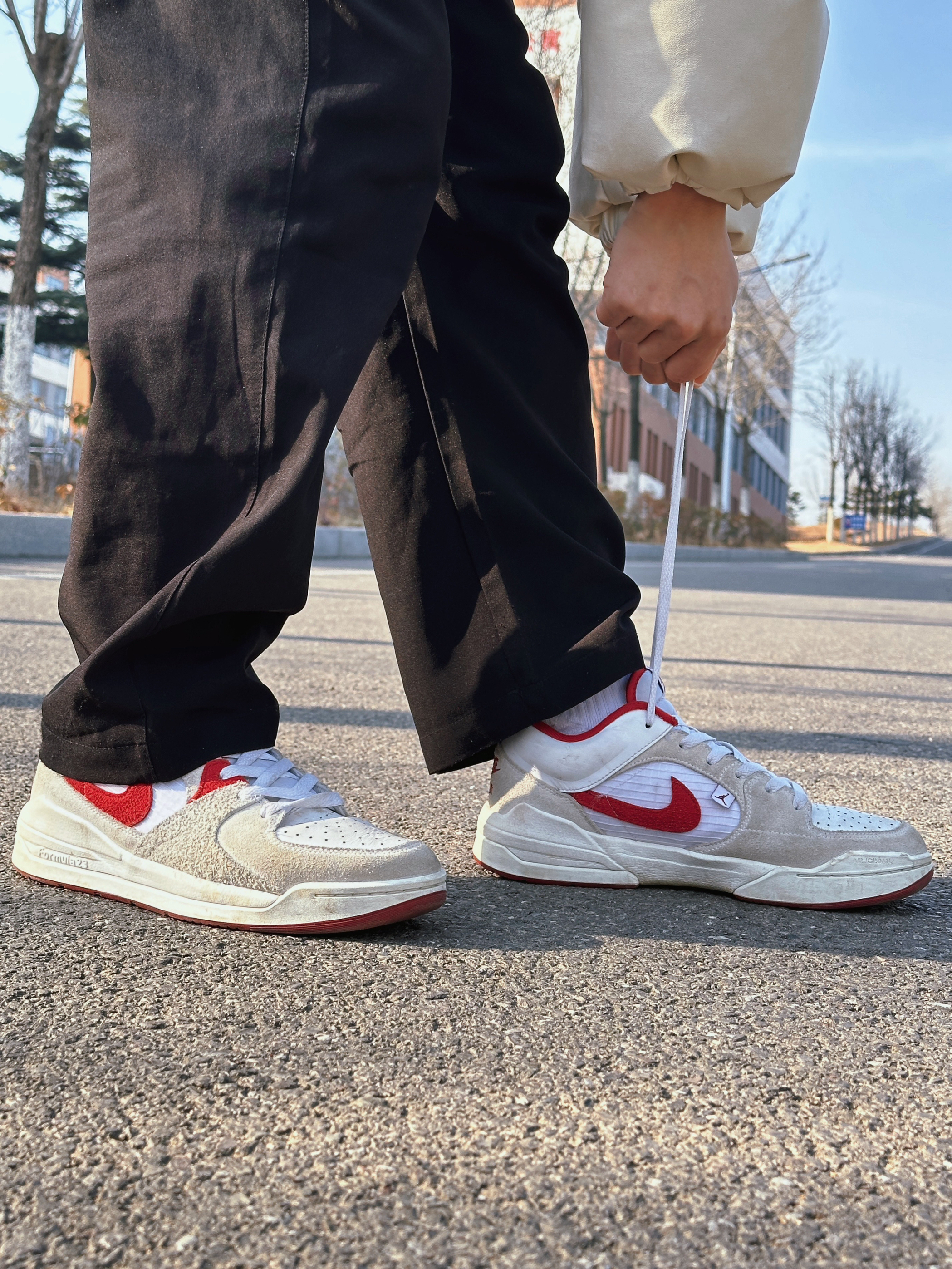 入手这双板鞋挺长时间了,非常喜欢这个板型设计和配色😎 可以说是aj1和aj5相互配合的鞋子,将两双鞋子的优点都放到这里了! 鞋身大部分都是翻毛设计 还有白红色搭配,休闲时尚风格很到位🫡质感拉满 鞋底还有缓震耐磨科技! 平常走路多穿它都没有问题 耐看耐穿还百搭,总结来说就是很值的一次购物🛒🛍️