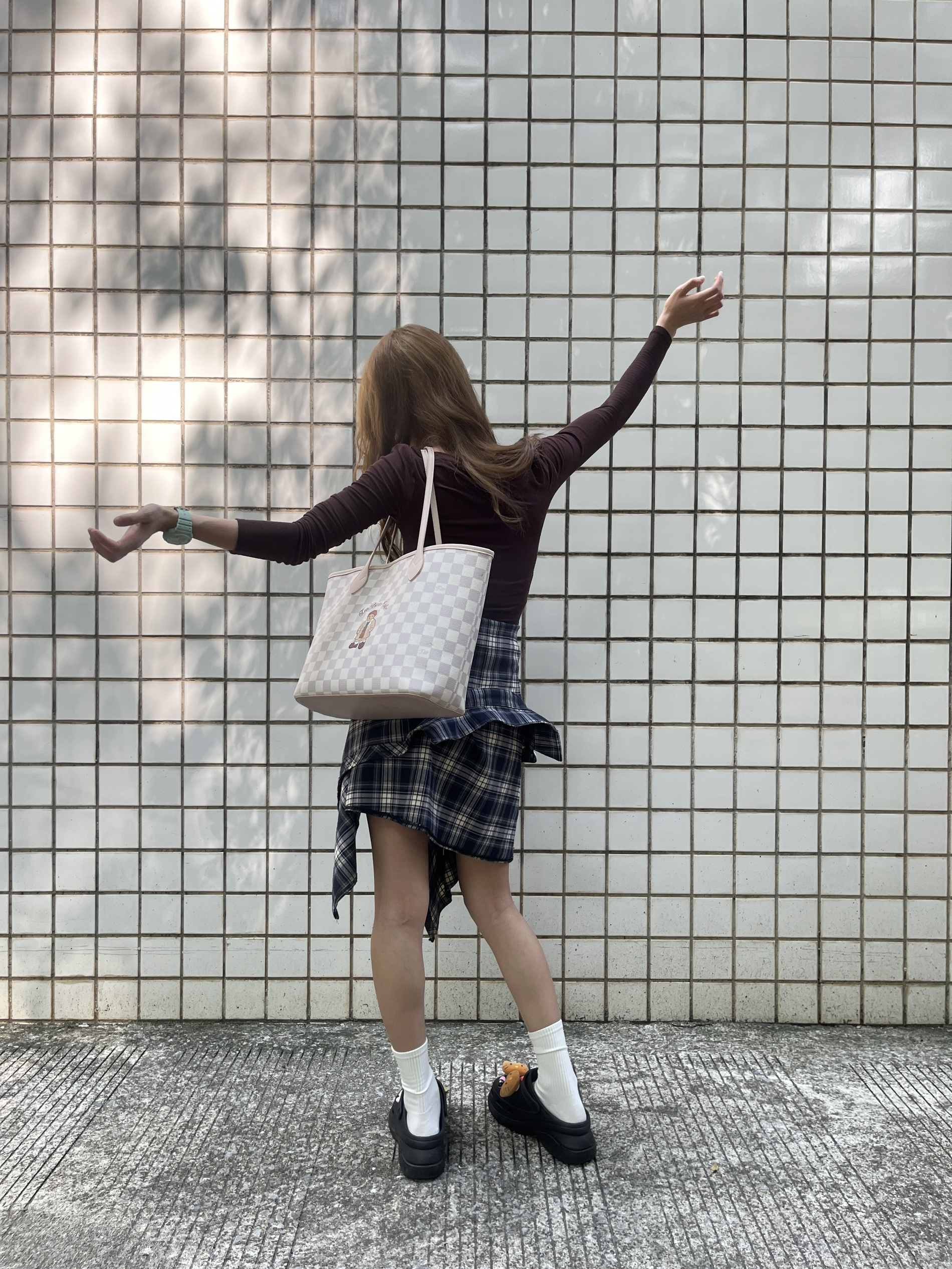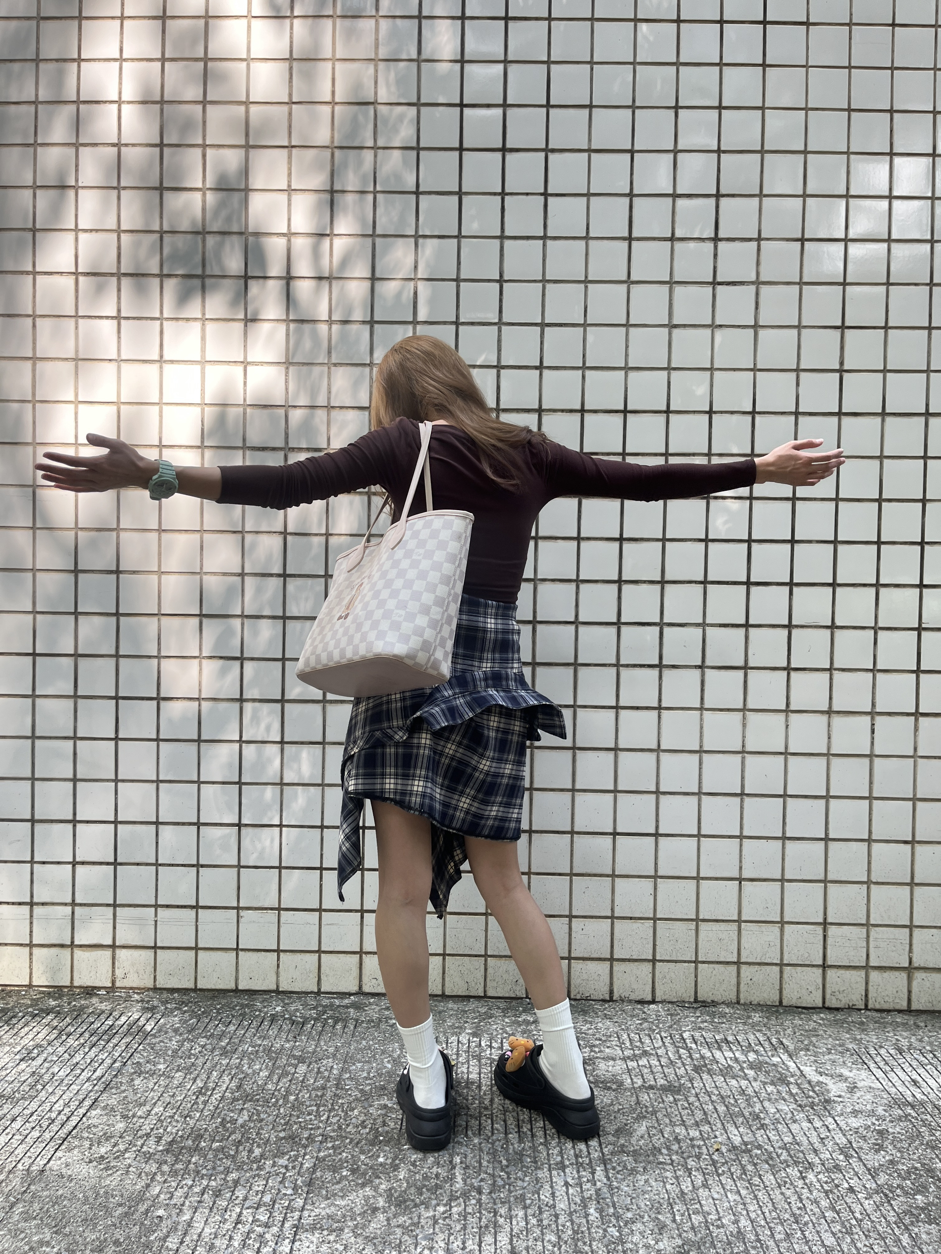 160/42🤩 棕色上衣搭配灰色a字裙👗 显瘦百搭,冬天再配上光腿神器好好看😻 冬天也要精致过冬😝