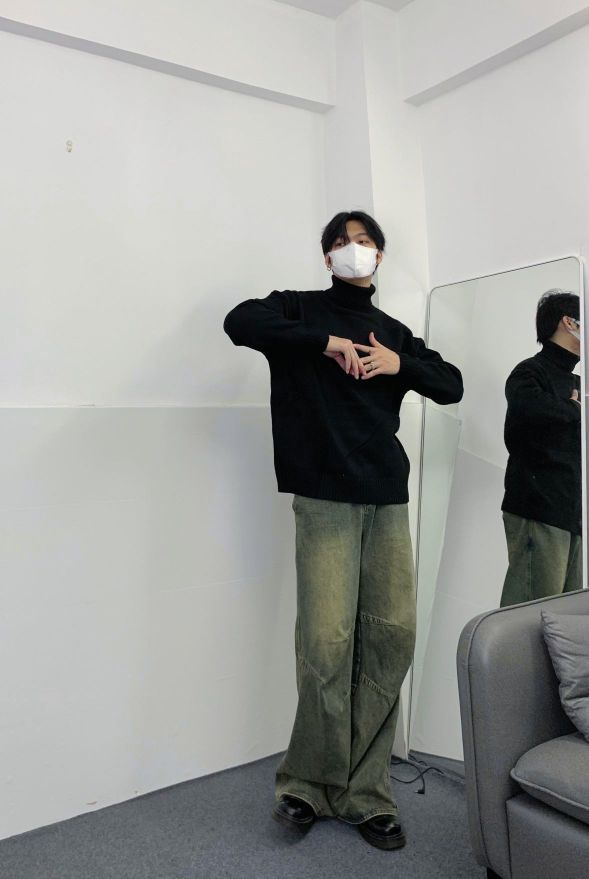 好喜欢💕这种简单舒服的感觉 黑色毛衣真的太百搭啦!! 宽松版型不挑人怎么穿都好看