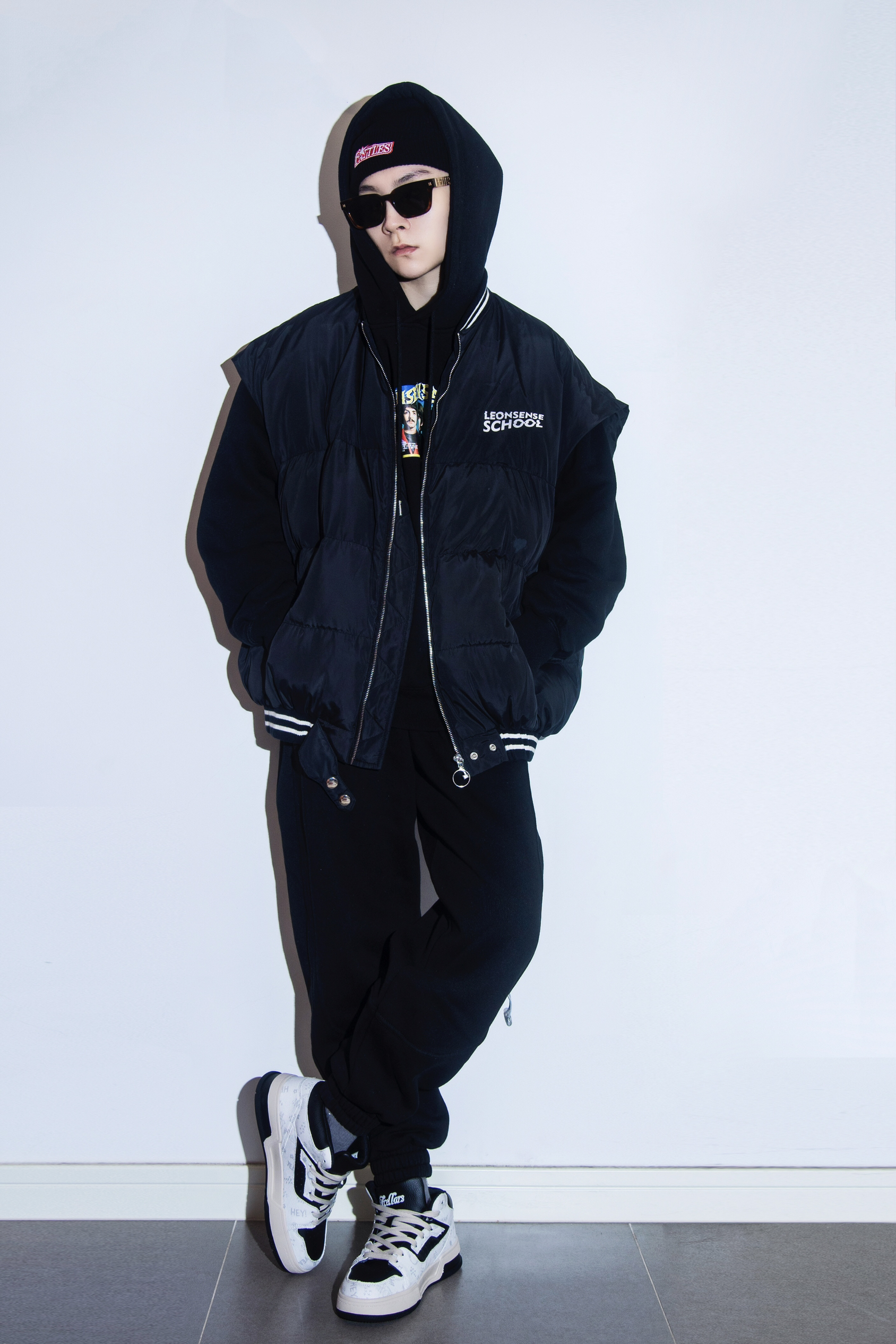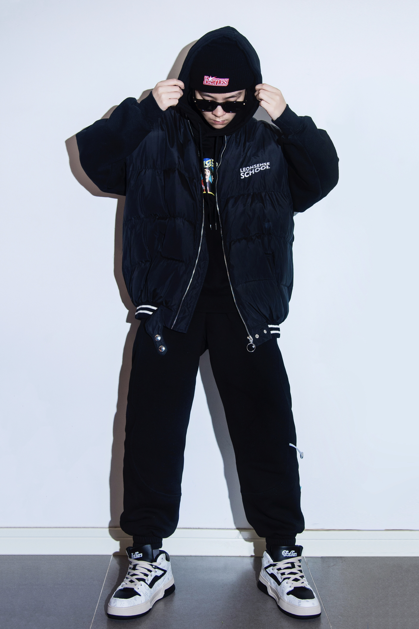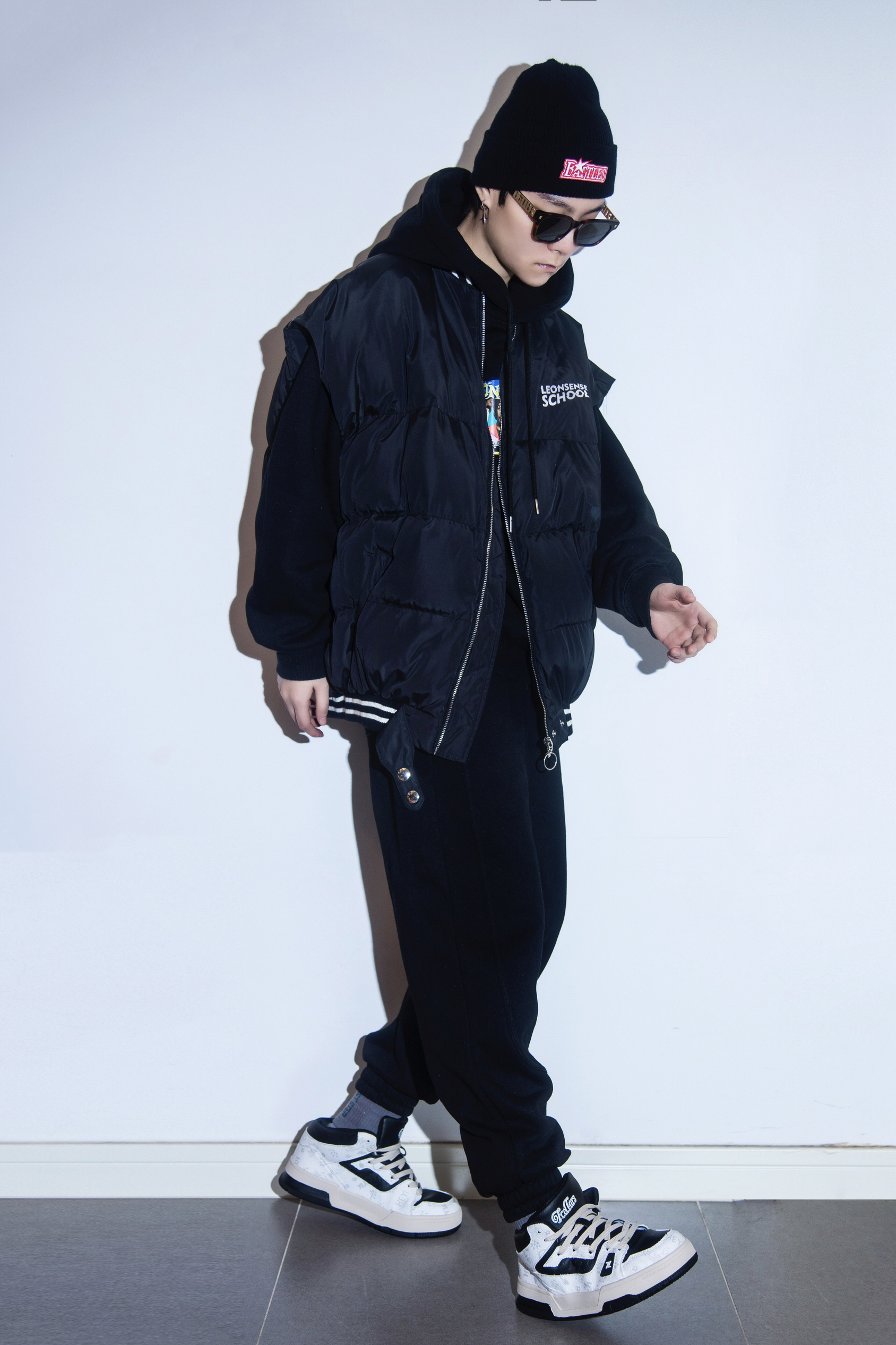 冬季除了棉服外套 就该有一件暖蓬蓬的羽绒马甲 穿搭指南: 上身一件黑色连帽卫衣 宽松版型自带慵懒氛围 外搭一件黑色廓形羽绒马甲叠穿一下 下身一条黑色加绒的运动束脚卫裤 上脚一双Tcellars新款板鞋 中帮板鞋冬季必备 黑白拼接的熊猫配色经典百搭 涂鸦印花增加了不少细节 黑色冷帽保暖又有街头感 整体黑色系搭配 简约却有层次 冬季出街通勤 这一身都搞定