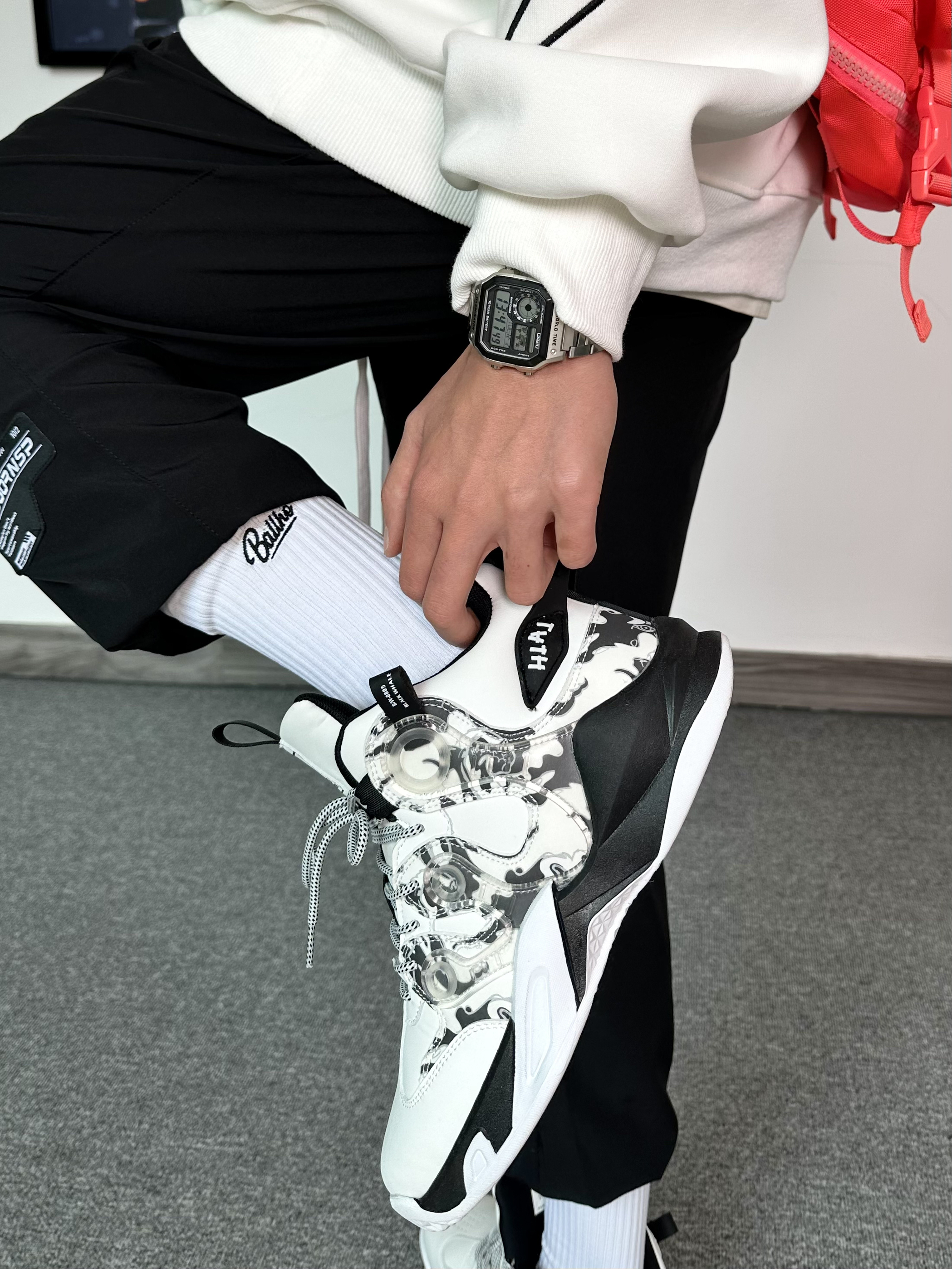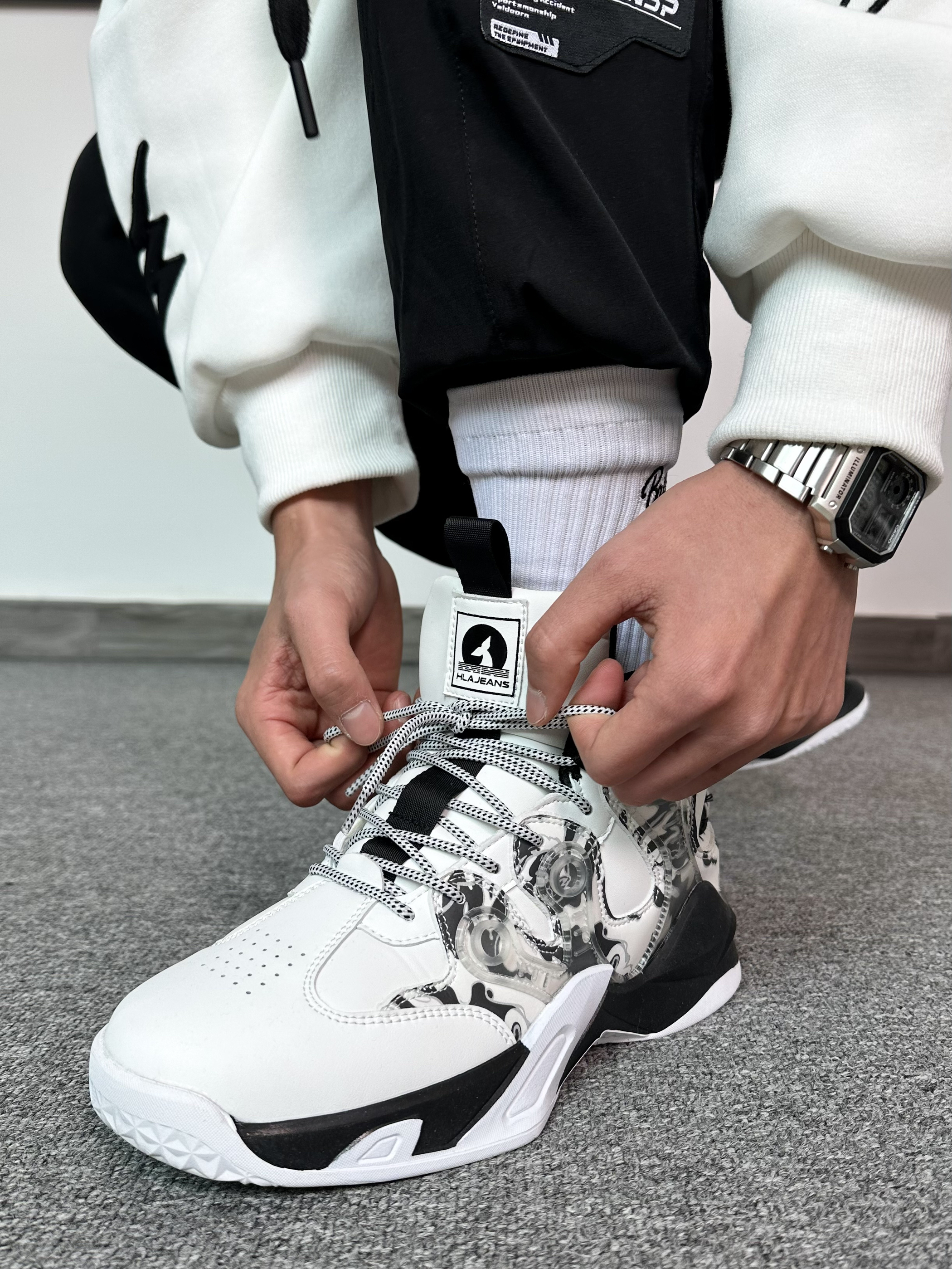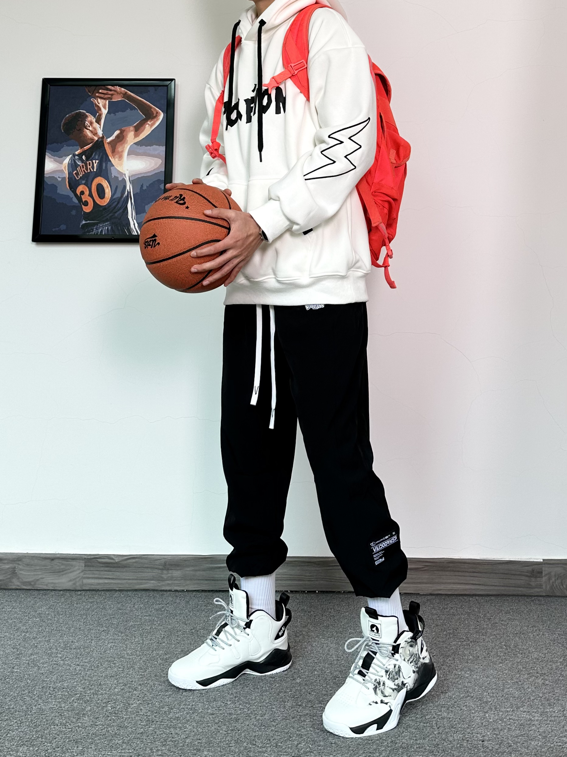 冬季打篮球这样穿嘎嘎帅! 简单的黑白搭配又帅又能打 卫衣➕卫裤冬天打球必备穿搭~ 干净利落不拖拉,上场就能干 穿束脚裤得搭配上一双高帮篮球鞋才帅气 搭配上一双水泥克星黑白配色篮球鞋 高帮的设计让你变相安全感满满! 黑白配色设计很百搭~