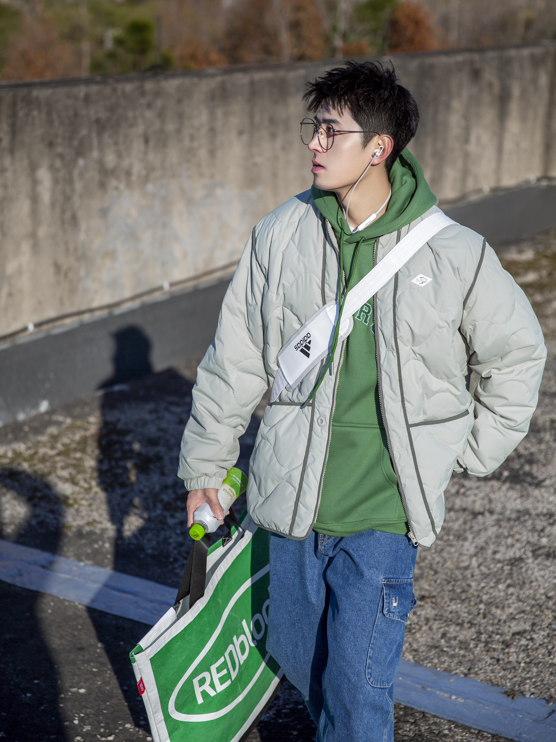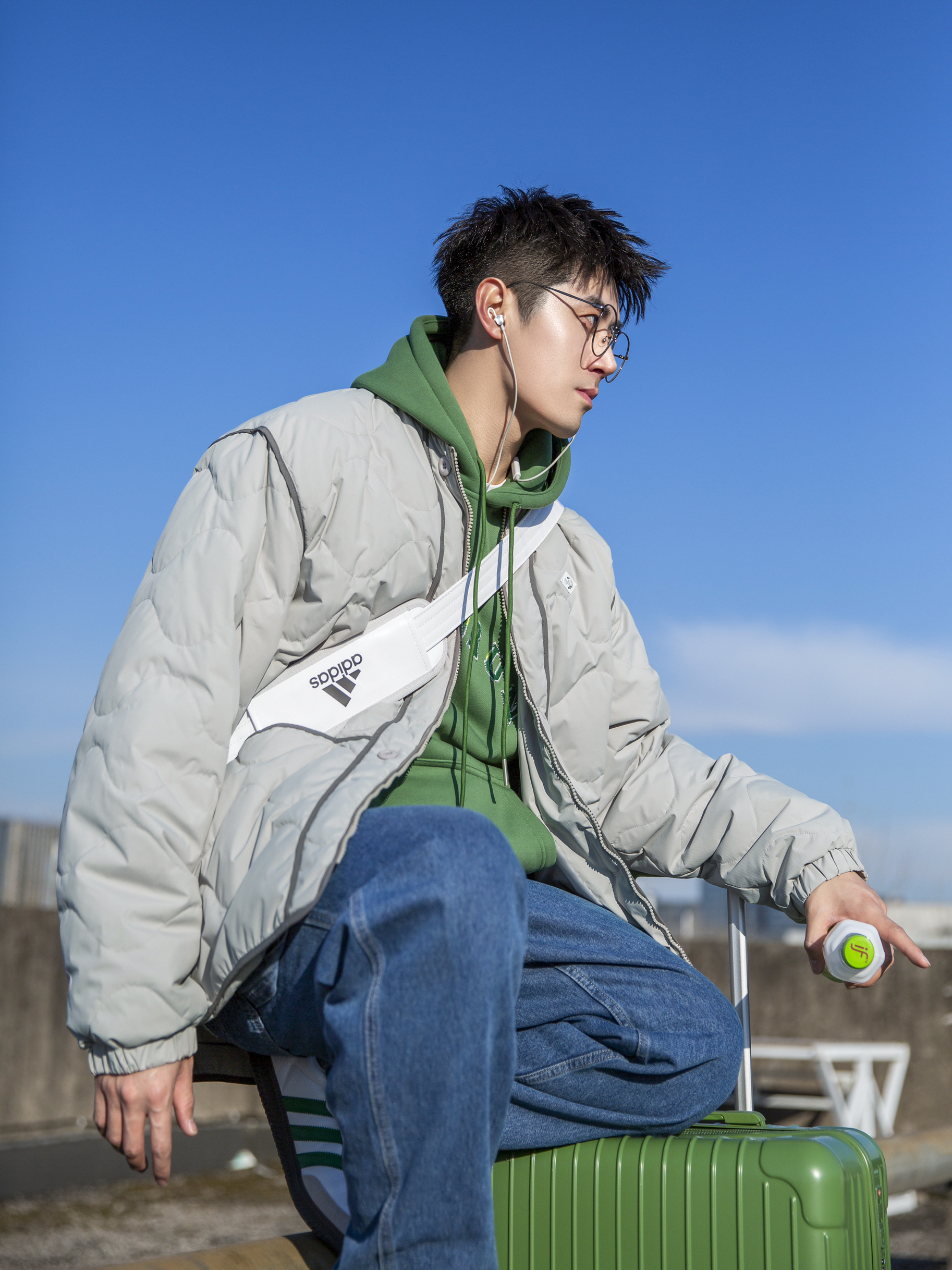 🔹遇到好天气!那就拍照记录一下今天的“绿色系”少年感穿搭吧!🎄💤…… — 🔹个人觉得“绿色系穿搭”还是挺适合男孩子的!简约干净!今日份色彩搭配选择了“蓝绿”双色搭配!💙💚……整体日系小清新少年感!🌀🍃…… · 1⃣️、一件【冰淇淋绿】日系棒球领羽绒服;✨ 2⃣️、叠穿【圣诞绿】连帽卫衣;✨ 3⃣️、搭配【蓝色】直筒牛仔裤;✨ 4⃣️、穿上【白绿】复古球鞋Samba;✨ 5⃣️、背上【白色】漆皮健身...