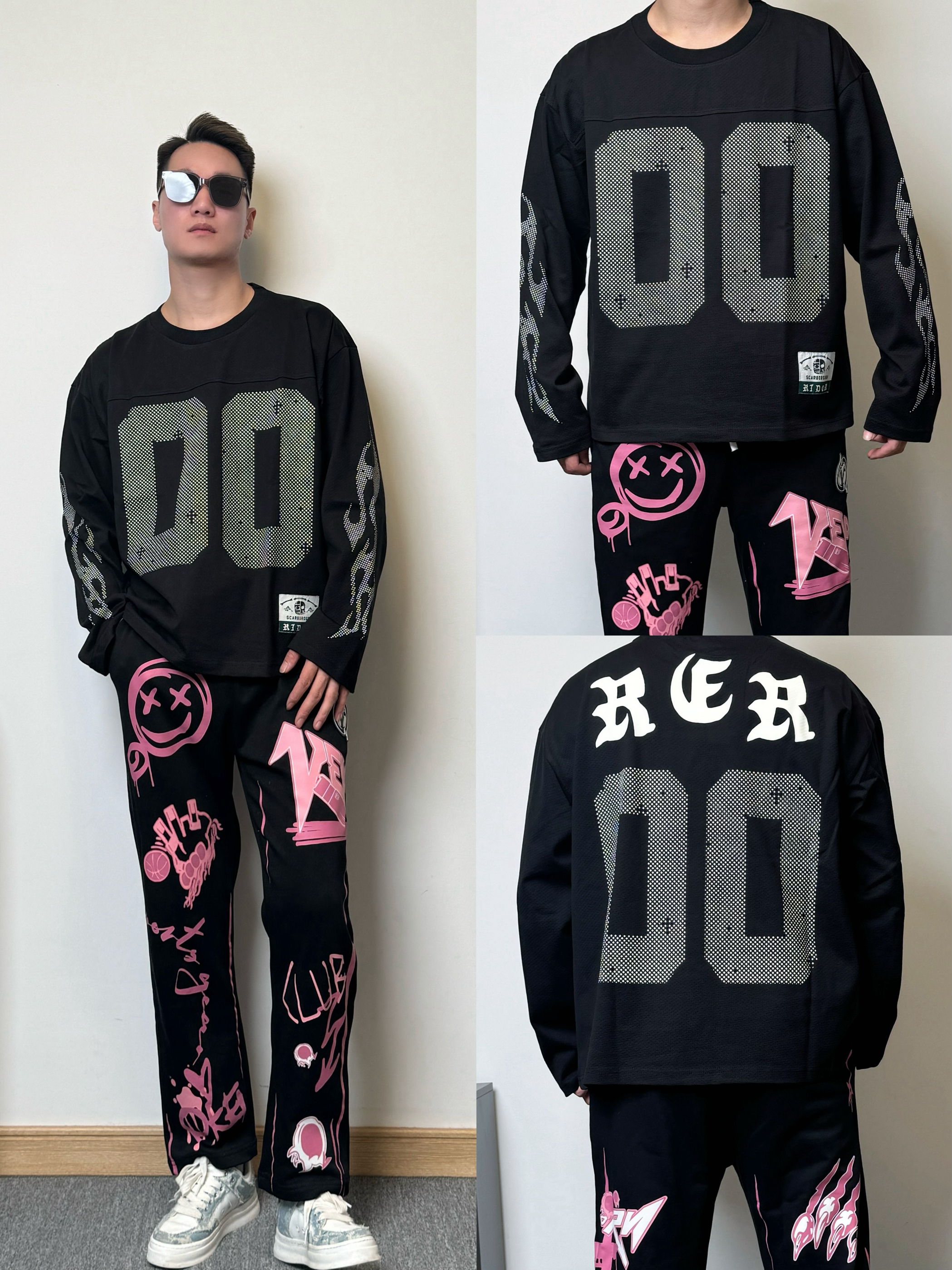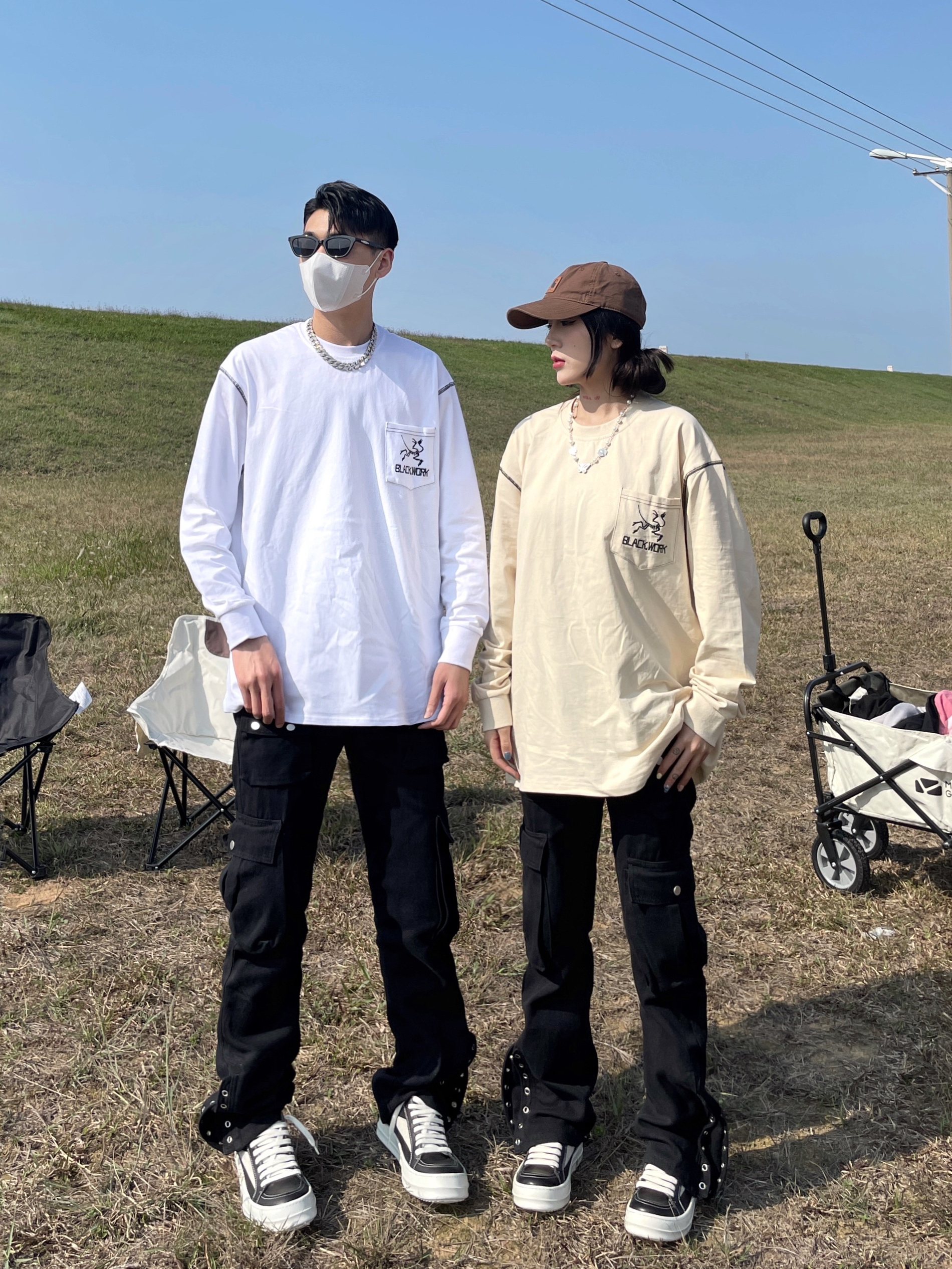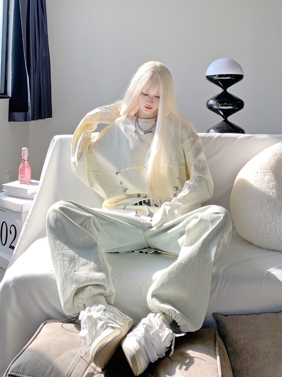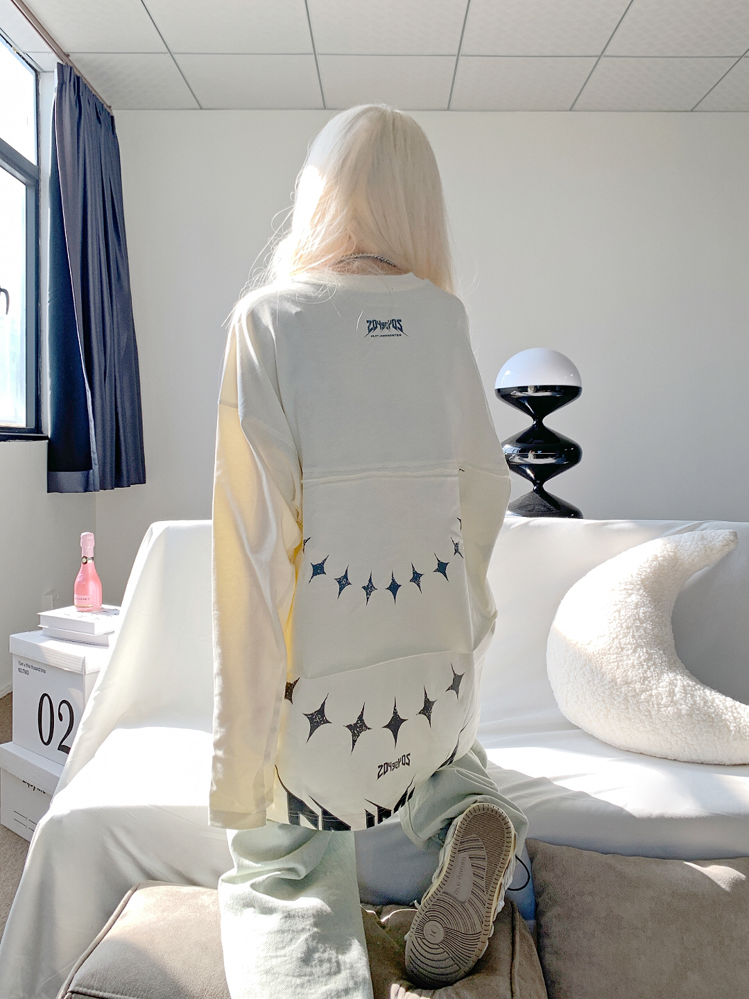 打底长袖来咯! 外套里的打底衫当然也要穿好看的 介件长袖的颜色敲好看的 浅色系的复古颜色 真嘟太舒服了 上身好显白啊 很衬肤色哦 版型宽松好显瘦呐 印花图案和三层分层的设计都敲酷的 搭配同样浅色系的裤子 色调看起来好舒服 hin好看耶 想要一件单穿和打底都适合好看又潮流的长袖 这件就是啦!