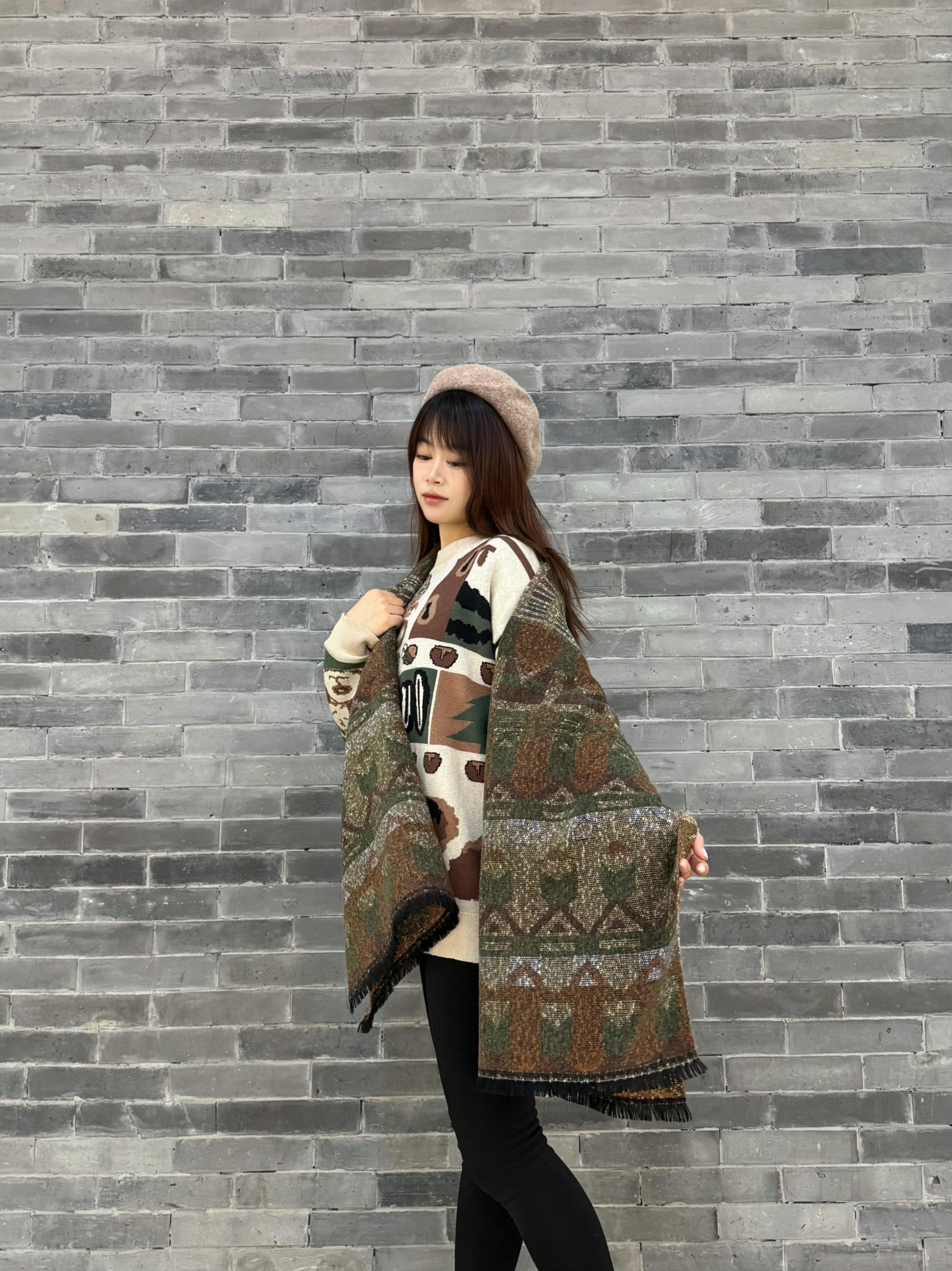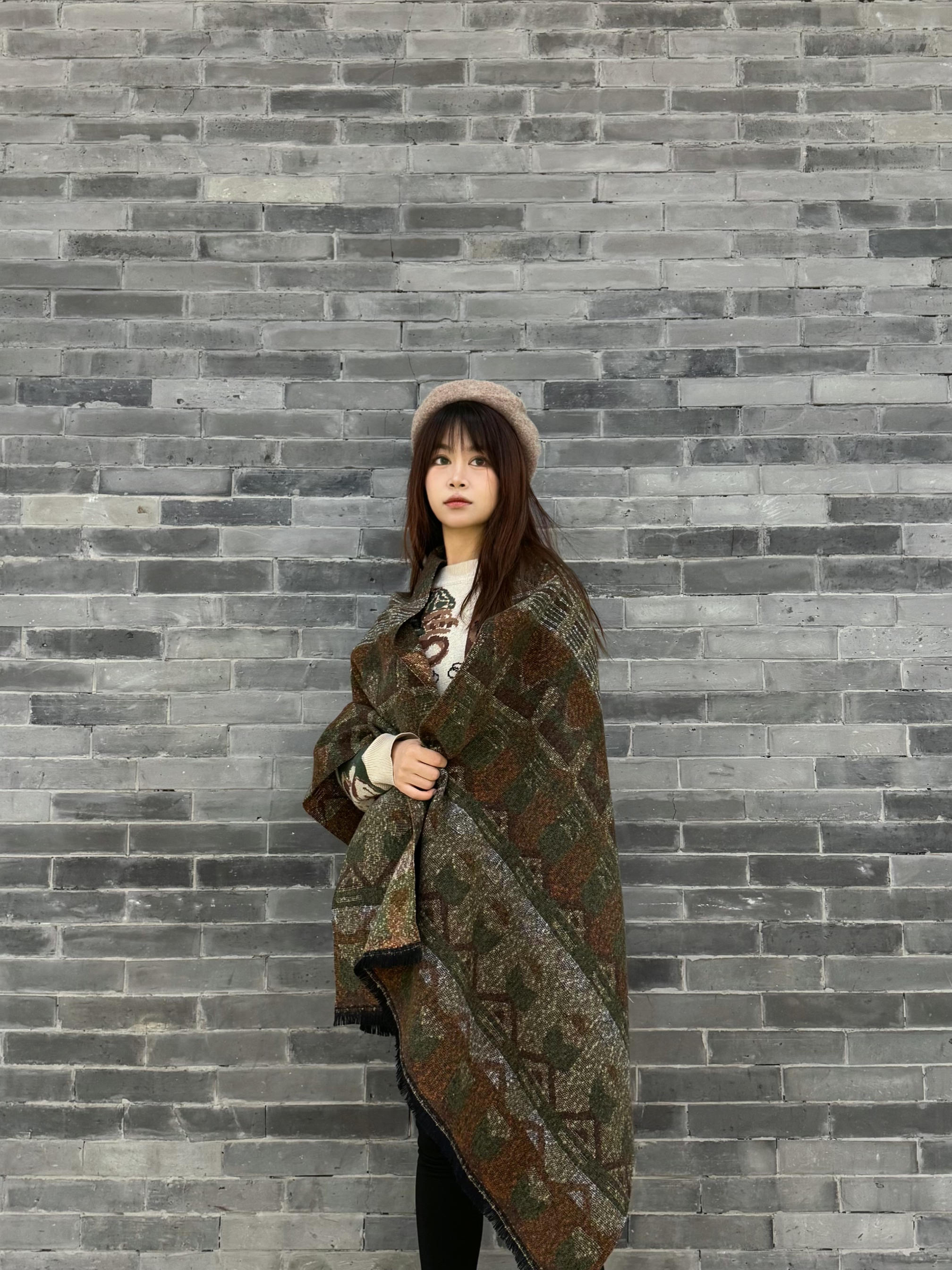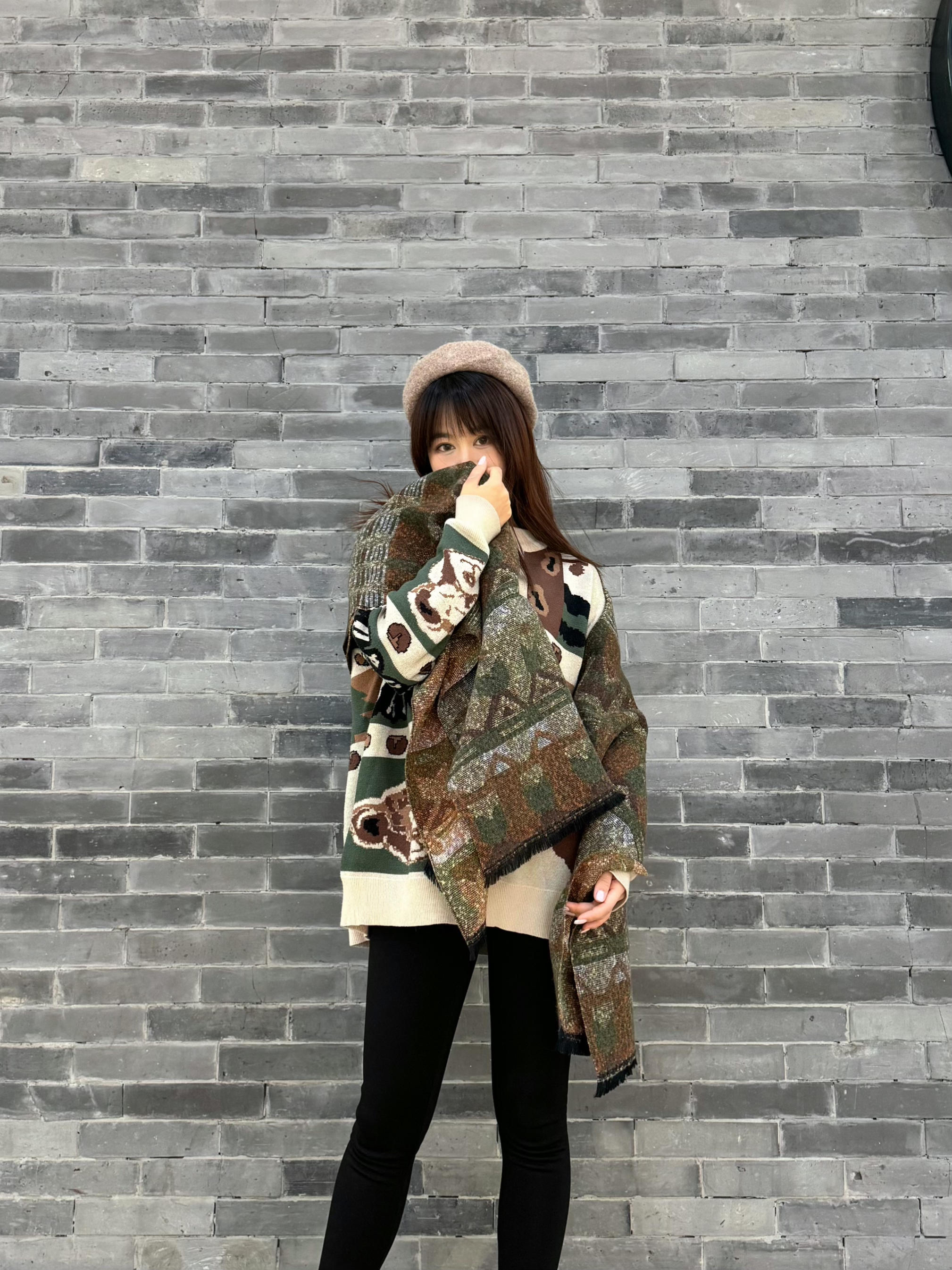 嗨喽嗨喽👋这里是亦小木的穿搭分享~ - 好喜欢这 款来自SGM 民族风的围巾披肩 很百搭很有韵味的实用搭配单品 手感细腻,面料真的超厚实 复古民族风格的图案搭配深色的衣服好好看~ 外穿一件咖啡色的羽绒服➕内搭花灰色的毛衣 室内室外配上这条围巾都很和谐hh 当作披肩来使用也是很不错的 #推荐秋冬氛围感围巾 #冬季穿搭分享 #slay派对穿搭 #冬日搭配靠它们 #晒晒冬天氛围感围巾