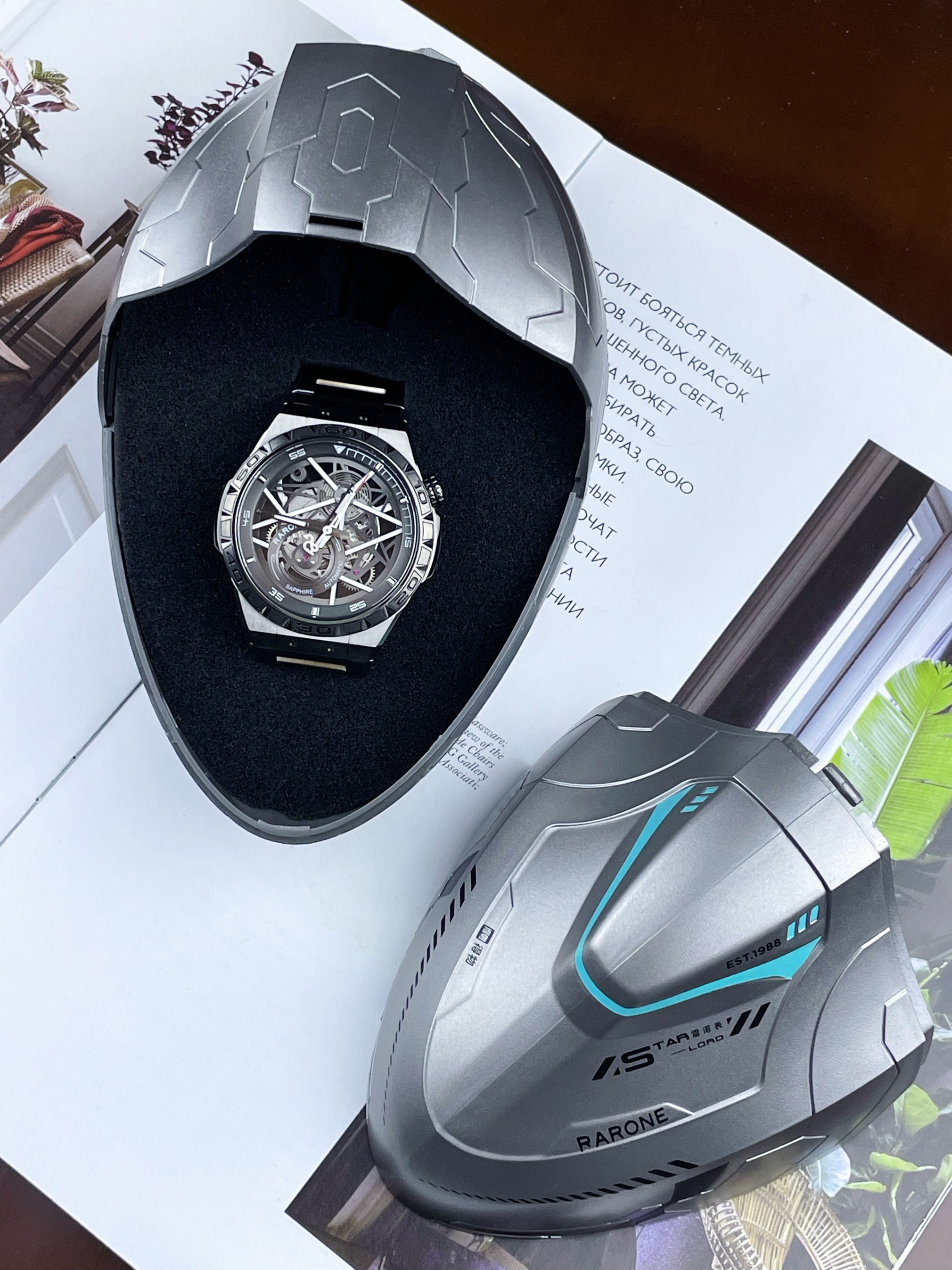 今天给大家分享这款十分酷帅的 RARONE雷诺『双子星·Y』镂空机械表⌚️ 表款整体的色调属于日常很好搭配的类型 双面镂空的表盘通透感与机械感拉满 计时表圈的设计为整块手表增添了运动气息 表冠与背部的『R』字母彰显了表款身份 超强的夜光效果相当酷炫 在夜晚使用也很方便 精钢材质表带佩戴舒适 休闲与商务皆可搭配 最后当然要说一下这个超酷的太空舱礼盒🎁 与表款⌚️完美契合 作为礼物🎁非常不错哦‼️