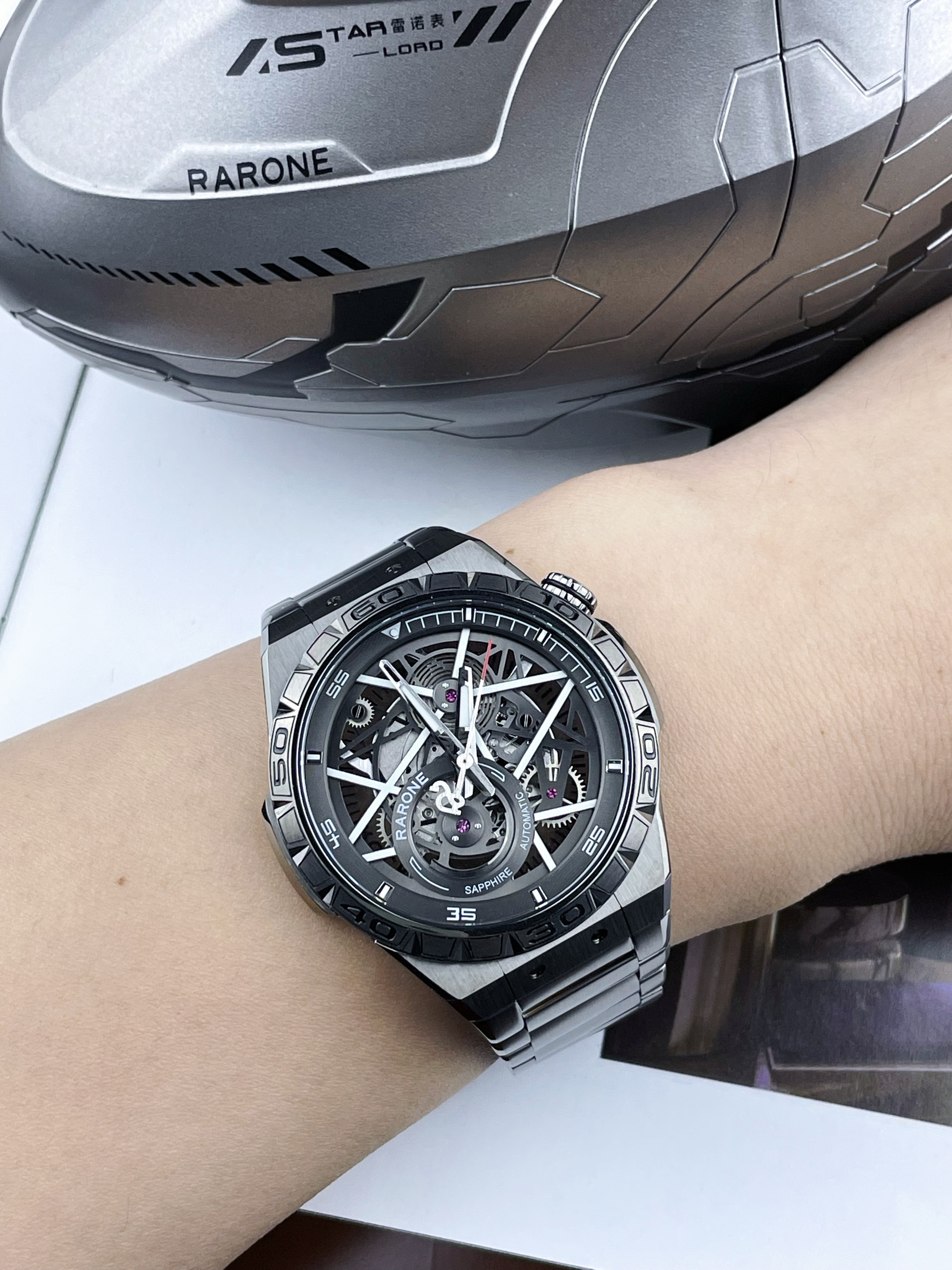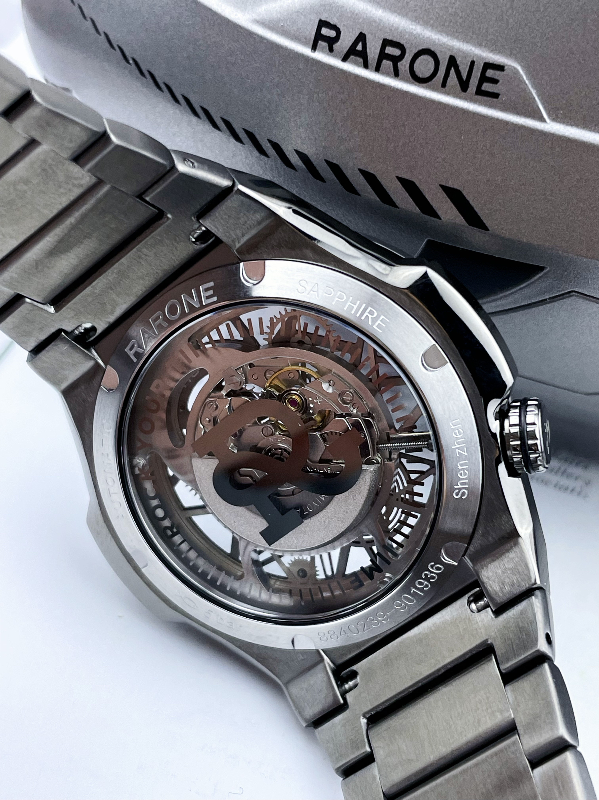 本篇笔记关联了RARONE/雷诺 双子星系列 Y 防水全镂空钢带全自动纯机械男士手表 银色 8840239等商品,为用户提供真实的使用体验和购买参考。