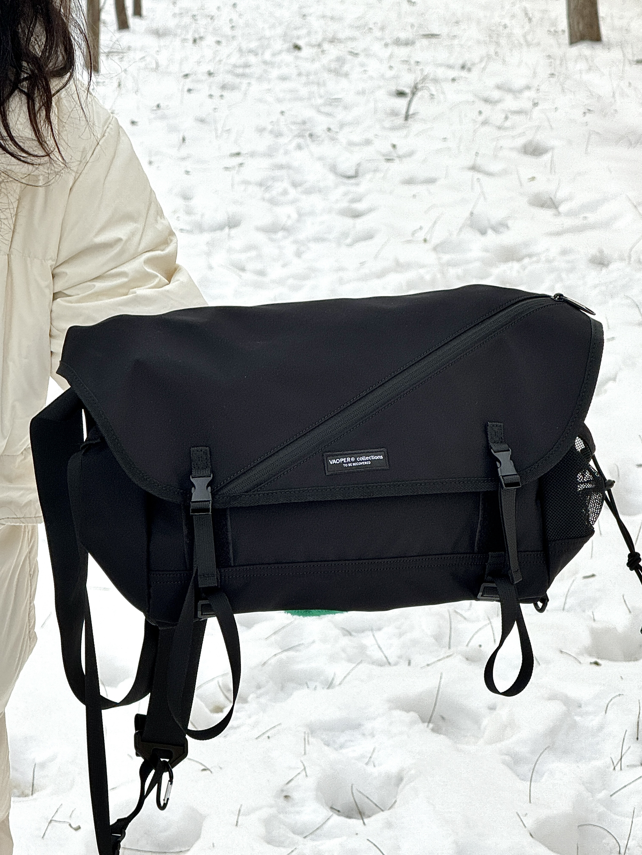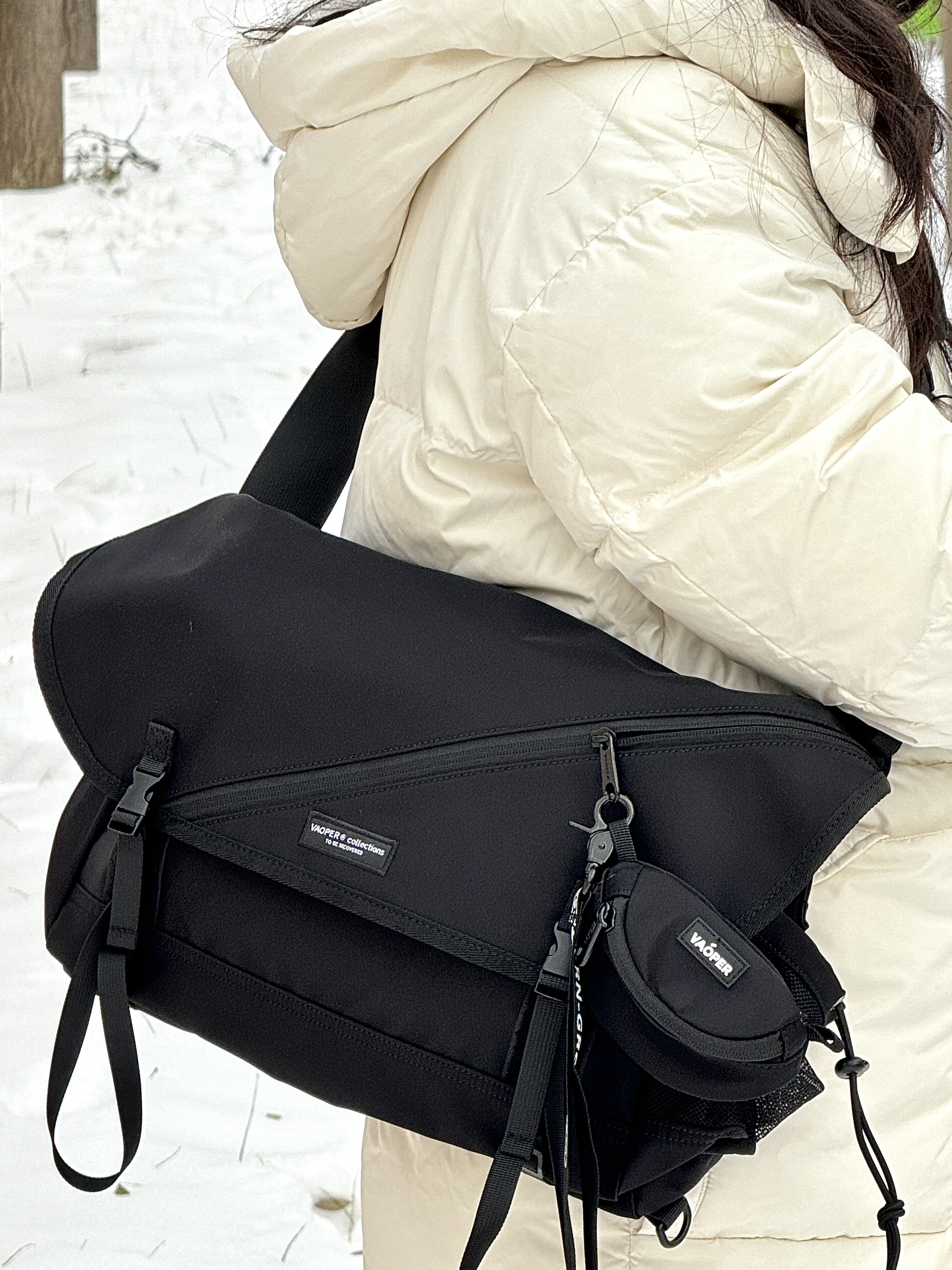 终于找到理想的斜挎包啦 黑色机能风真的狠酷 而且肩带宽一点不压肩哦 还巨能装 ipad电脑都可以! 还搭了小零钱包 能放耳机 男女都可背!敲级酷噢~