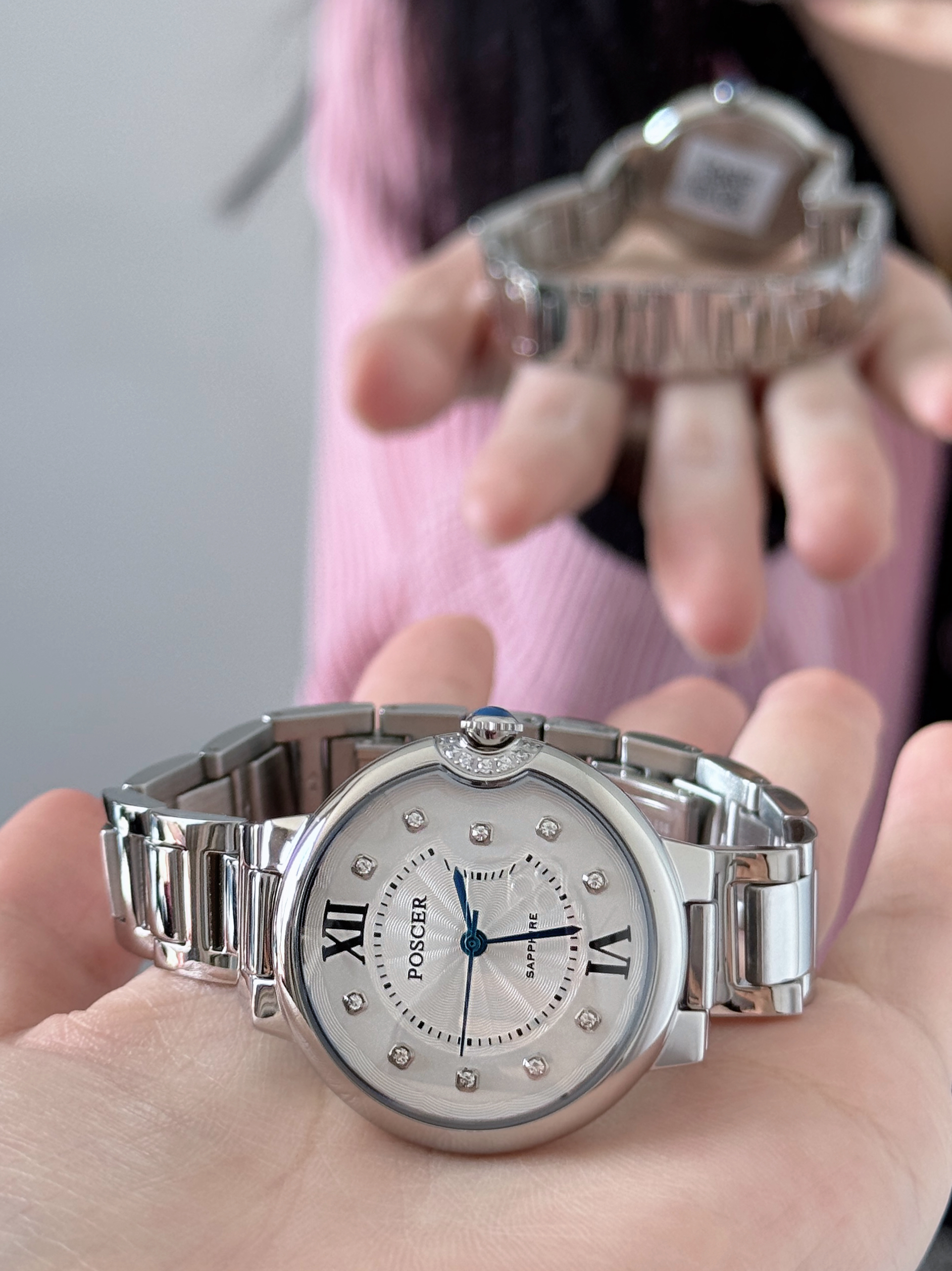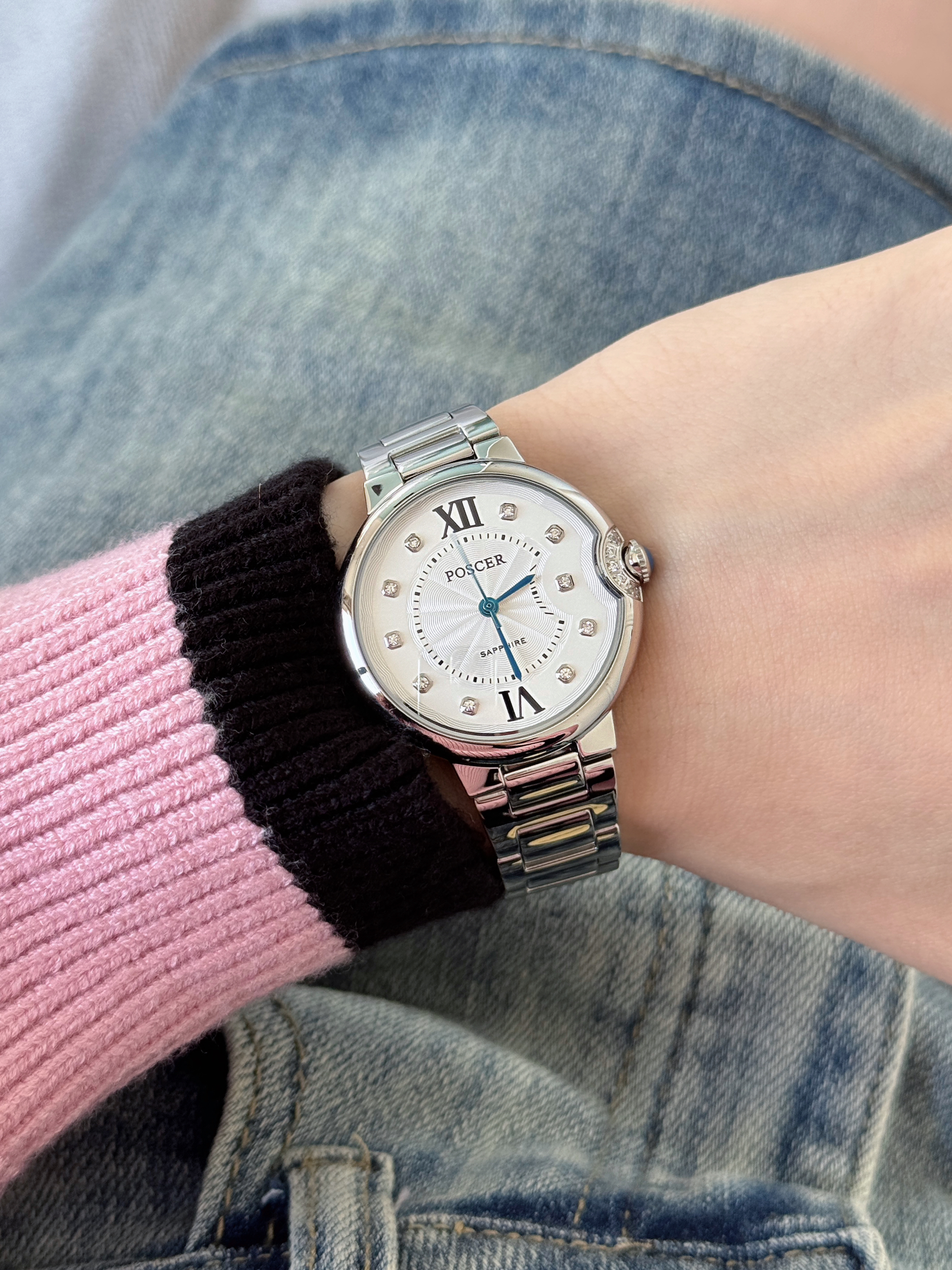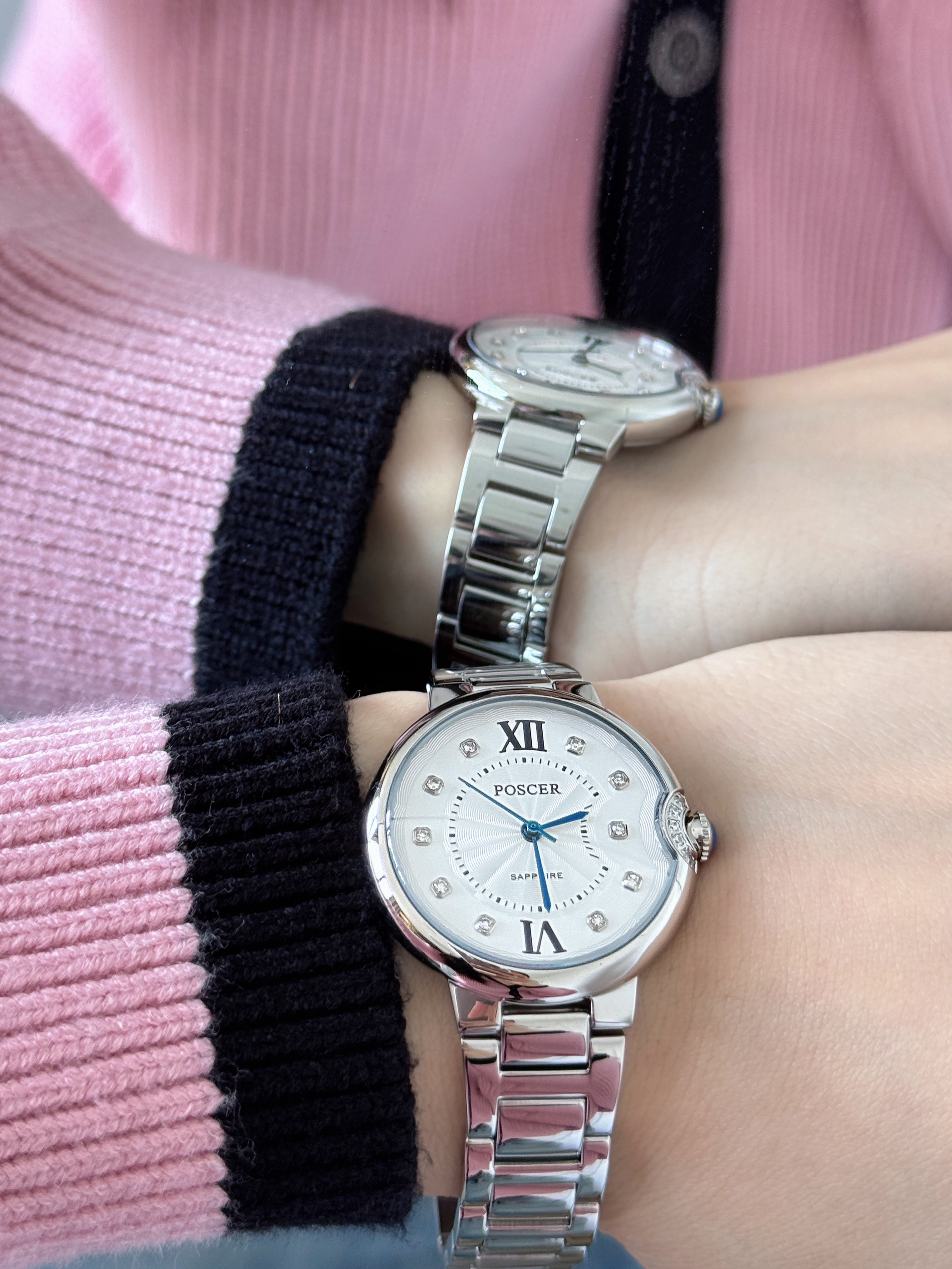 真的好爱银色手表呀 自带高级感 整体简约高级 表盘里面和右侧的带钻💎 在阳光下闪闪blingbling✨ 真的太好看啦 很日常又不失精致 适合所有场合!
