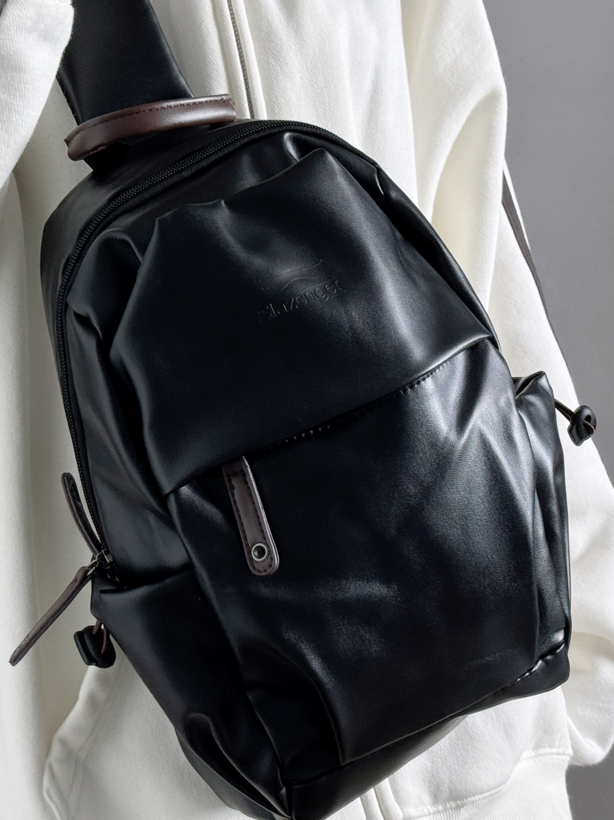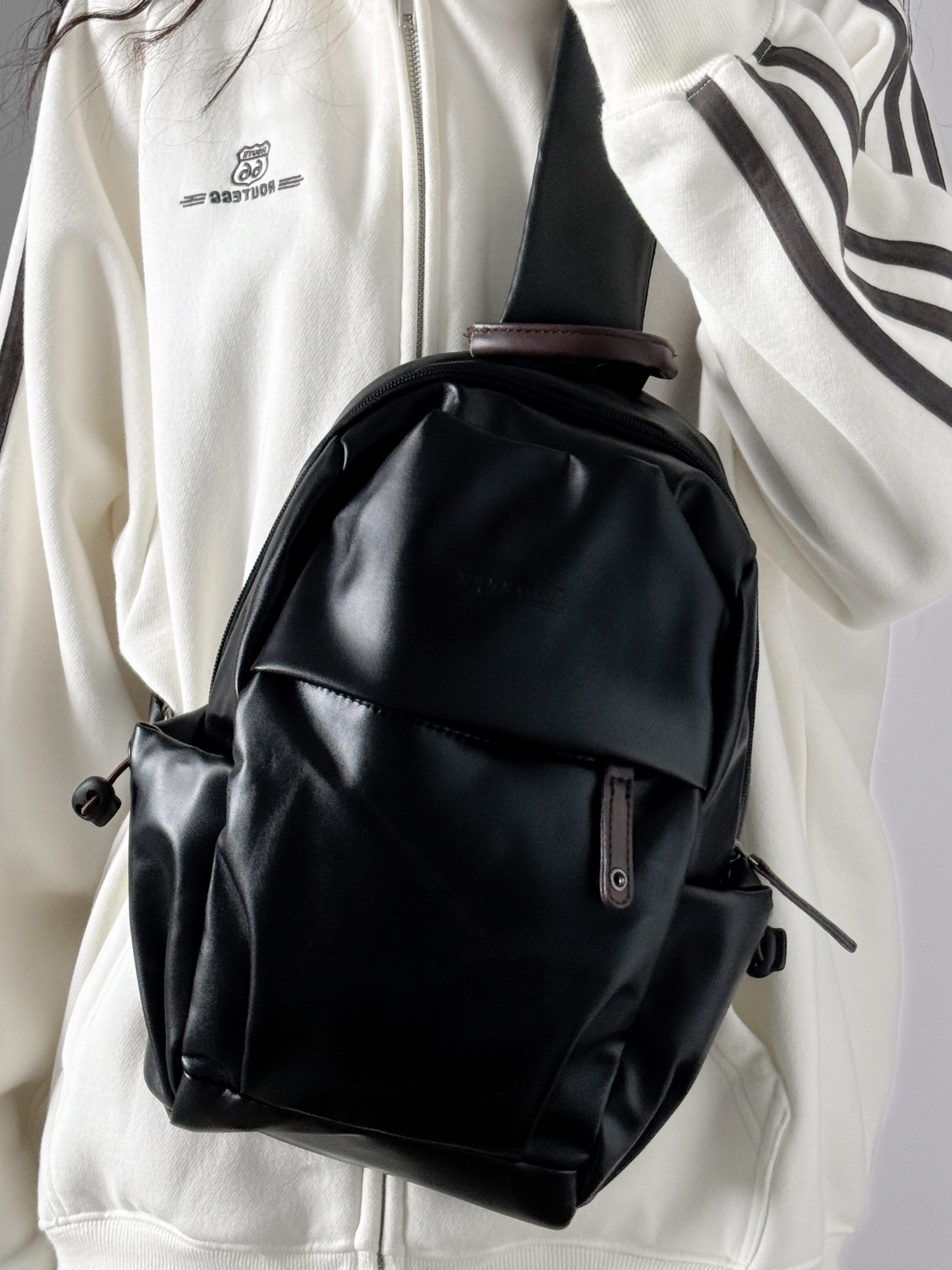 怎么会有这么帅的斜挎包呀 黑色真的百搭不会出错 容量大 分层多 很方便收纳 还可以装下ipad课本 本早八人表示直接爱了 而且防水 下雨天也不怕啦! 男生女生都能背哦👍