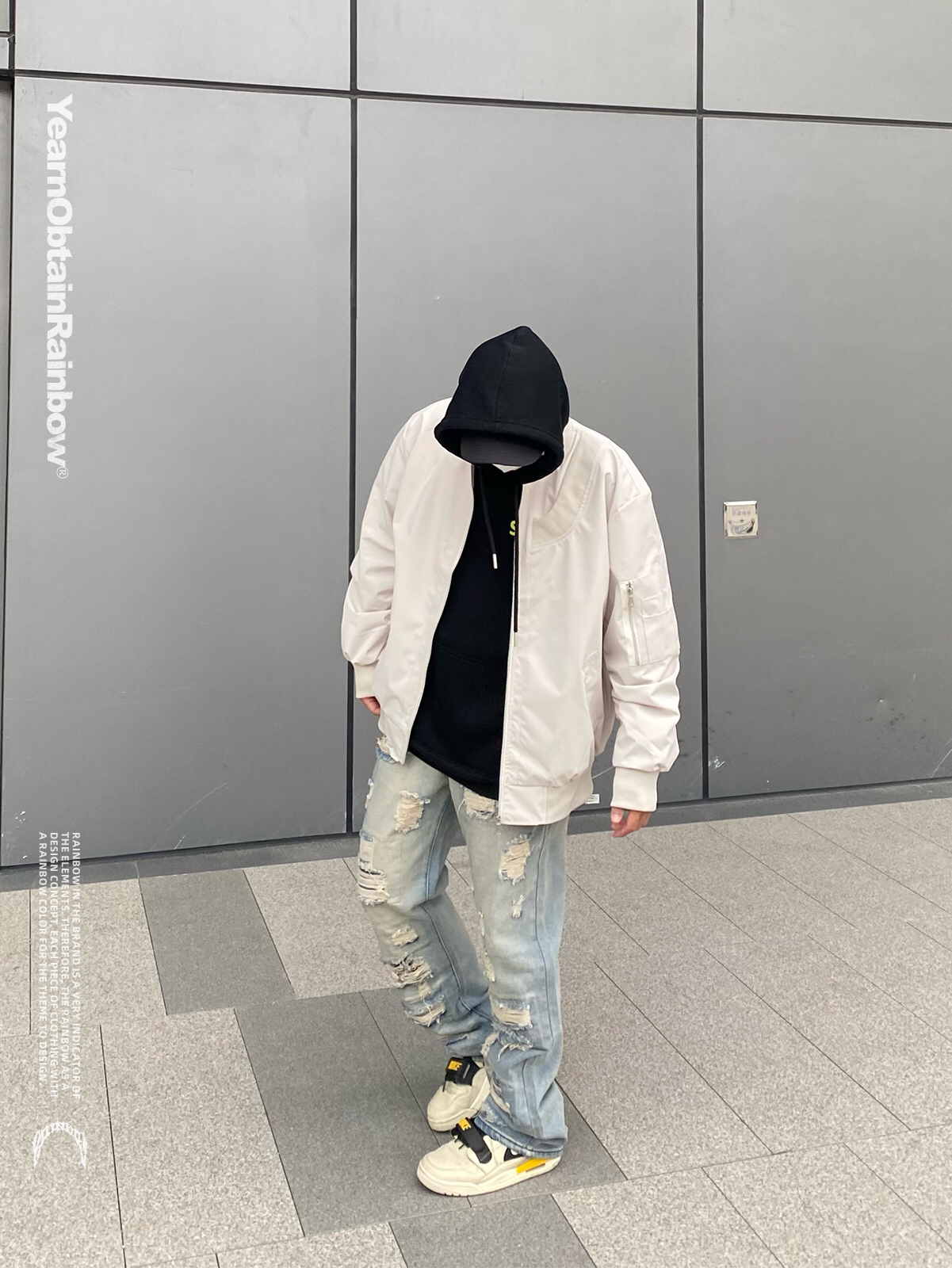 本篇笔记关联了YORAINBOW 美式街头拼接设计飞行员夹克 男女同款 米白、YORAINBOW 高街做旧破洞补丁直筒牛仔裤 浅蓝等商品,为用户提供真实的使用体验和购买参考。