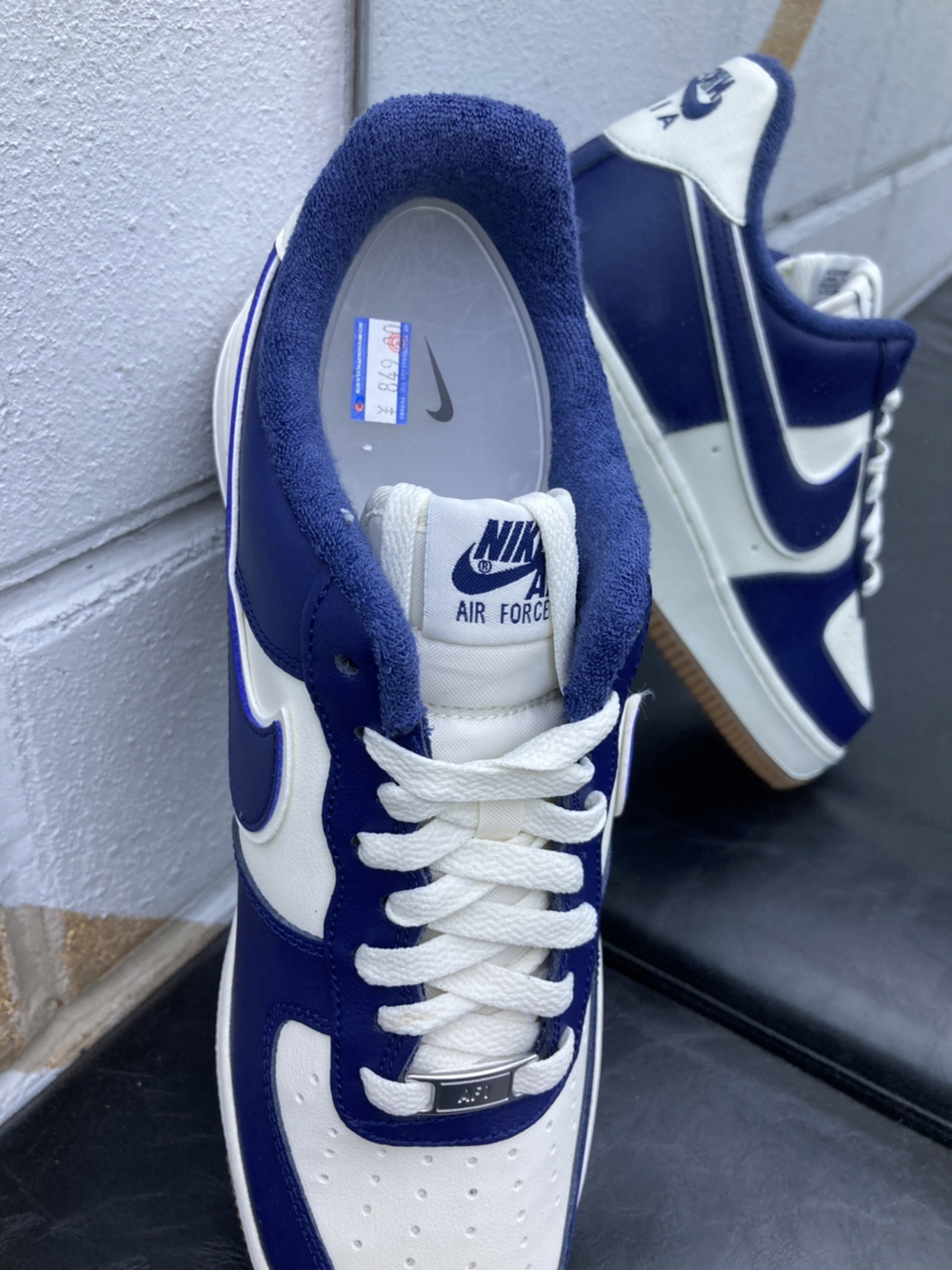 兄弟们新年第一双空军一号到手了 白蓝色海军蓝的空军一号,很经典的感觉 新的一年,好好奖励自己一下 生胶色大底,内衬细节加绒设计 鞋面皮质牛剖层革,保暖的同时颜值也不错 尺码正常选择即可
