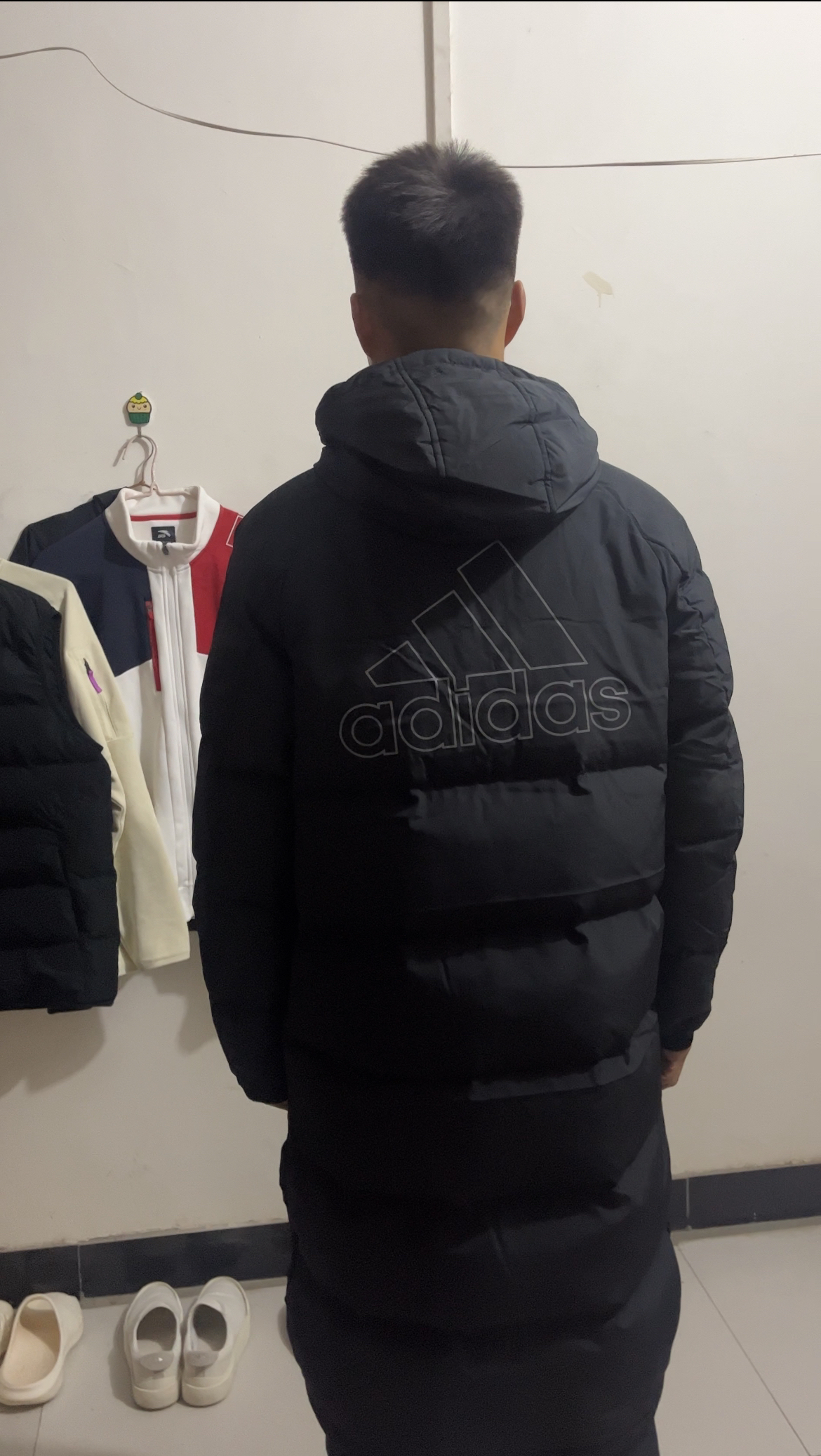 阿迪保暖长款羽绒服来了 不知道穿什么尺码的发在评论区我来告诉你 身高180体重130左右上身L码修身 很长能盖着小腿建议大家拍小一码!!! 像个大棉被穿身上了 很保暖零下的天气可以穿不会冷 穿上很轻便好搭配 后面的标实物是灰色的不会很夸张 黑色穿出门耐脏 #阿迪达斯长款羽绒服 #连帽保暖羽绒服 #冬天长款羽绒服