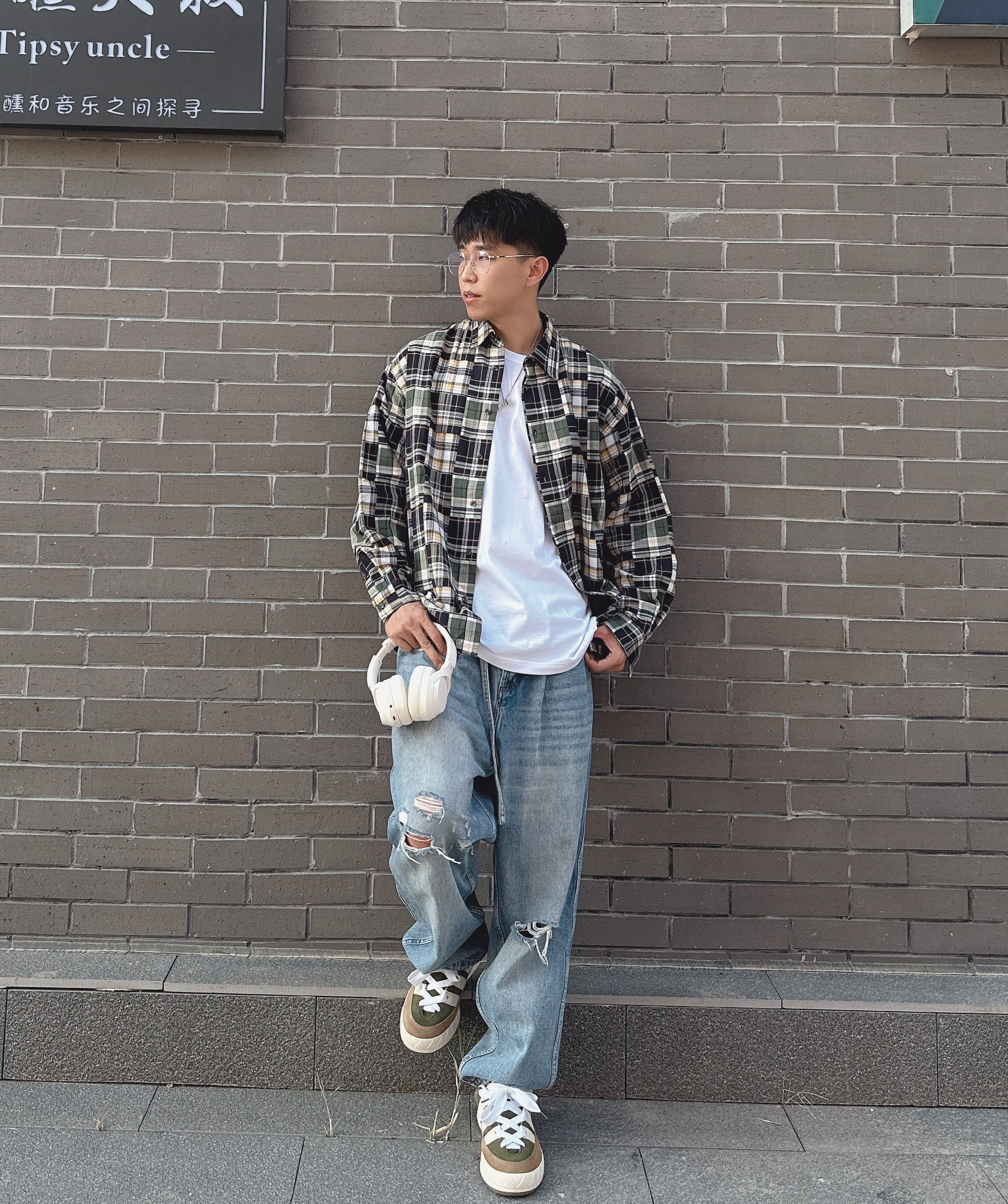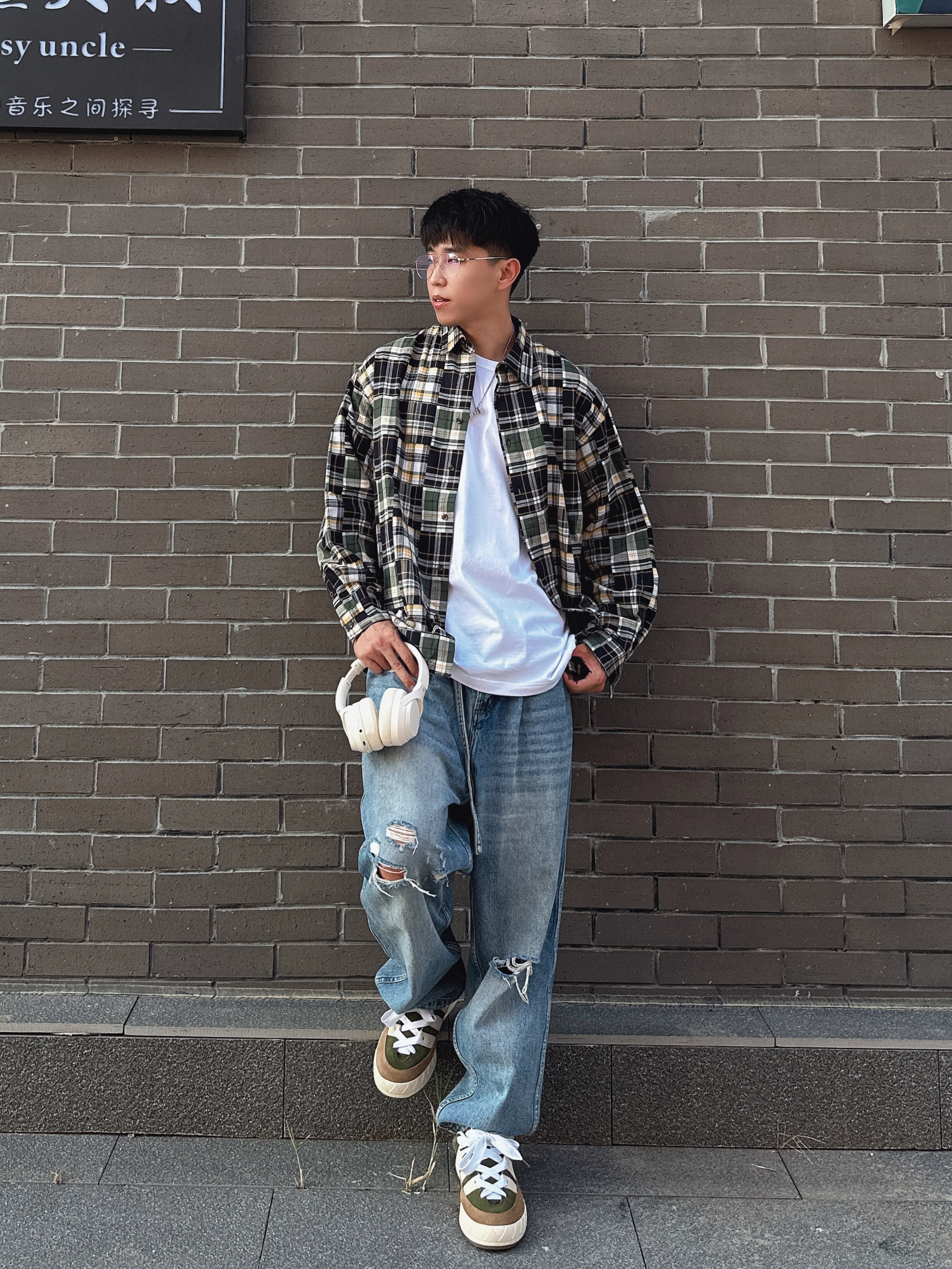 ✅:几件单品,轻松拿捏日系氛围感穿搭 ———— 谁说格纹衬衫是显老又土,那是款式没调对✔️ URBAN STANDARD这款衬衫👔 复古的花色格纹,很有秋天的氛围,简单干净易搭配 廓型的版型,不挑身材极易驾驭,减少合身款的老气感 搭配同样廓型的刀割破洞牛仔裤,早秋穿搭无压力❗️ 配饰选择的 Welly Merck威利默克 的眼镜👓 银色大镜片文艺气息十足,复古细框中融入时尚设计 轻松拿捏各种氛围...