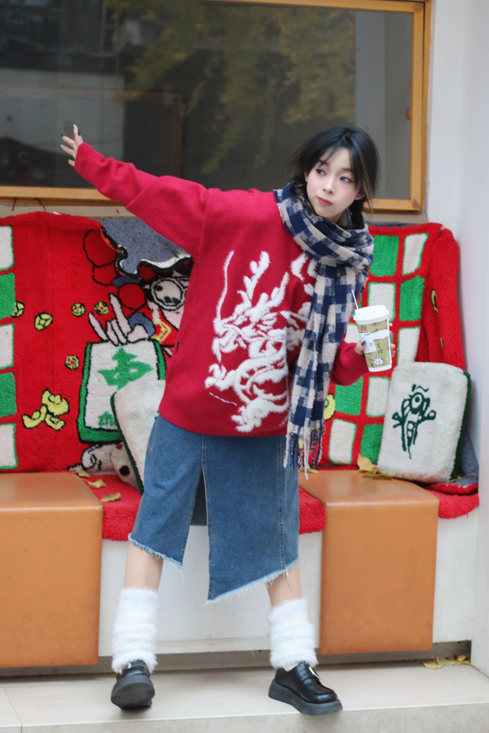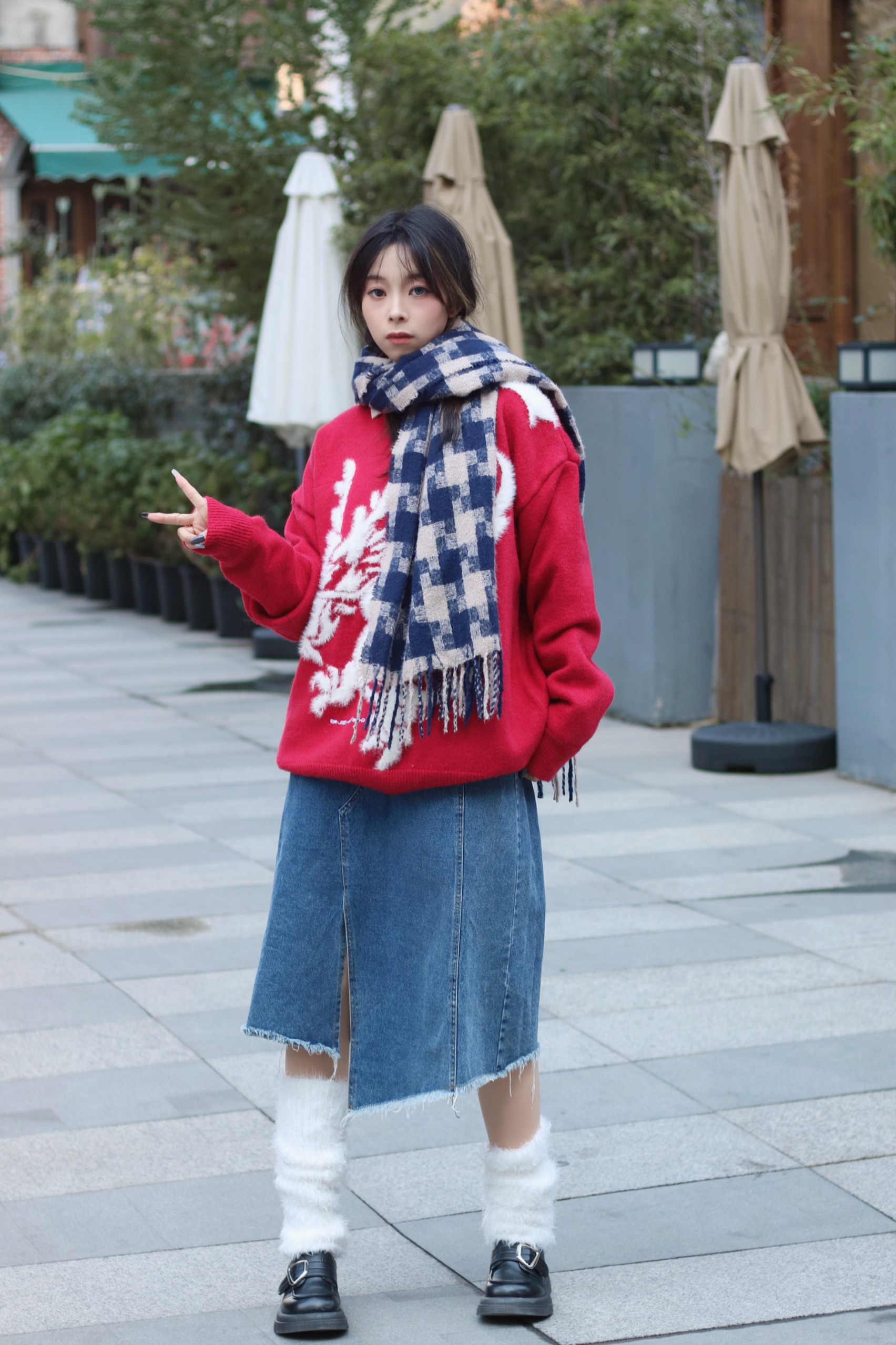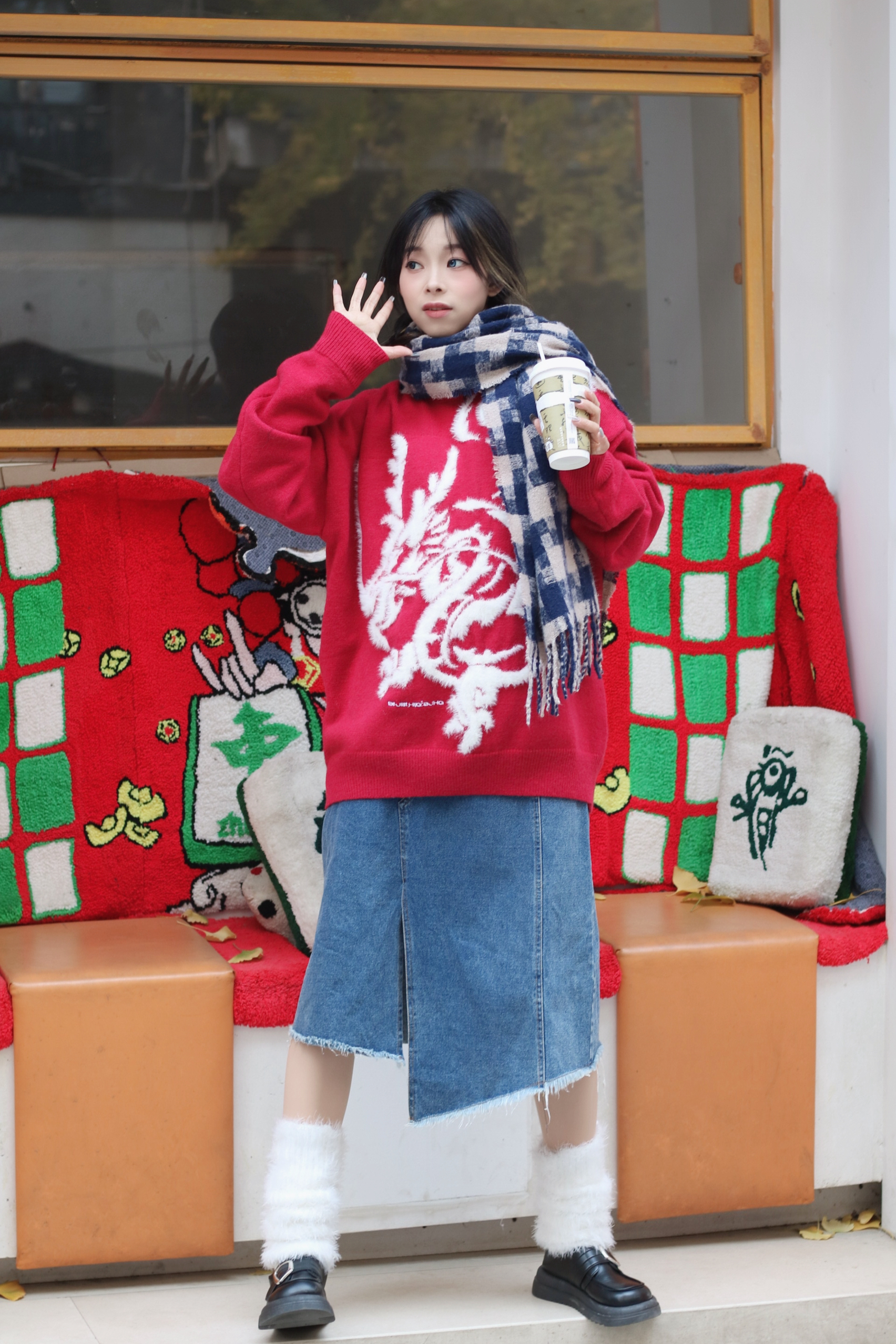 离2024只有最后4天了,新衣服我已经开始安排了!圣诞红配色真的很绝,亮色果然很显白!虽然很宽松但是保暖也是很不错,上身直接磕到我的心巴,新年必不可少的毛衣,内搭叠穿都很绝!搭配牛仔色似乎也没什么突兀的!跨年春节通通可以拿捏!