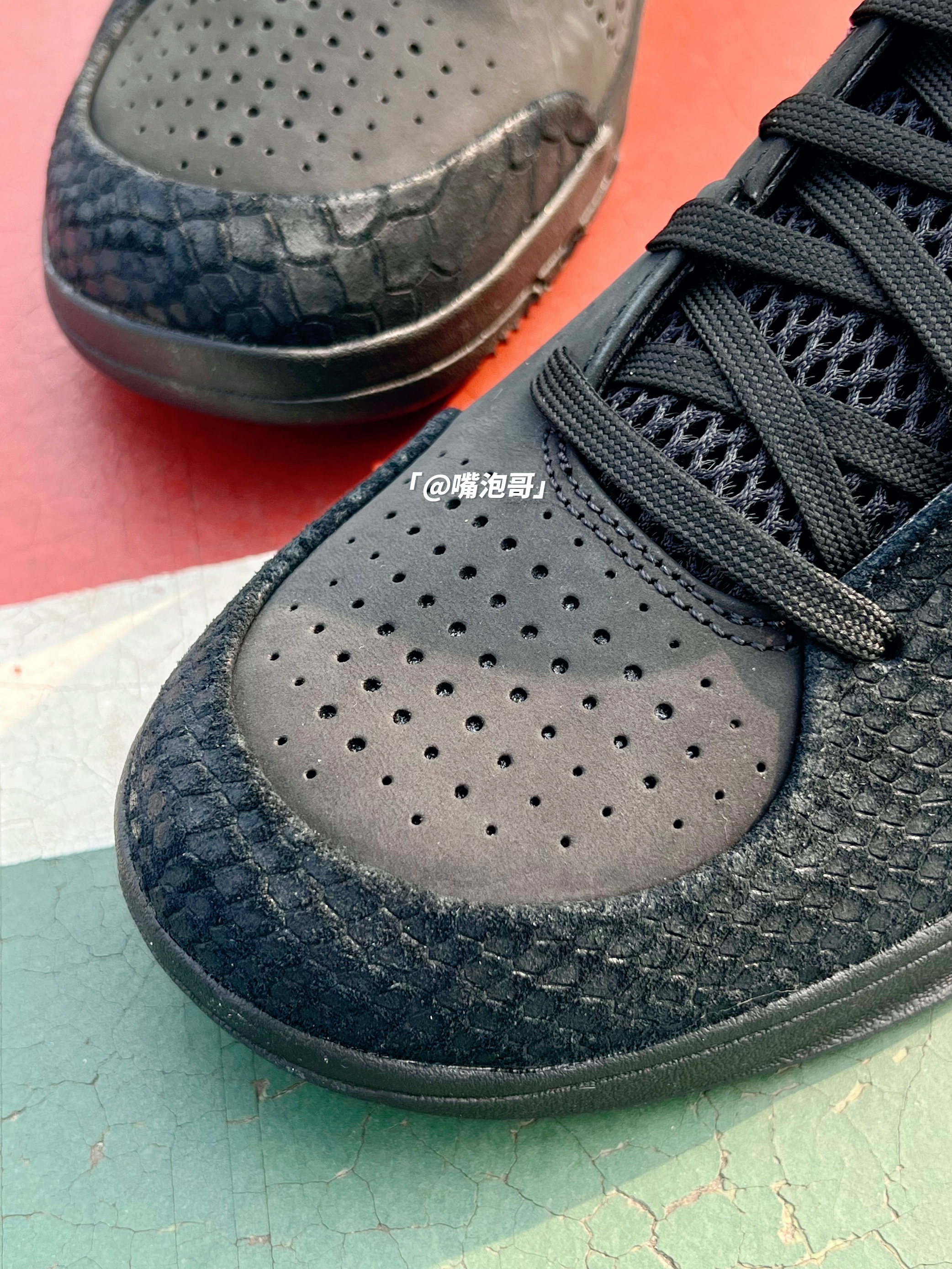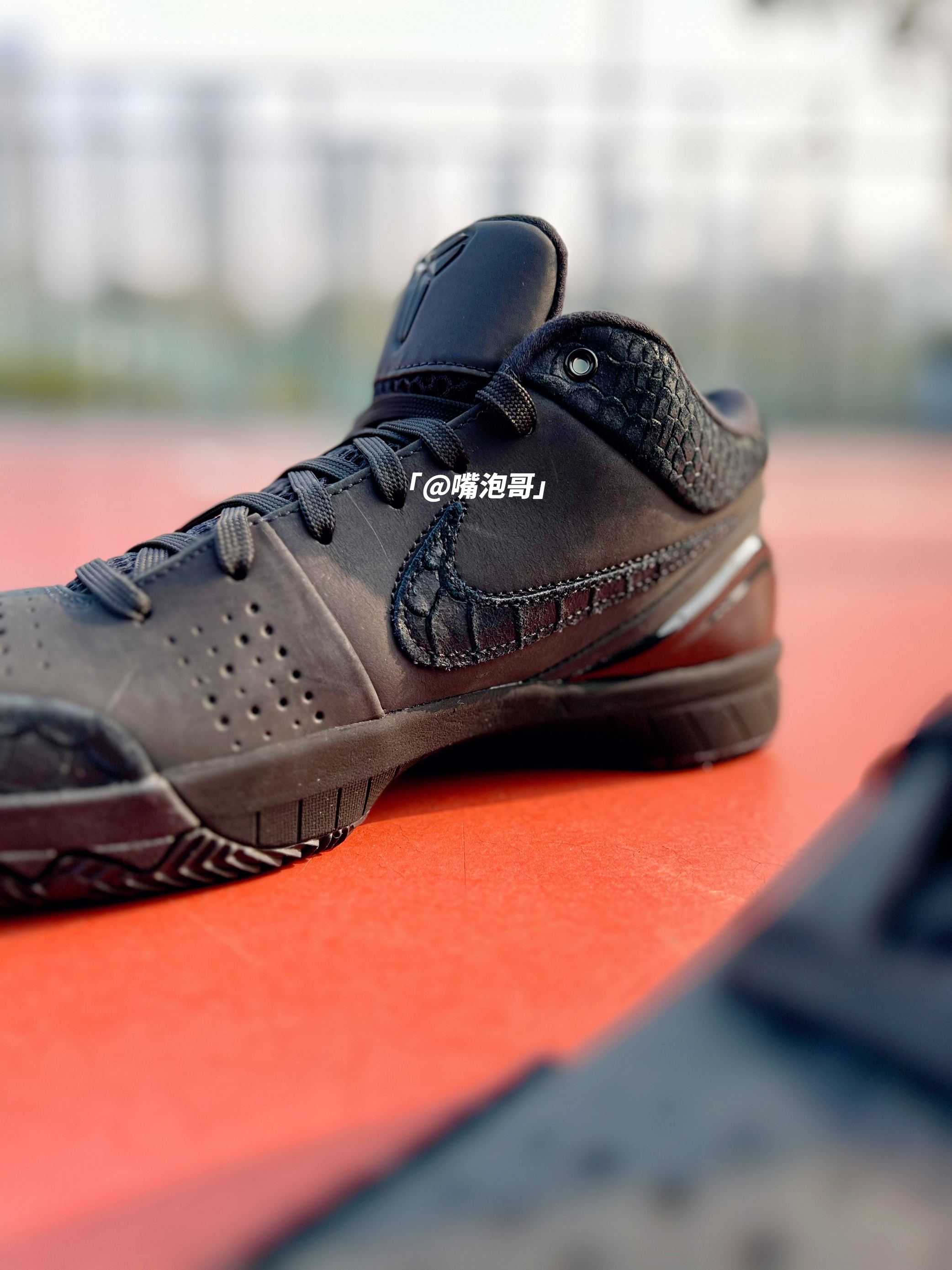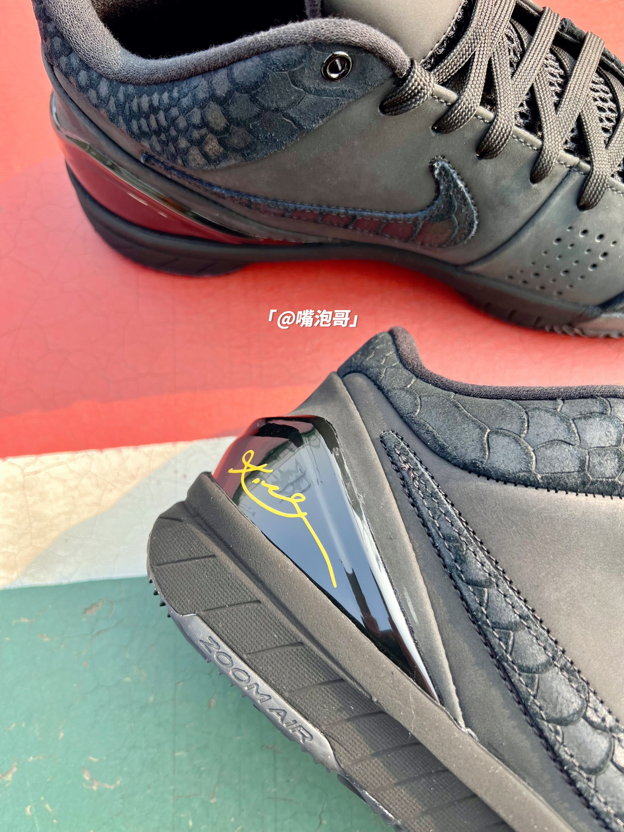 👟:Kobe 4 Protro "Black Mama" 黑色 简介: 鞋款是刚发布的科比系列实战球鞋,整双鞋子选用了黑色来呈现,但整体的黑色并不是统一的,复合皮革制作的鞋面搭配上双缓震中底,使其上脚有着良好的脚感。 细节: 鞋面选用了哑光磨砂皮革打造主体,同时又加入了带有蛇鳞纹的复合皮革装饰,两侧的swoosh同样用了蛇鳞纹皮革,使整体的质感提升,鞋舌是复合织物网布材料,增强了透气性...