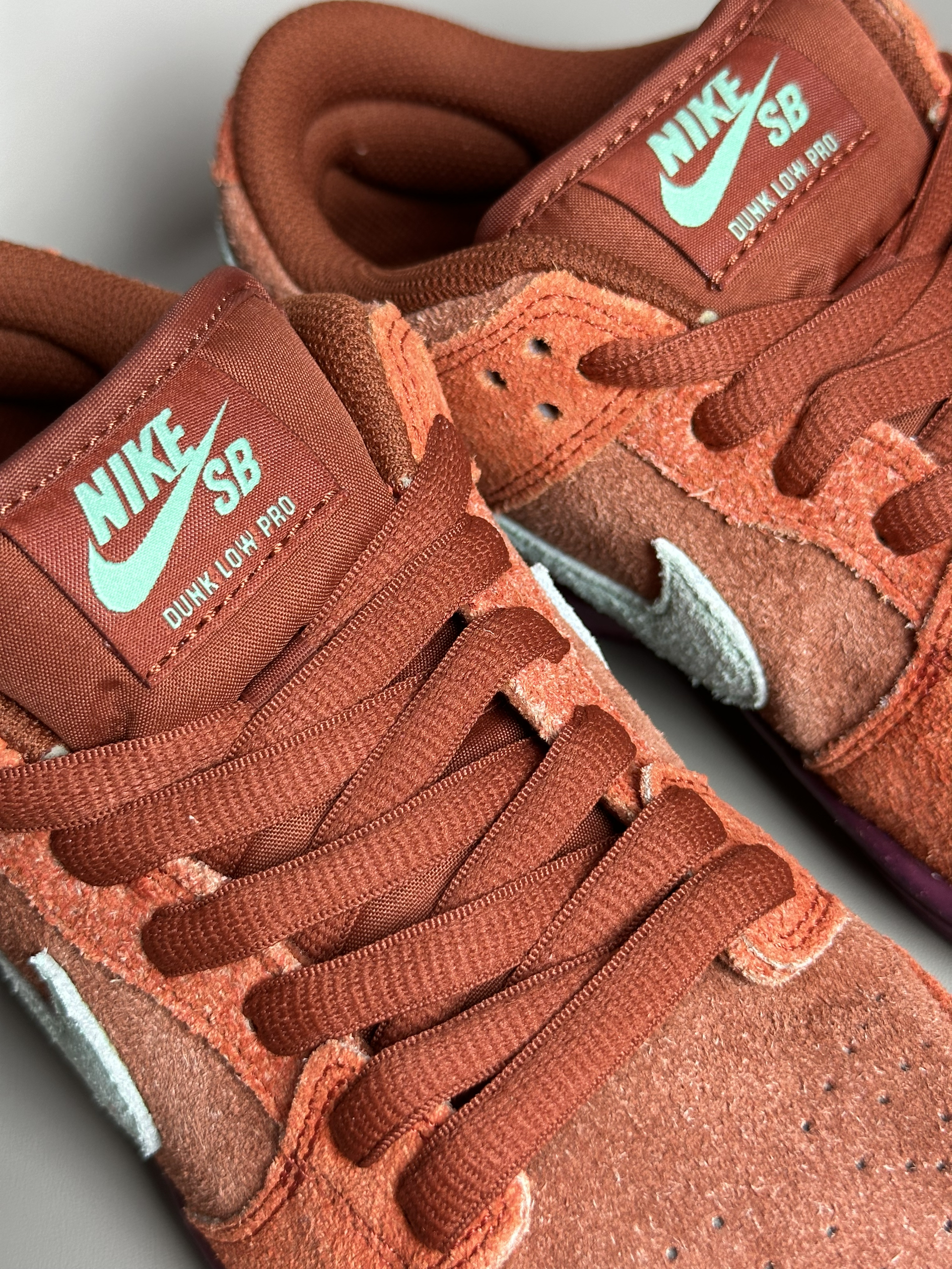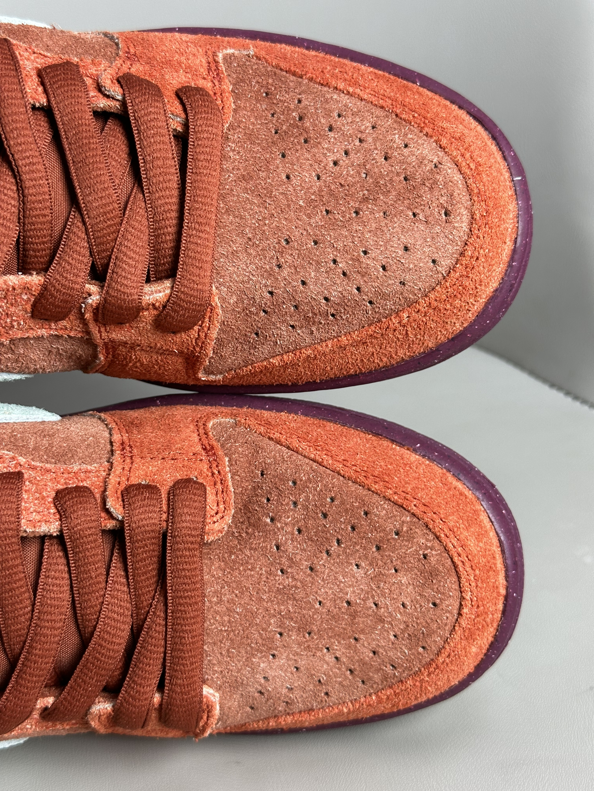 很亮眼的脏橙配色,搭配了低饱和度的蒂芙尼绿swoosh,配色有亮点,颜值非常高。跨年穿这双主打一个回头率拉满。鞋面还用了质感非常好的长绒麂皮材质,上脚特别显高级感 尺码偏小,建议买大一码
