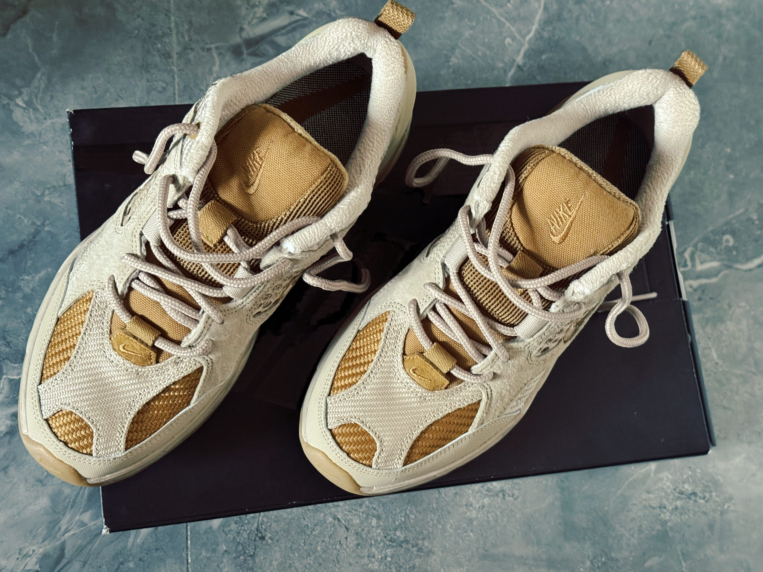 Nike M2K小麦色厚底老爹鞋,鞋面是皮革和织物拼接,加了透气网面,整体包裹性很好,是比较厚实的秋冬款,个人觉得低调沉稳的小麦色非常耐看高级上档次,拍出来有一些色差,实际上鞋底偏暗。旗舰店入手, 男生42码买的是 300多,收到的那一刻觉得超级喜欢,这双是男女同款,女生穿也非常好看,可以配情侣鞋。#新年礼物 #男生礼物#鞋子推荐#耐克#运动鞋#生日礼物#m2k#情侣鞋