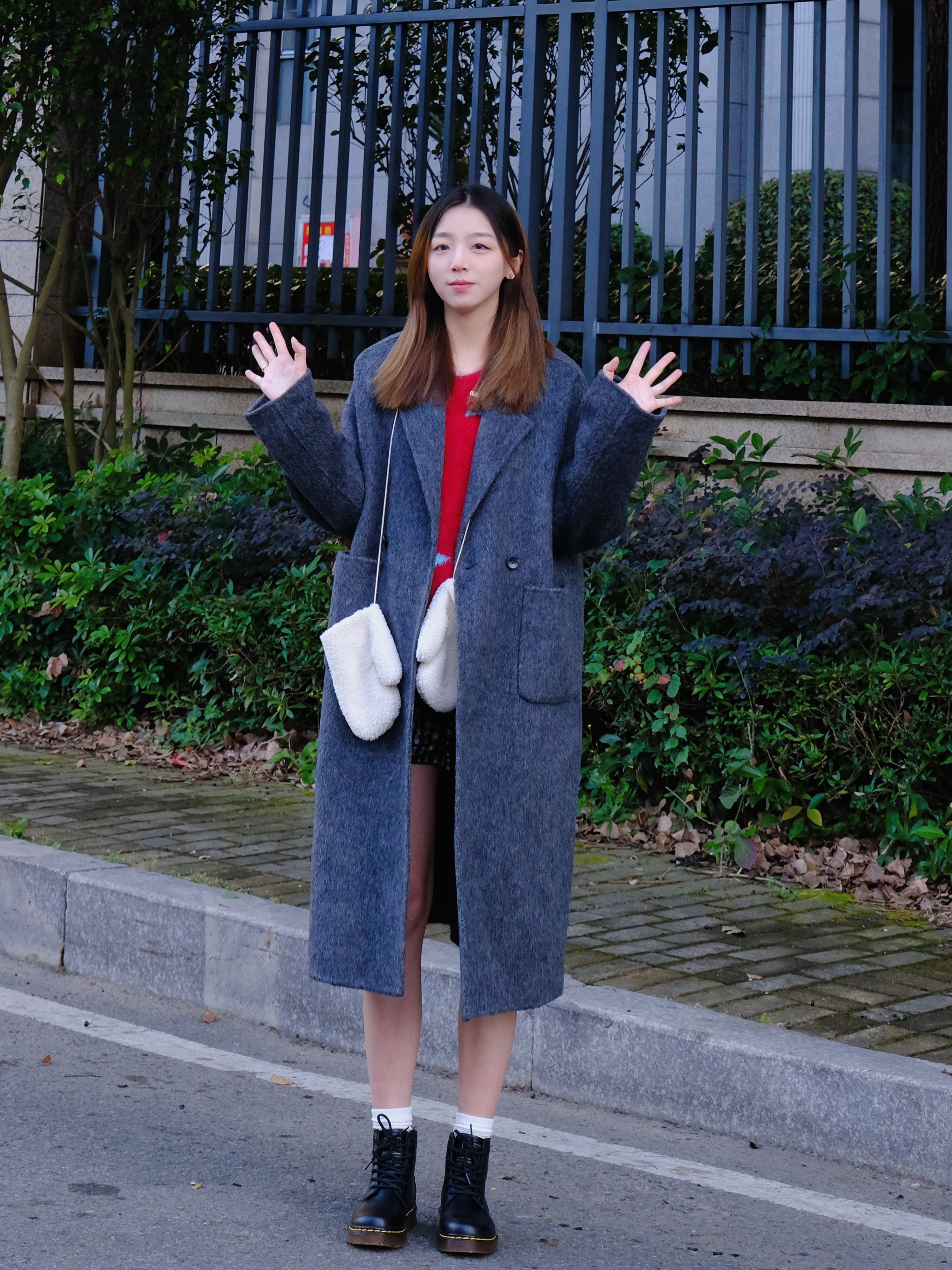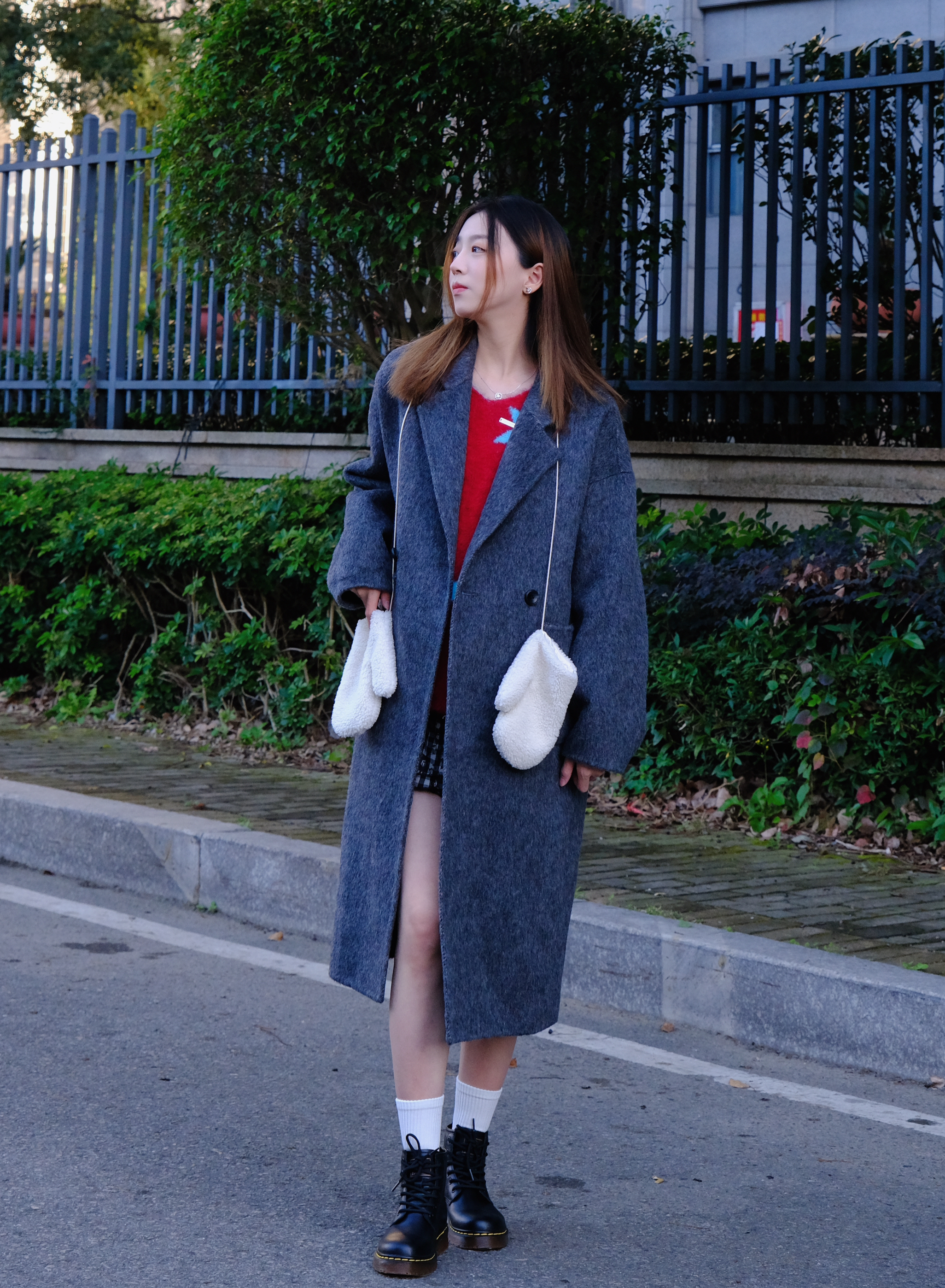 👧:168/48 ———冬日女主穿什么——— - 冬天和大衣➕马丁靴的适配度100% 灰色的长款大衣~韩剧女主的穿搭我学会了 内搭选择了一件❤️红色的软糯毛衣 圣诞氛围感🈶惹~~ - 搭配了一条黑白格的小短裙~ 加上光腿神器冬日也可以秀大长腿✌️ - 鞋子选择了一双经典的黑色马丁靴! 兼容百搭和提升气场的冬日穿搭好帮手🧐 整体深色的穿搭 很符合冬日的氛围啦~