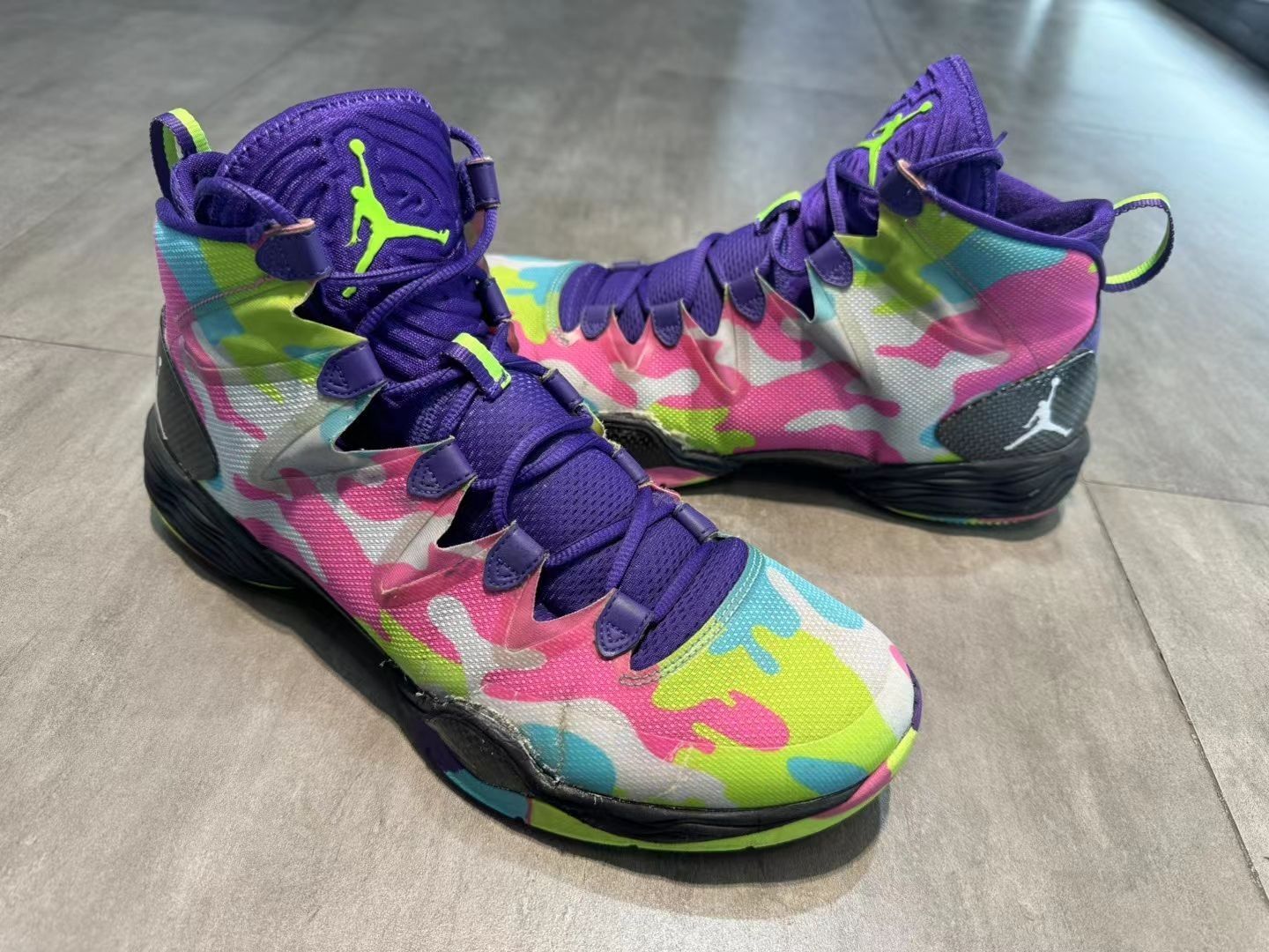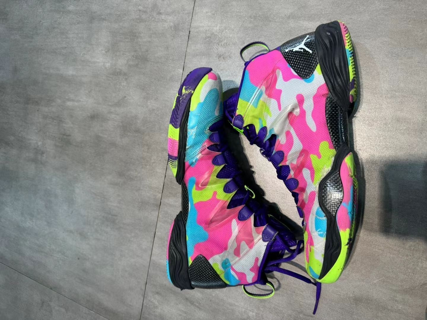 AJ28,诞生于2013年,在2018年也有一款复刻。外观来说,28有点未来战靴的样子, 前后Zoom大而饱满,给予无与伦比的缓震感受,而中底FlightPlate提供了强大的抗扭转性能, DynamicFit技术让这双鞋在鞋面支撑和包裹上无可挑剔。