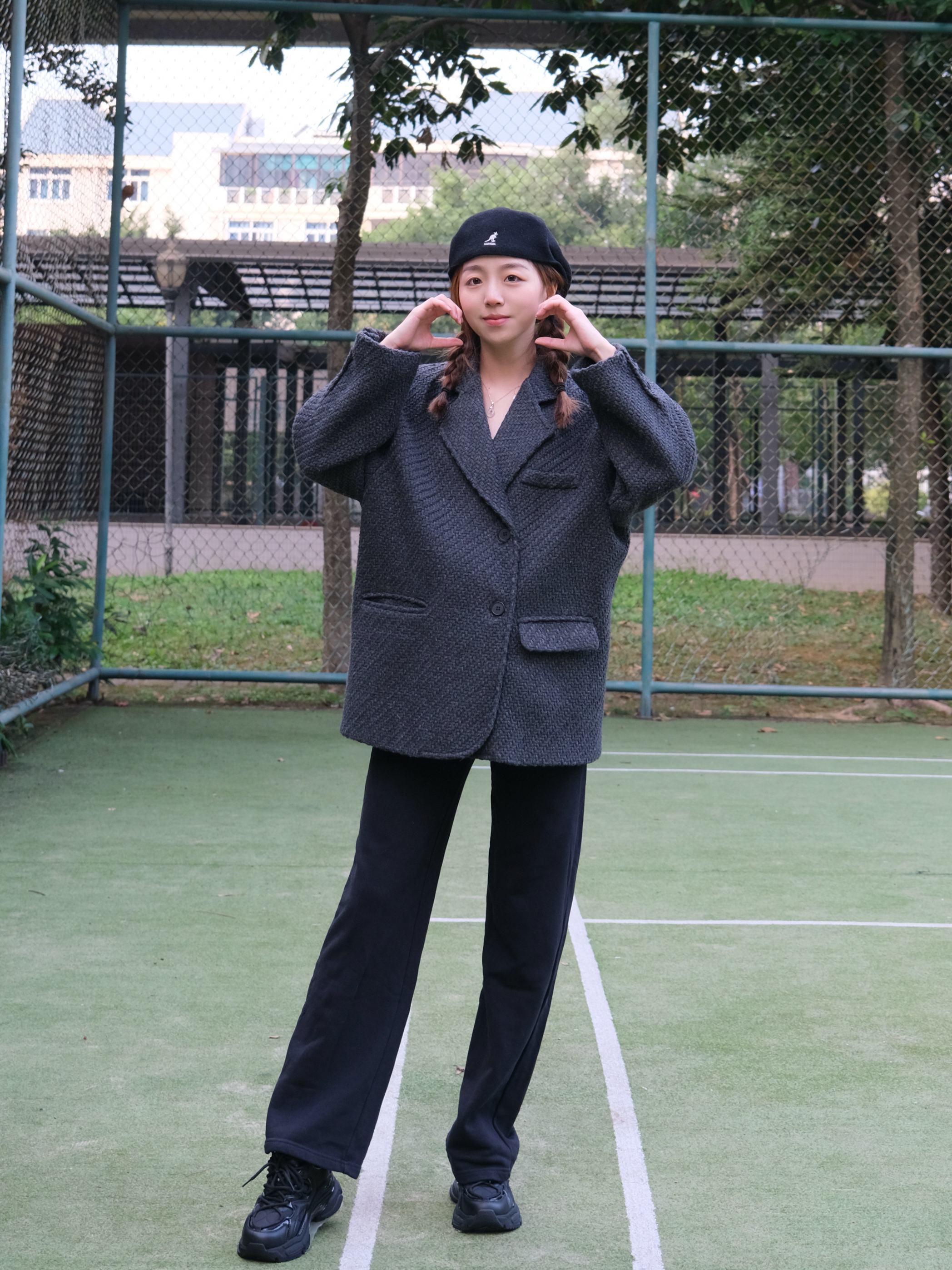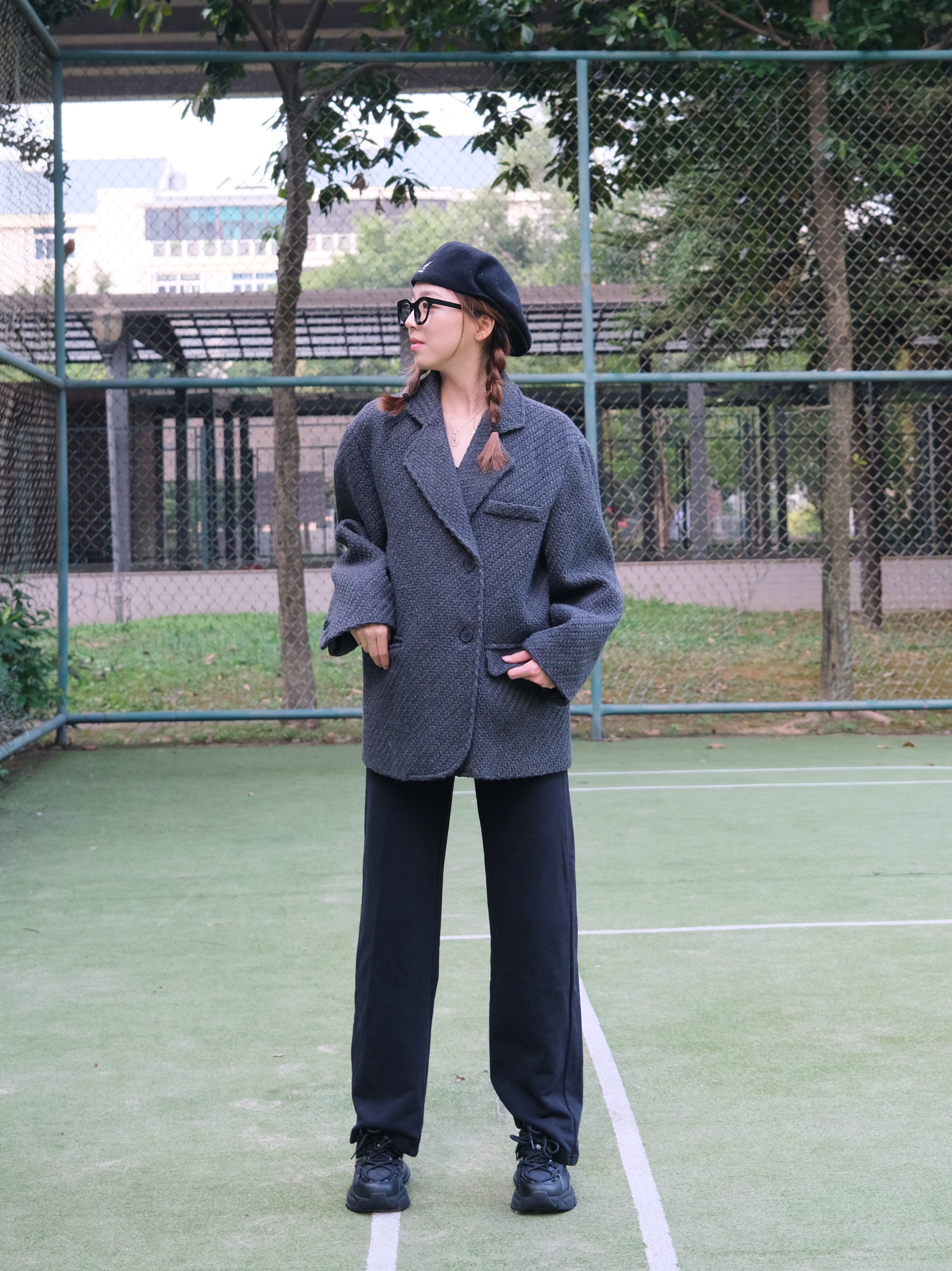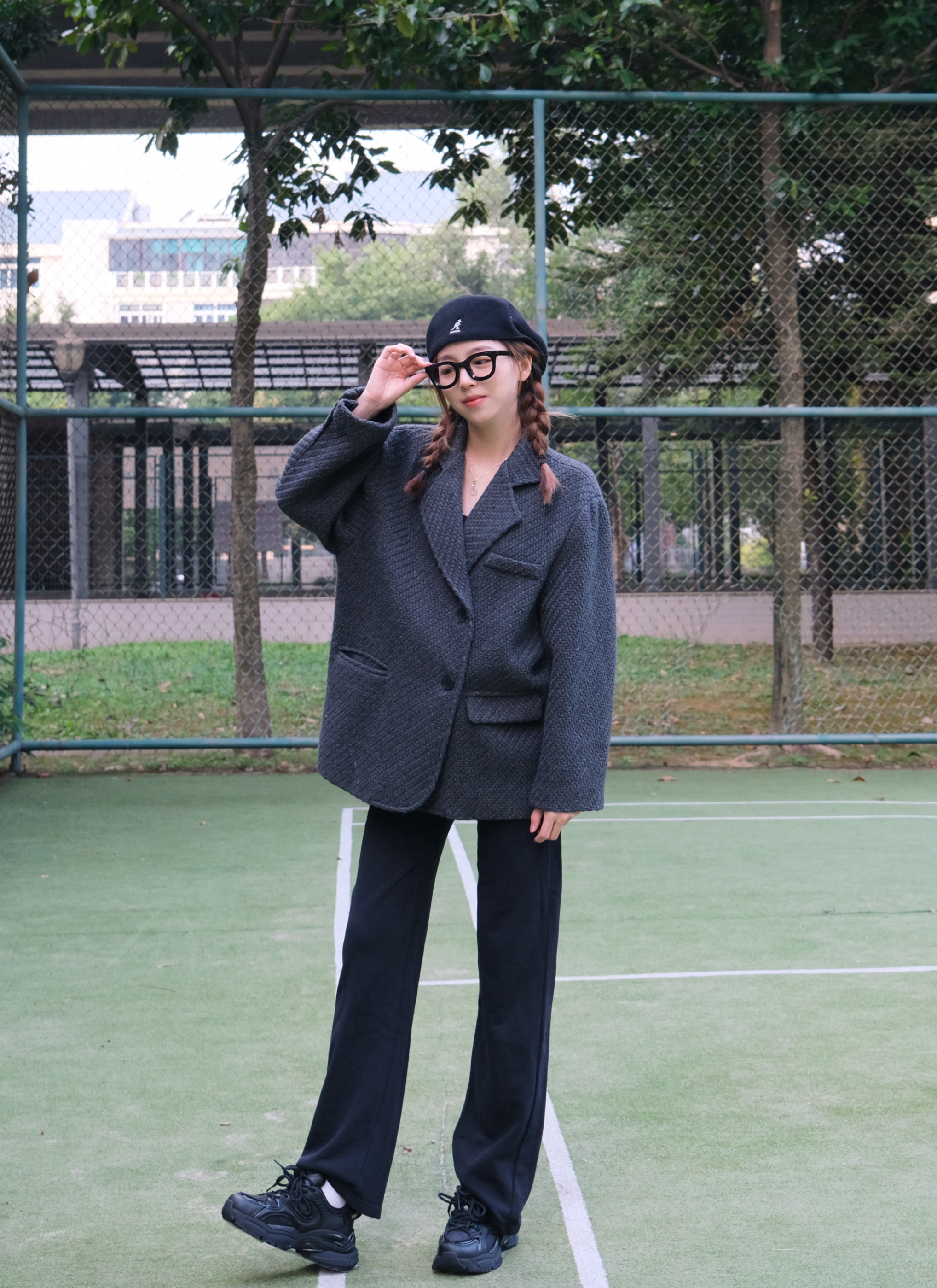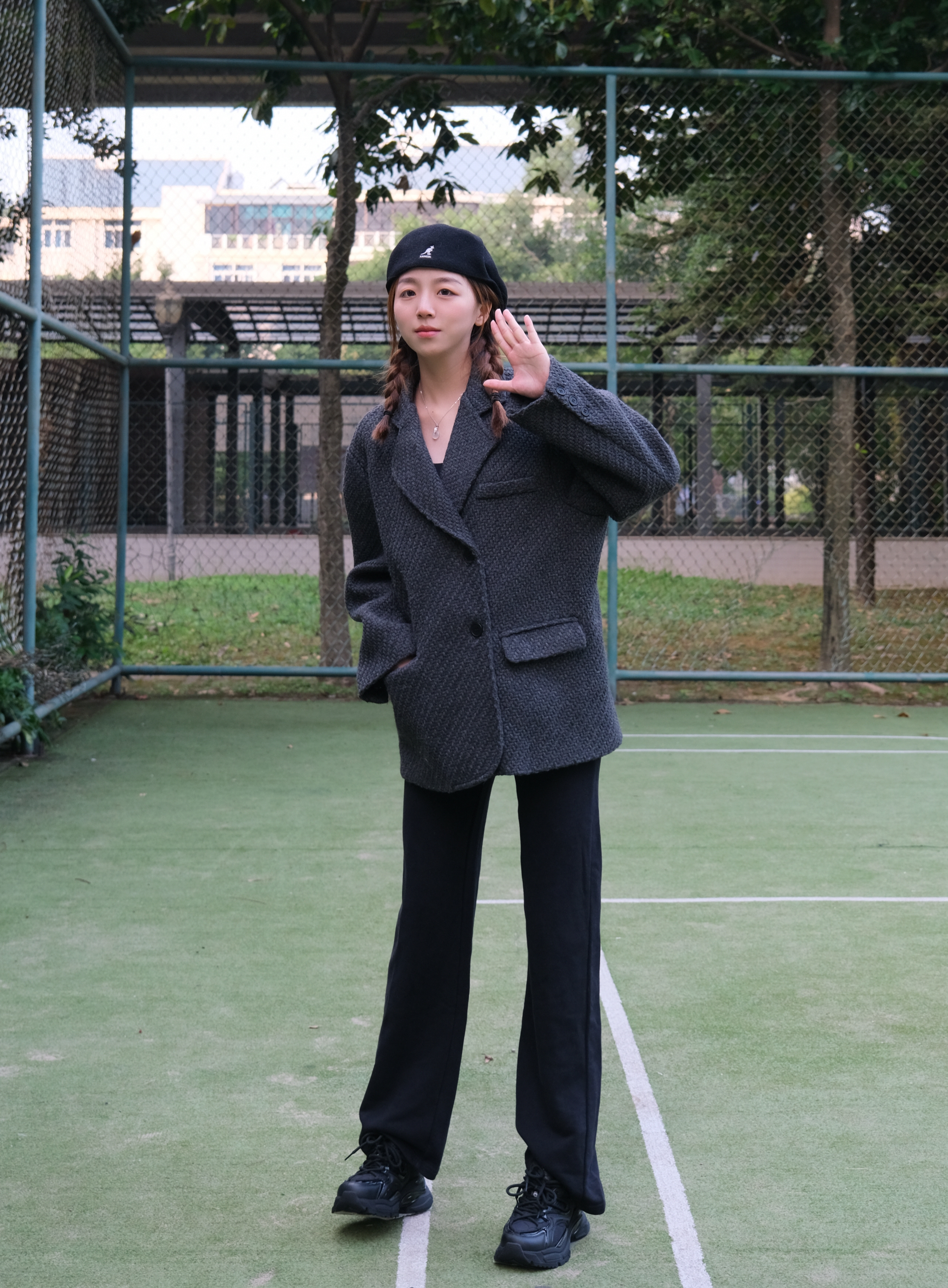 👧:168/48 ———冬日女主穿什么——— - 哦莫~发现一套显瘦韩系look🌟 灰色的重工西装外套好可! 简单又高级的同时又多了些休闲与随性 - 搭配了一条显瘦的黑色休闲直筒裤 冬日里hin需要这种显腿长滴保暖裤裤 上身气质这不就来了咩🐑 - 搭配上一双黑色老爹鞋 🖤全黑的设计泰酷辣 搭配西装高级感拉满 最中意滴就是它的增高效果啦 身高不够鞋子来凑~~~ 一整个爱住✨✨ #冬日女主穿搭 #时...