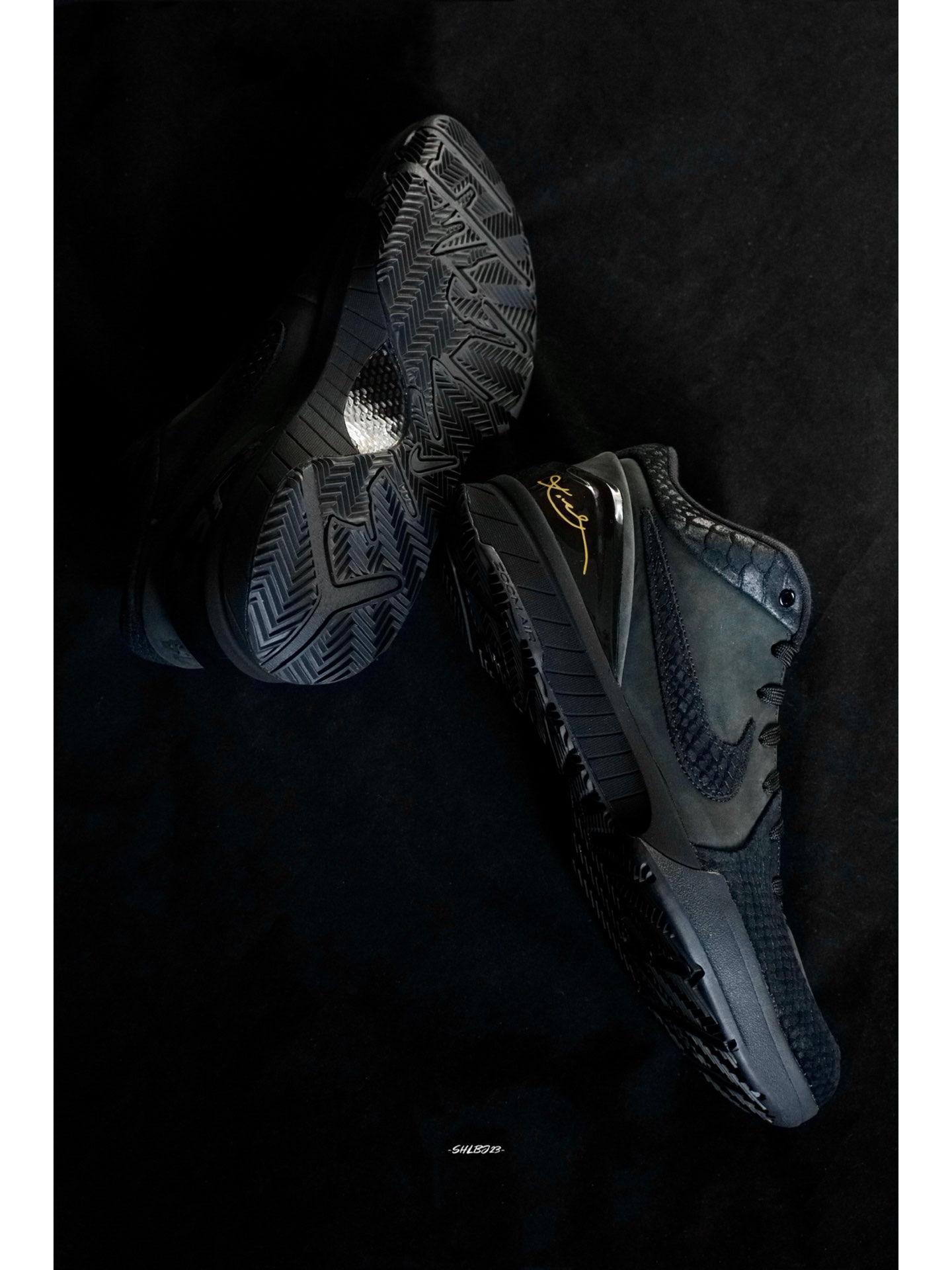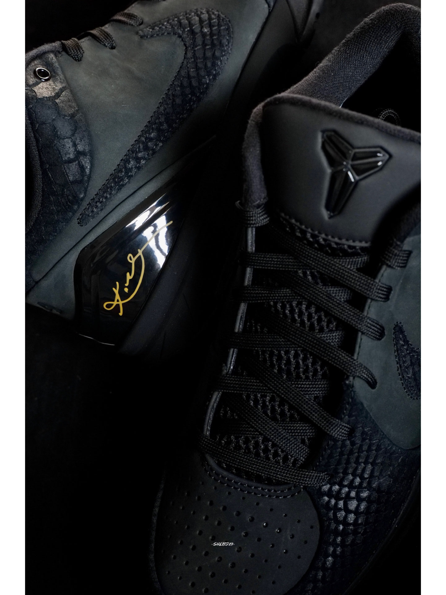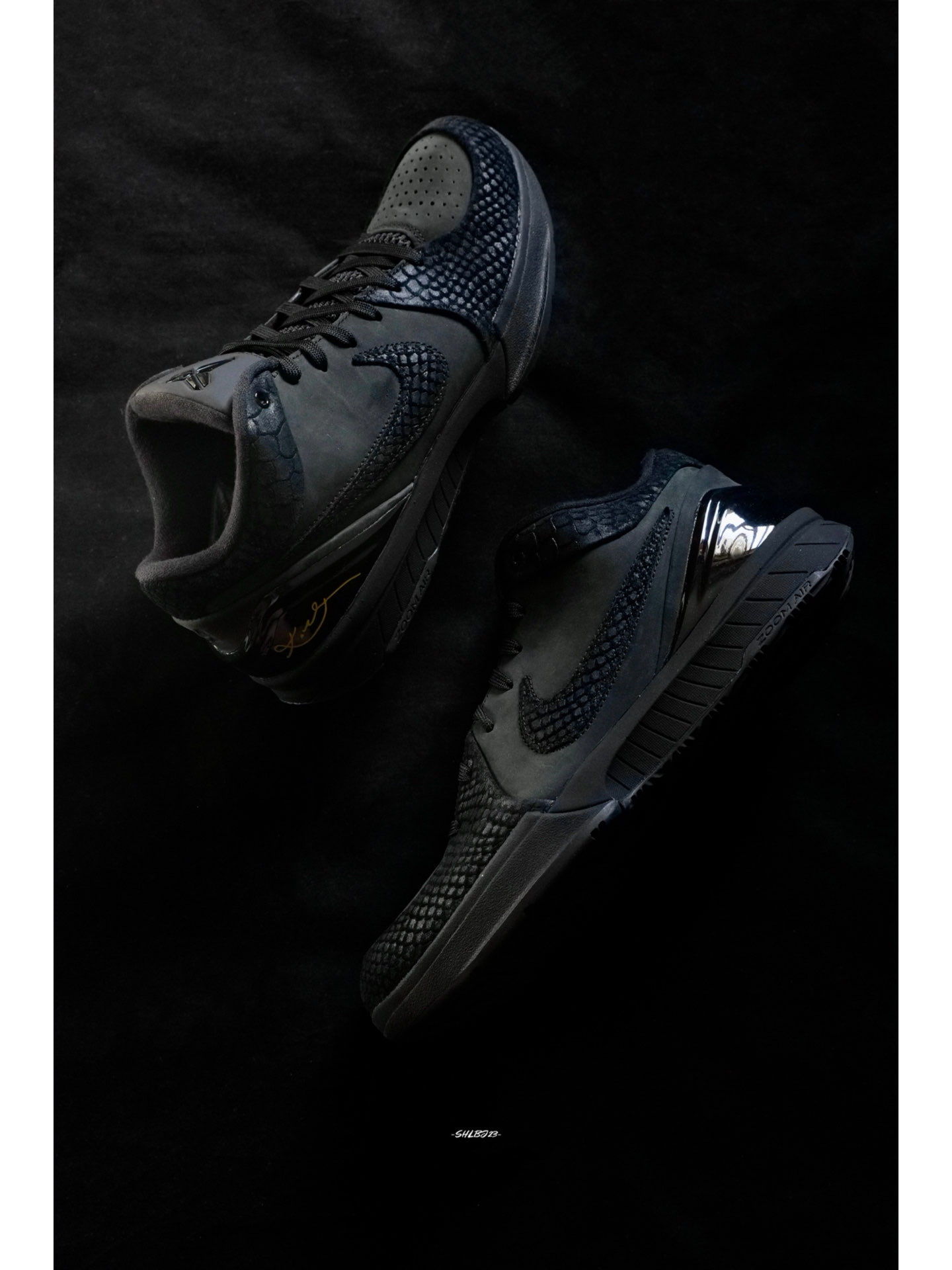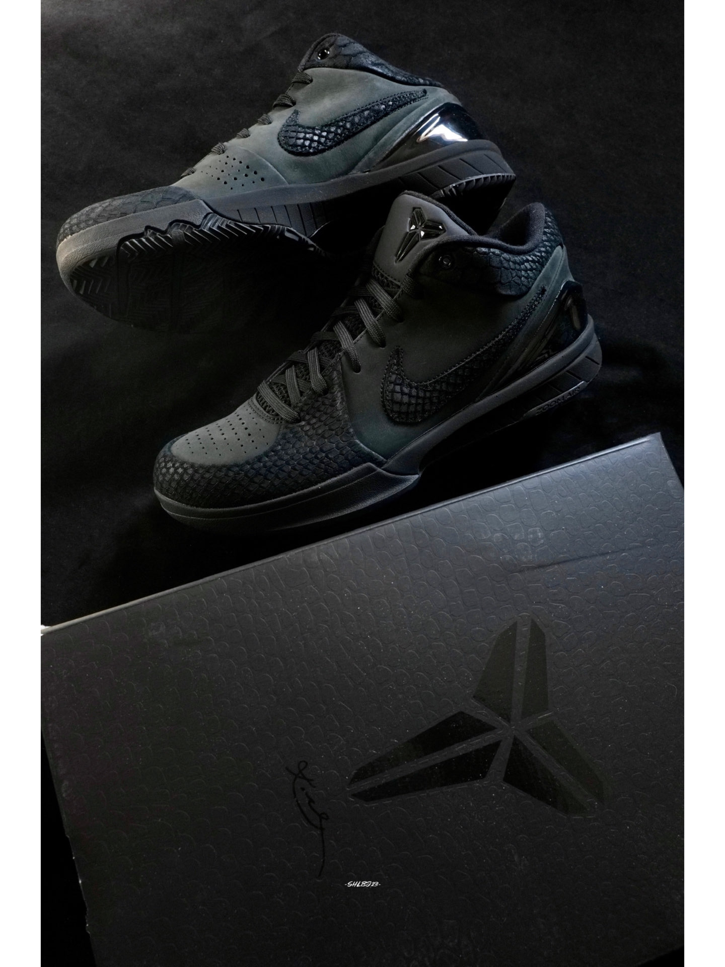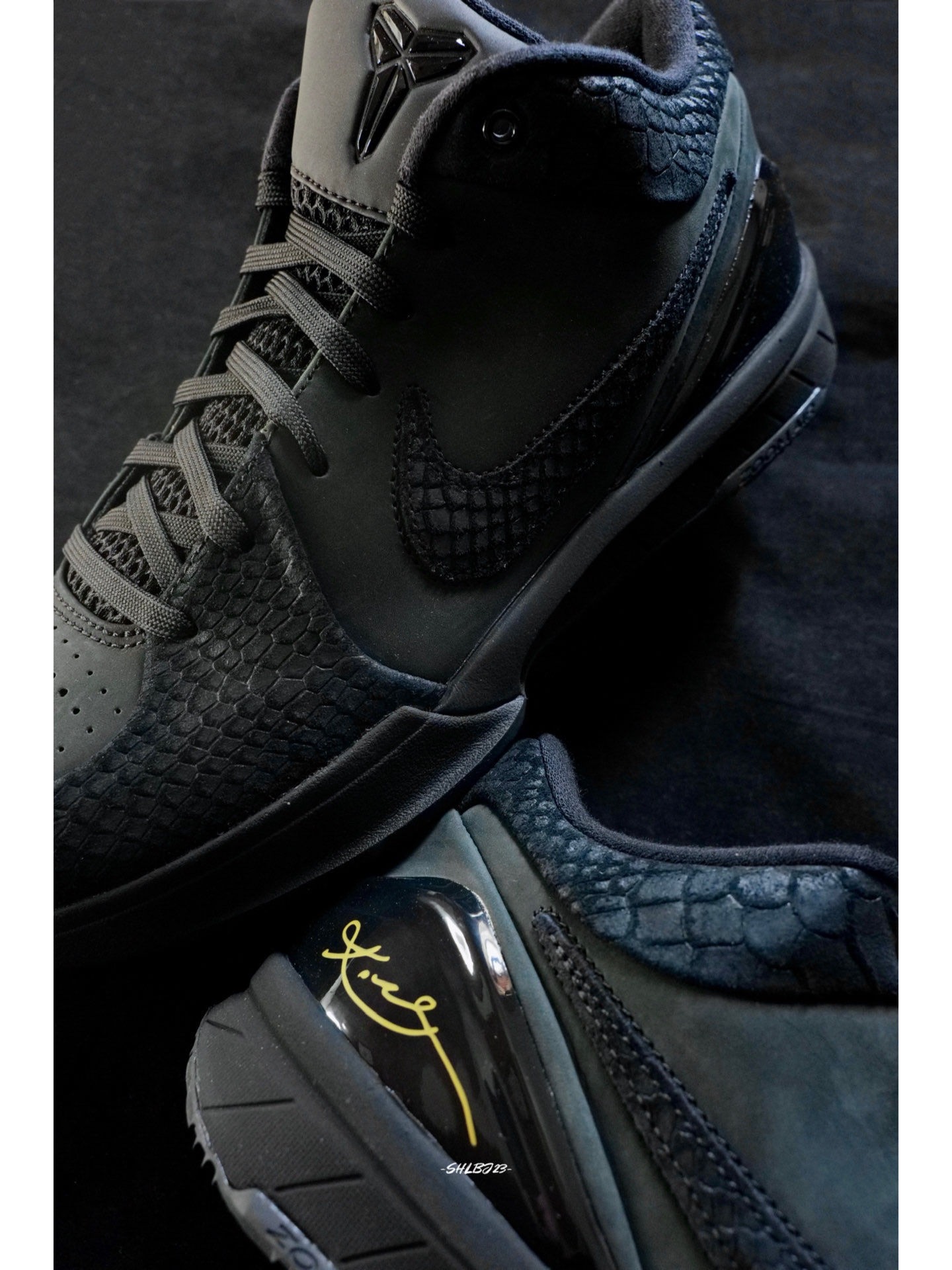 和Kobe 6反转配色截然不同的Kobe 4 Black Mamba黑曼巴配色低调中尽显曼巴奢华。 鞋子整体采用黑色绒面革搭配黑色蛇鳞拼接而成,蛇鳞的质感相当精致。鞋舌的Kobe徽章、Swoosh和后跟24都是黑色,鞋后跟的金色科比签名的点缀十分突出。 这双鞋很好搭配,无论球场上还是日常穿搭都简单好搭。 #我的科比鞋款 #我挚爱的曼巴战靴 #我永远都是科比门徒 #打篮球当然要穿实战鞋 #快乐...