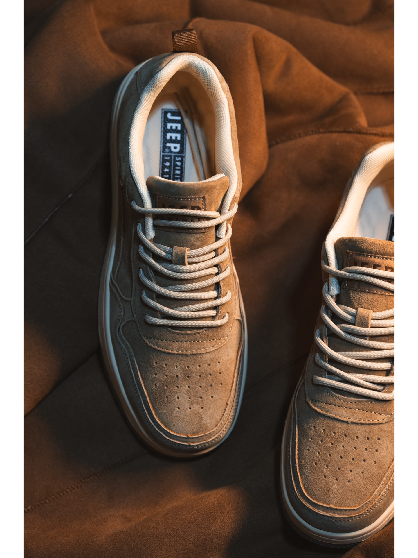 在秋冬的季节暖暖的色调最令人喜欢, 一双好穿舒服的板鞋也是我们通勤的好选择。 这款JEEP就是我最近在咱们平台发现的宝藏鞋款。 整个鞋子采用暖暖的美拉德色系 大面积绒面皮摸起来很舒服也很显质感。 上脚舒服还有一些增高的效果, 搭配上牛仔裤或者休闲卫裤都很好看。 最重要的性价比还很不错, 所以觉得很值得跟大家推荐一下。 #看看你的氛围感复古板鞋 #板鞋才是我的穿搭利器 #拍拍我的心仪好鞋 #冬天的...