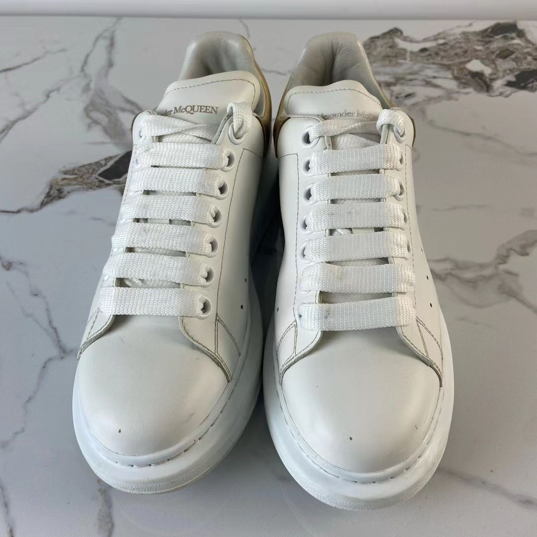 本篇笔记关联了Alexander McQueen/亚历山大麦昆 舒适 耐磨 圆头 皮革 增高 防水 厚底鞋 运动休闲鞋 白/金 等商品,为用户提供真实的使用体验和购买参考。
