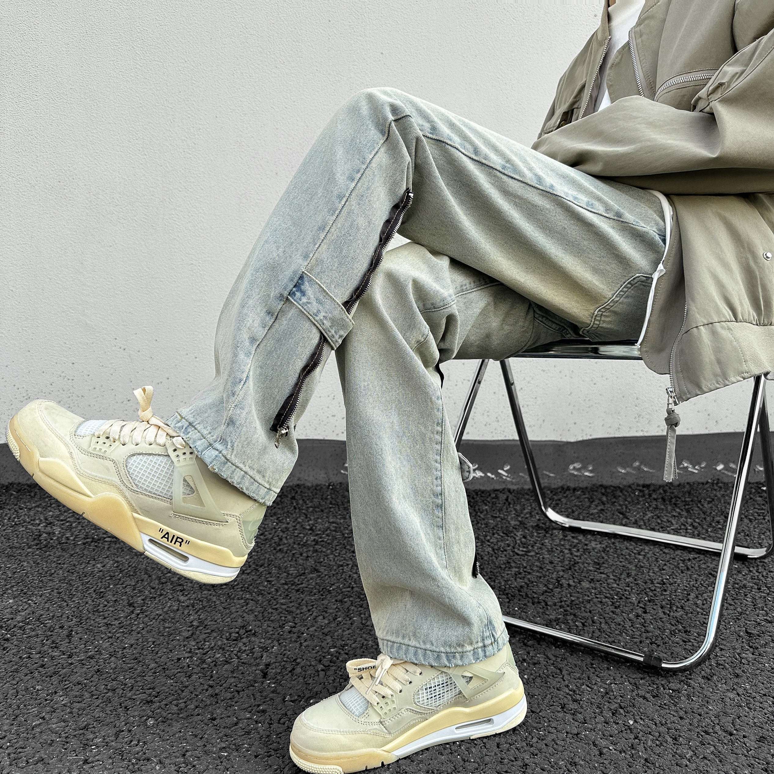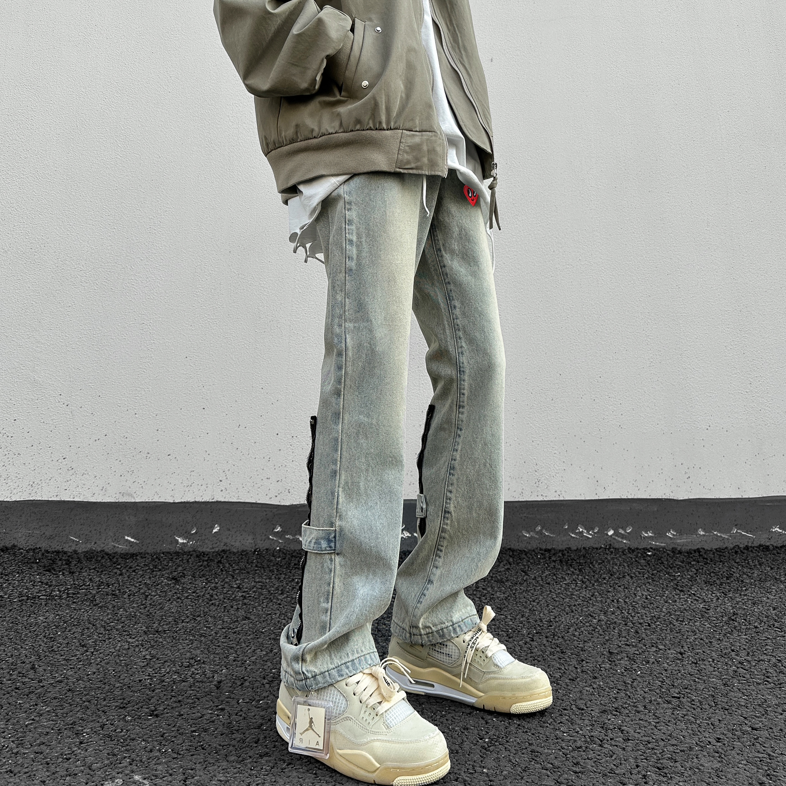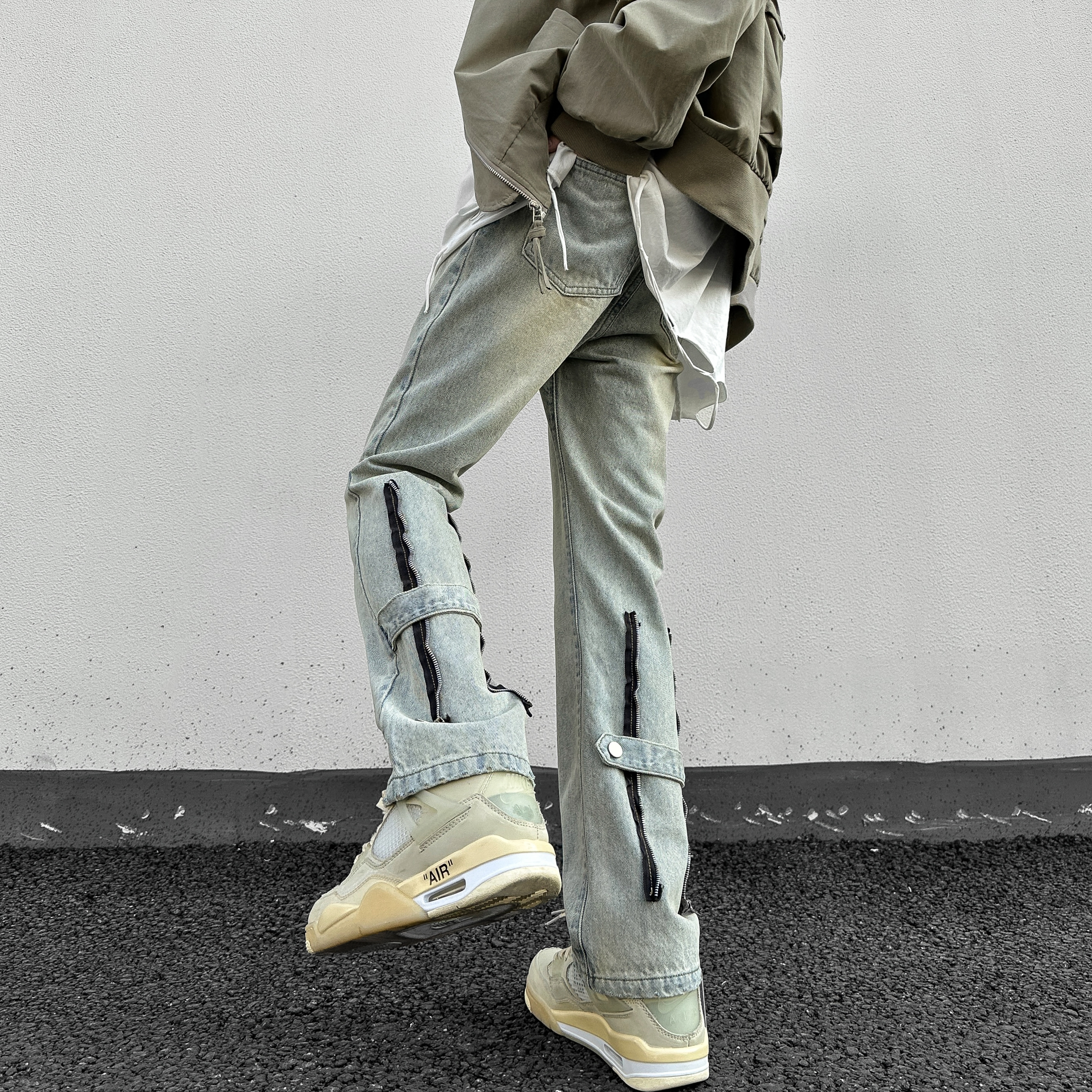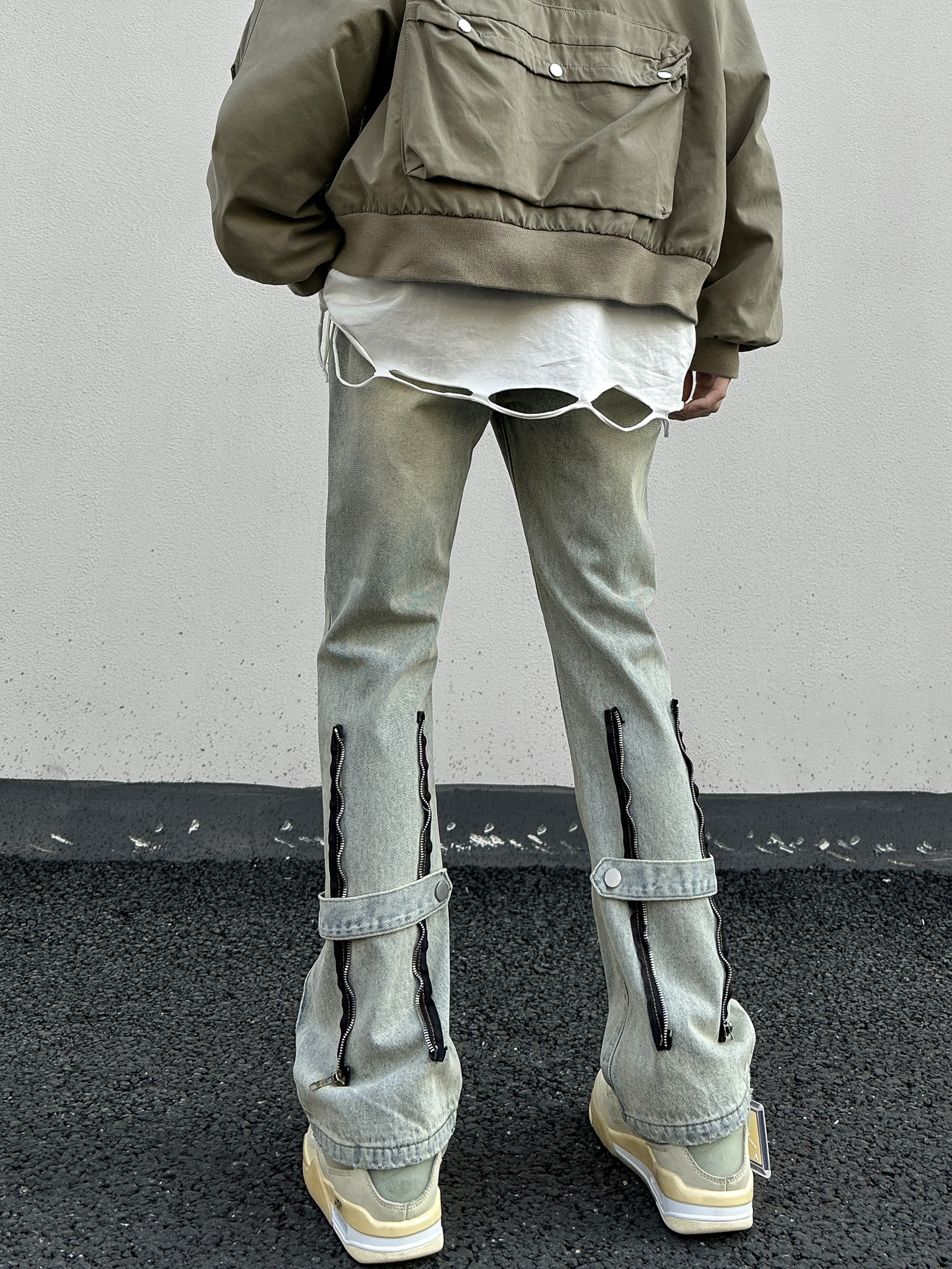 今年很流行的黄泥色牛仔裤复古潮流超级百搭!后侧拉链的设计增添了高街时髦感,这么潮不要命啦!!
