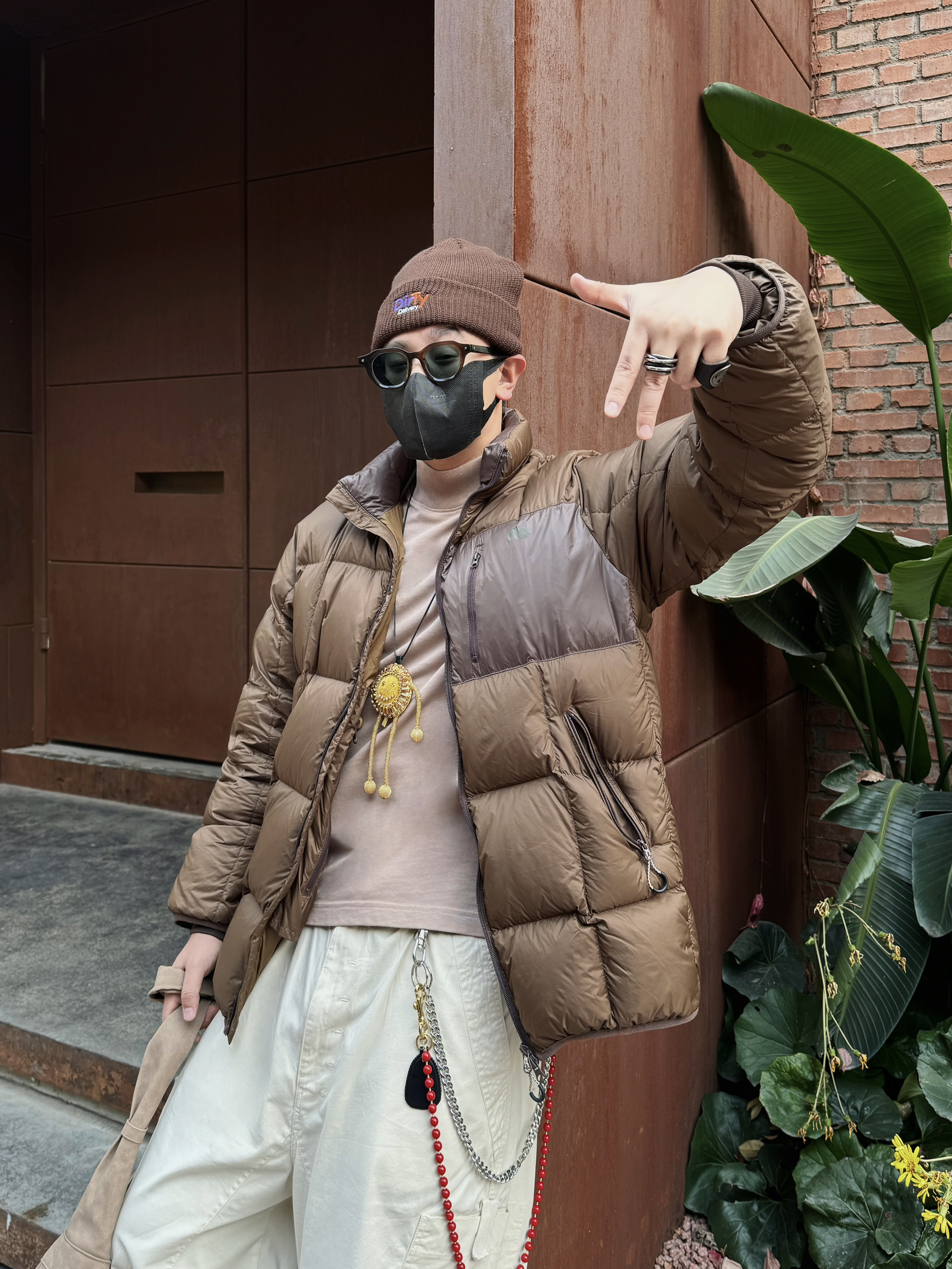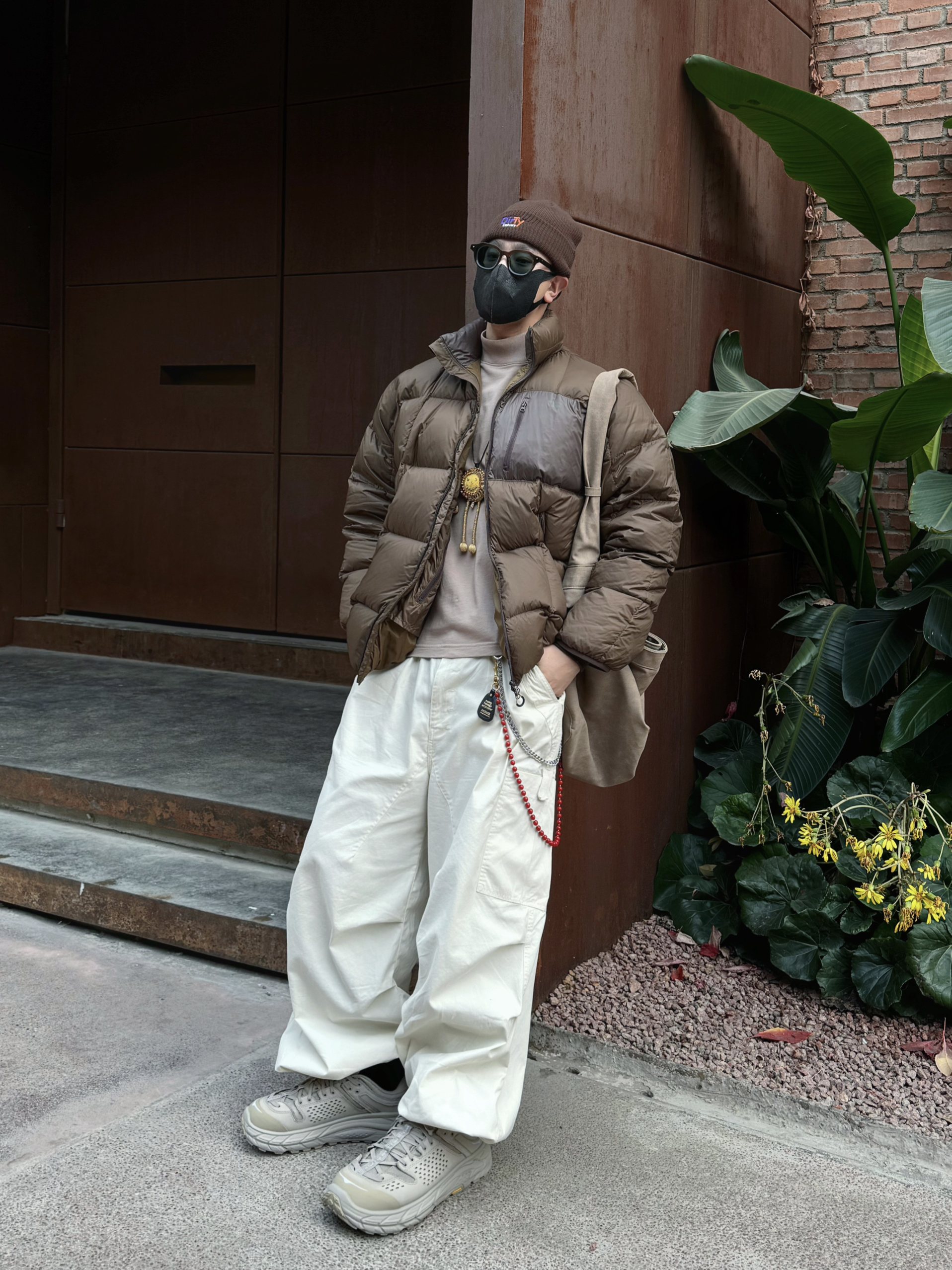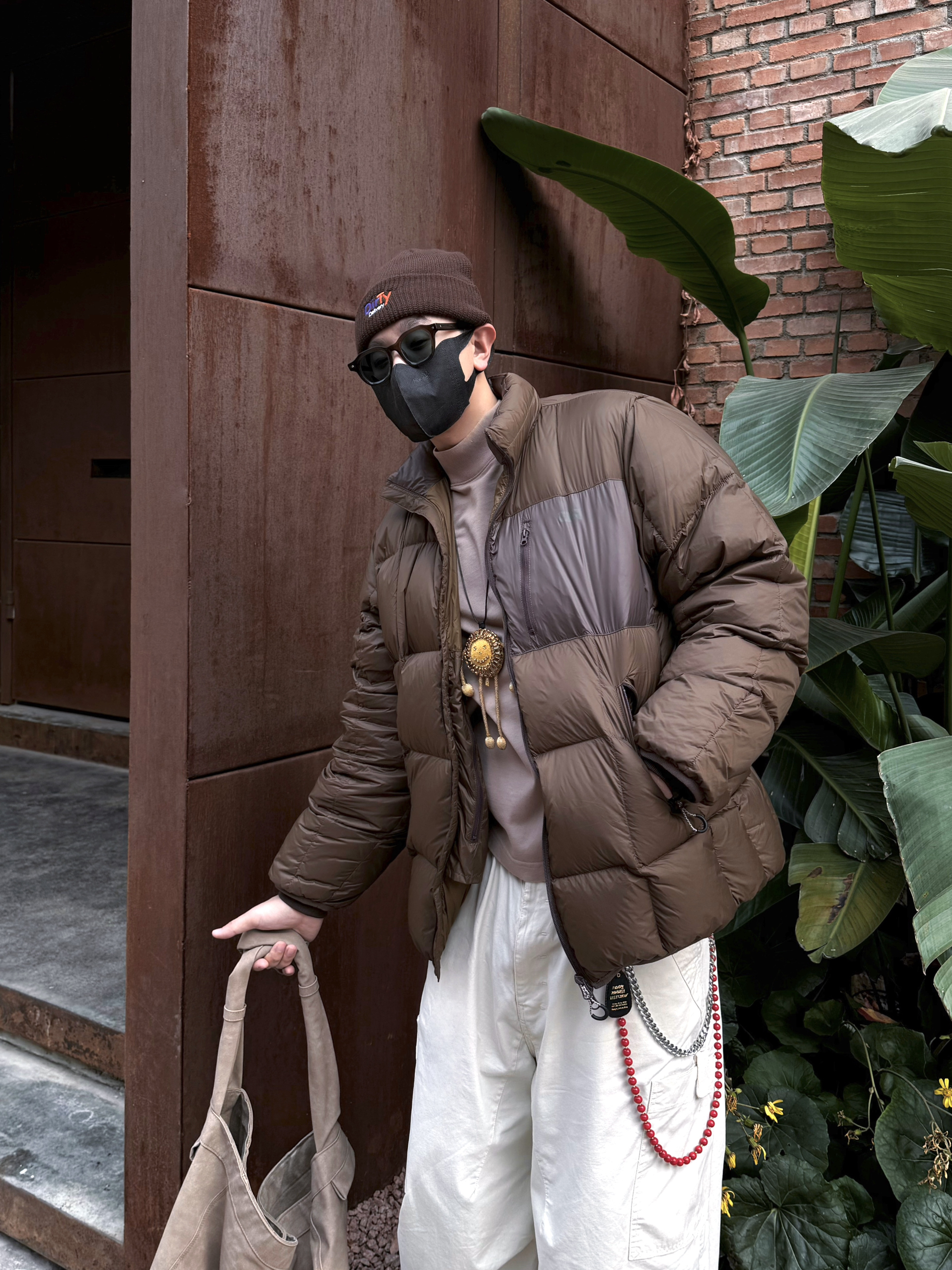 很久不见的日系叠穿🟤还得美拉德耐看嗷❕ 一件深棕色的蓬蓬羽绒服❄️过冬保暖之余, 内搭浅卡其色高领打底🥠轻松穿出层次感💡~ 上深下浅,用米白色阔腿工装裤兜住视觉重心👀, 踩一双同美拉德棕色🟤厚底户外鞋,和头顶冷帽主打一个首尾同色系色系✔️~ 配饰方面除了墨镜顶男点缀之外✨,避免下半身视觉太空——就用红串珠裤链给到氛围感🔴~ 细节控:连背包都得是美拉德色系🟤谁懂啊❕ 今日份Cityboy日系叠穿,N...
