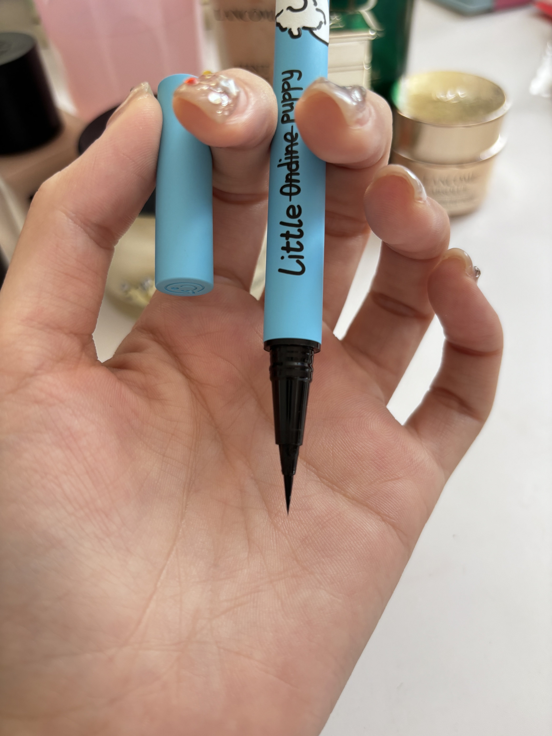 线条小狗联名眼线液笔!这也太可爱噜! 小奥汀✖️线条小狗联名款眼线液笔 之前就用过它们家眼线液笔 真的很经典 这次出了联名款 这么可爱的线条小狗 我果断入手! 出水顺畅 用起来很丝滑 也不容易晕妆!很nice!