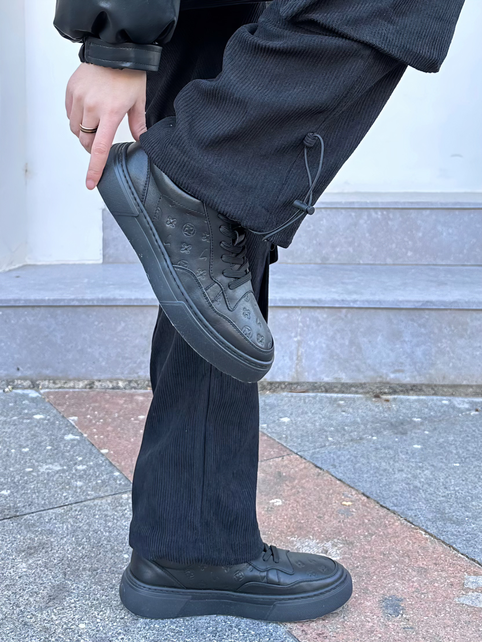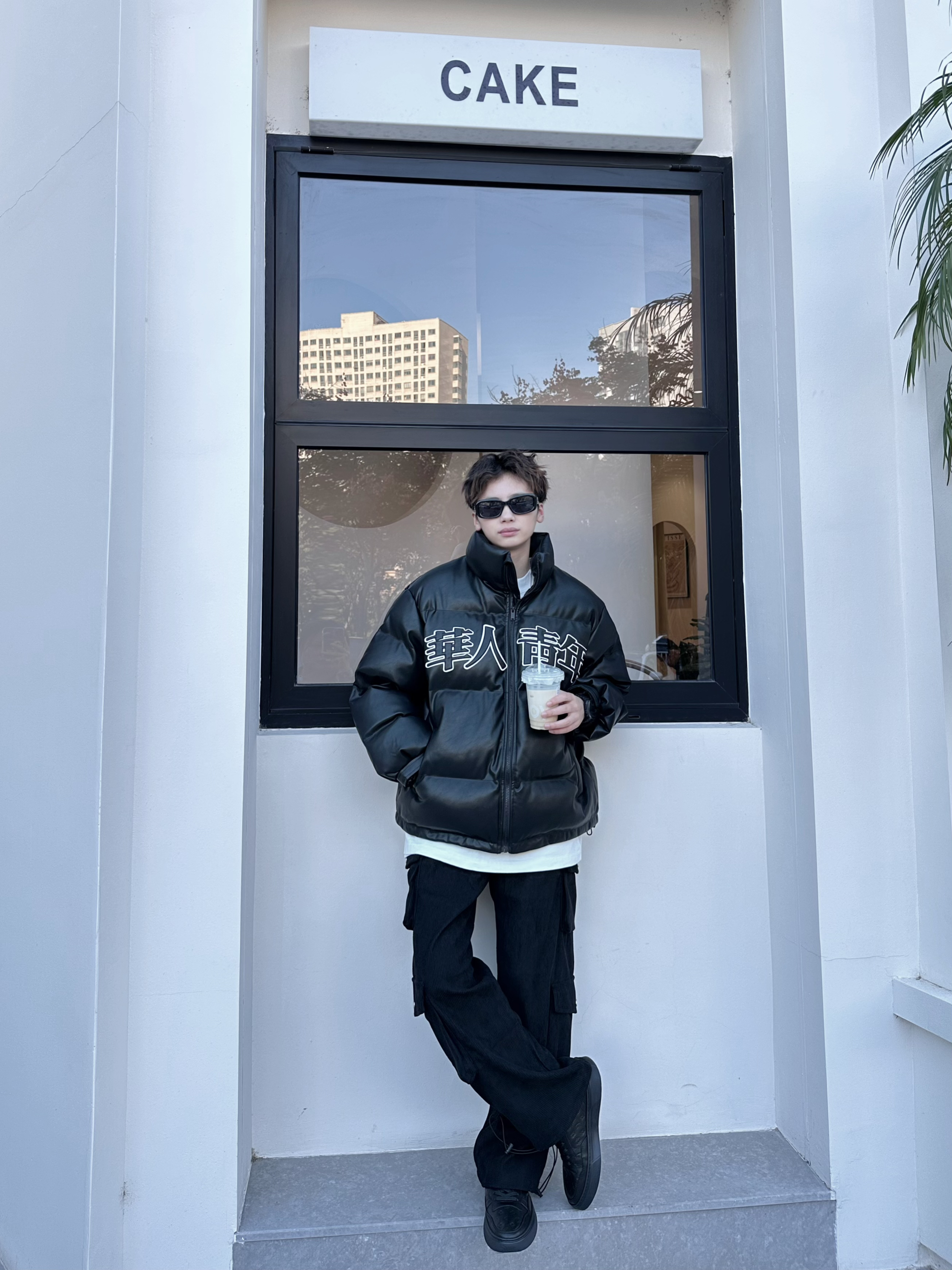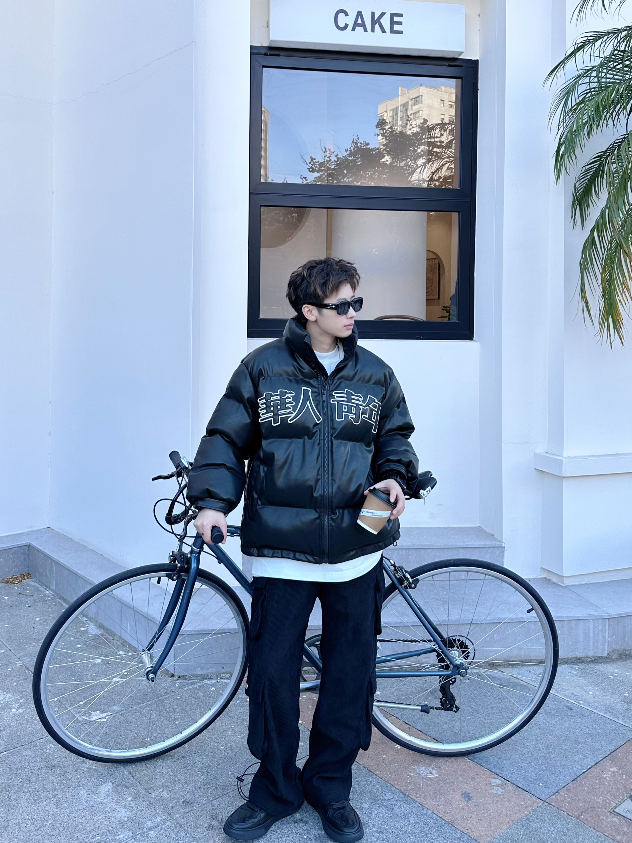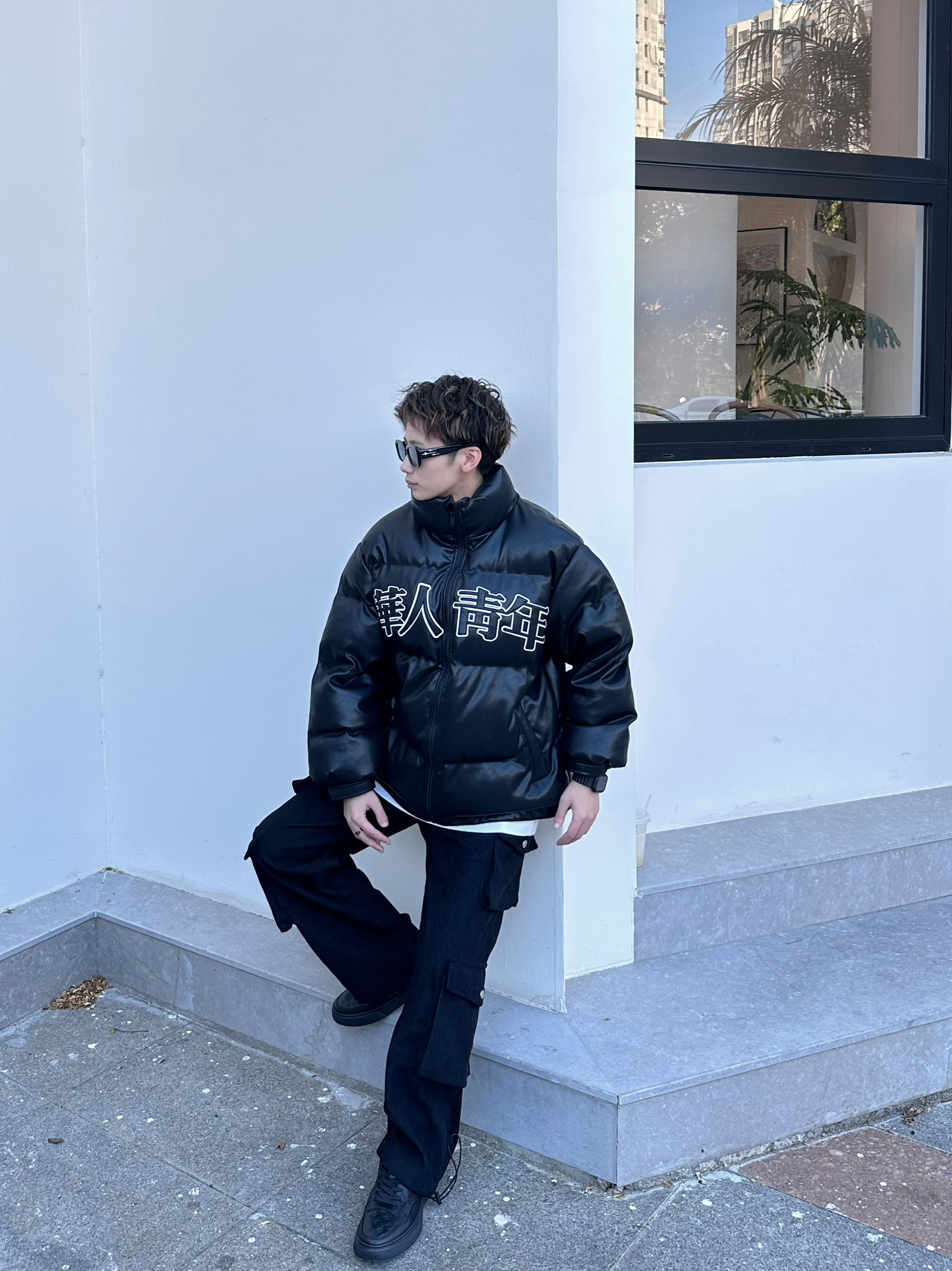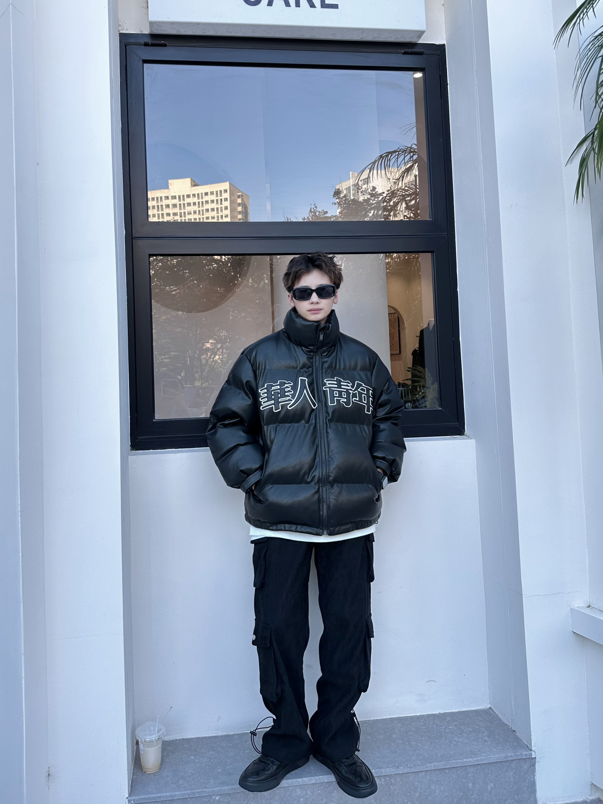 halo这里是嘎嘎的日常穿搭分享🥳 - AllBlack穿搭是秋冬经常能穿到的 好看又耐穿的懒人穿搭公式 上身一件黑色宽松棉服 pu皮的面料比较好打理 简单的logo会比较耐穿一点 立领的设计,抗风又保暖 裤子搭配一条黑色直筒工装裤,就比较有街头感 鞋子选择一双黑色板鞋 压花的鞋面设计,简单又高级 日常通勤、休闲穿搭都可以 牛皮的材质,脚感很轻,穿起来比较舒服✔️ 尺码参考:163cm/44...