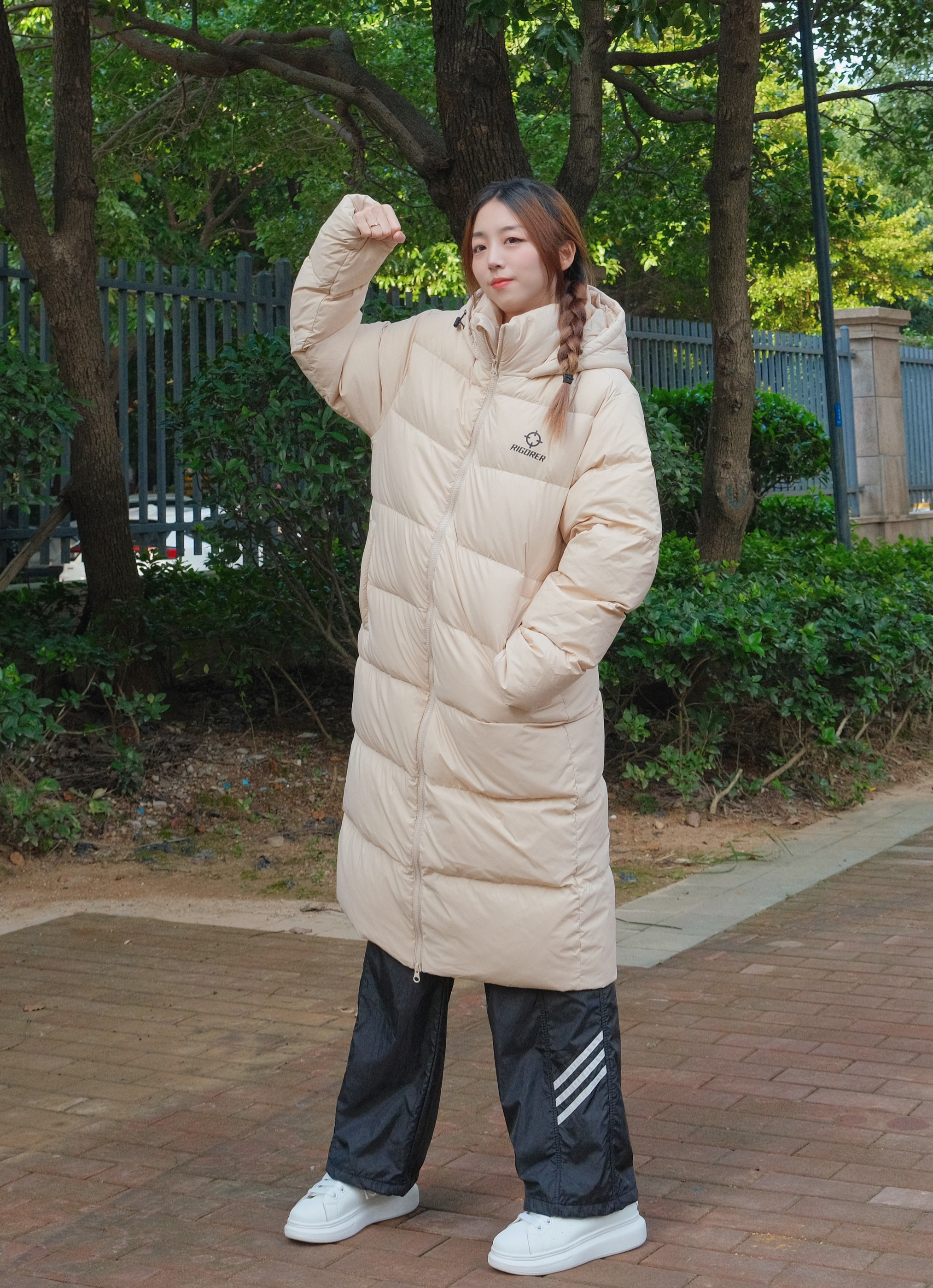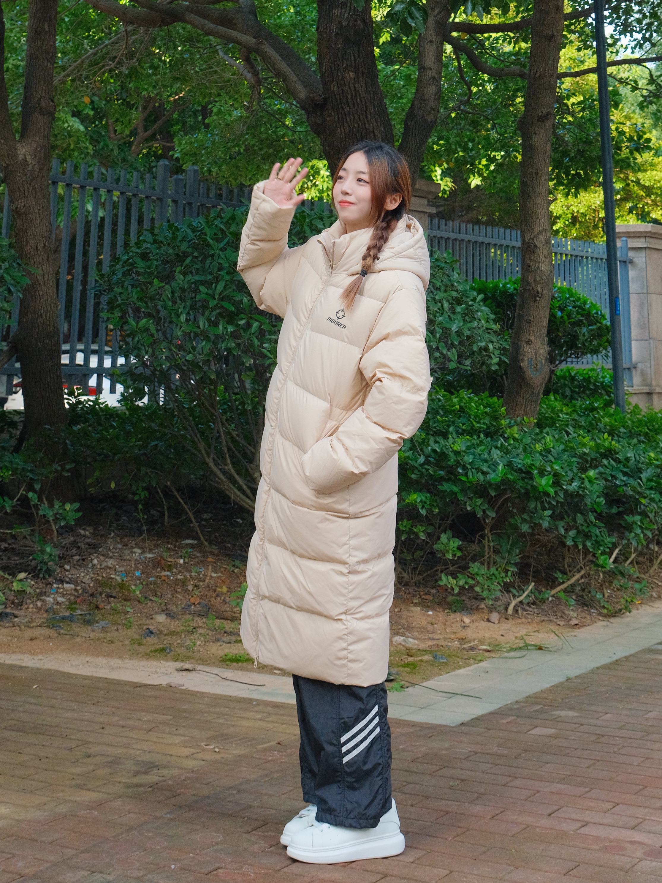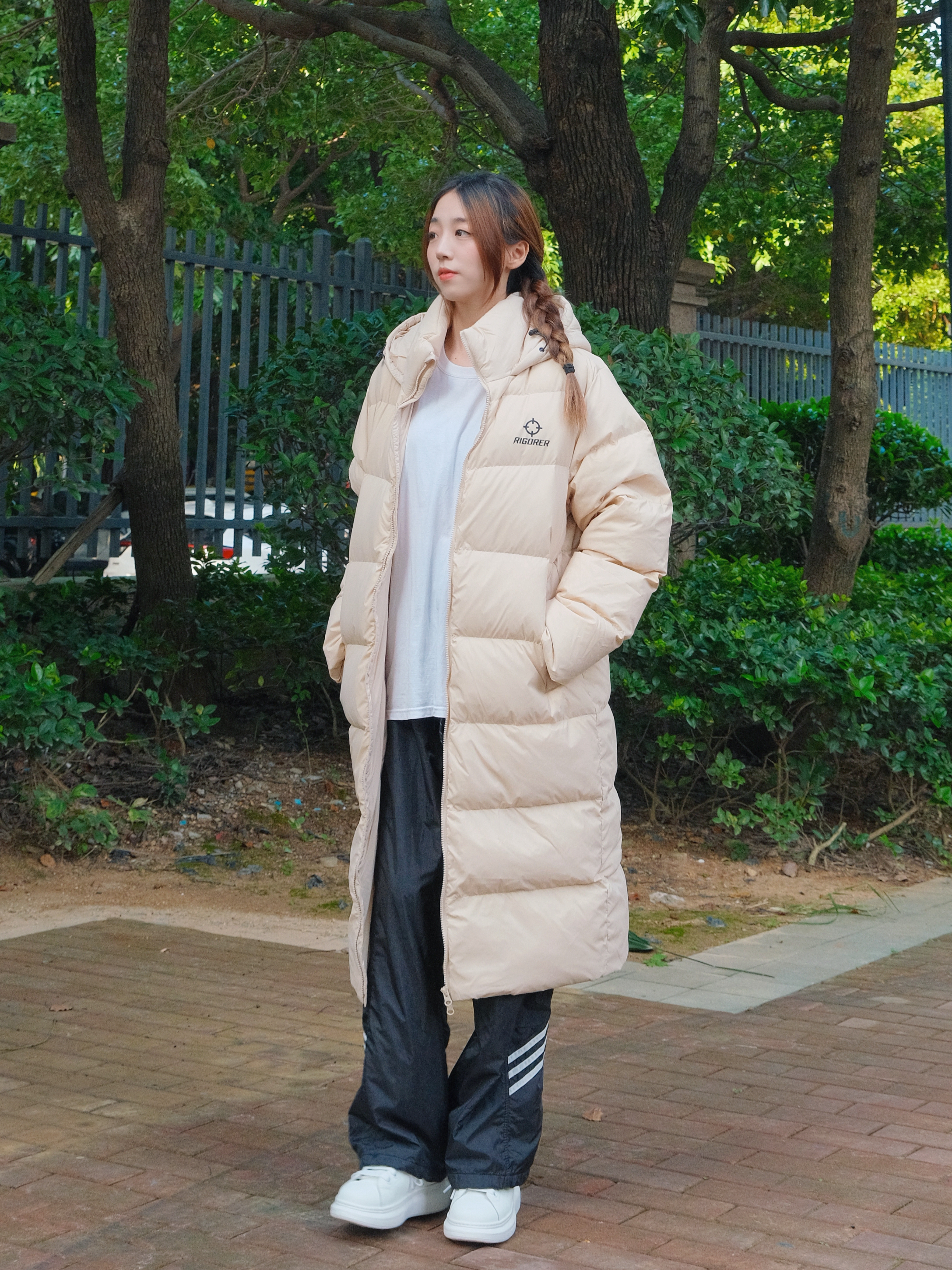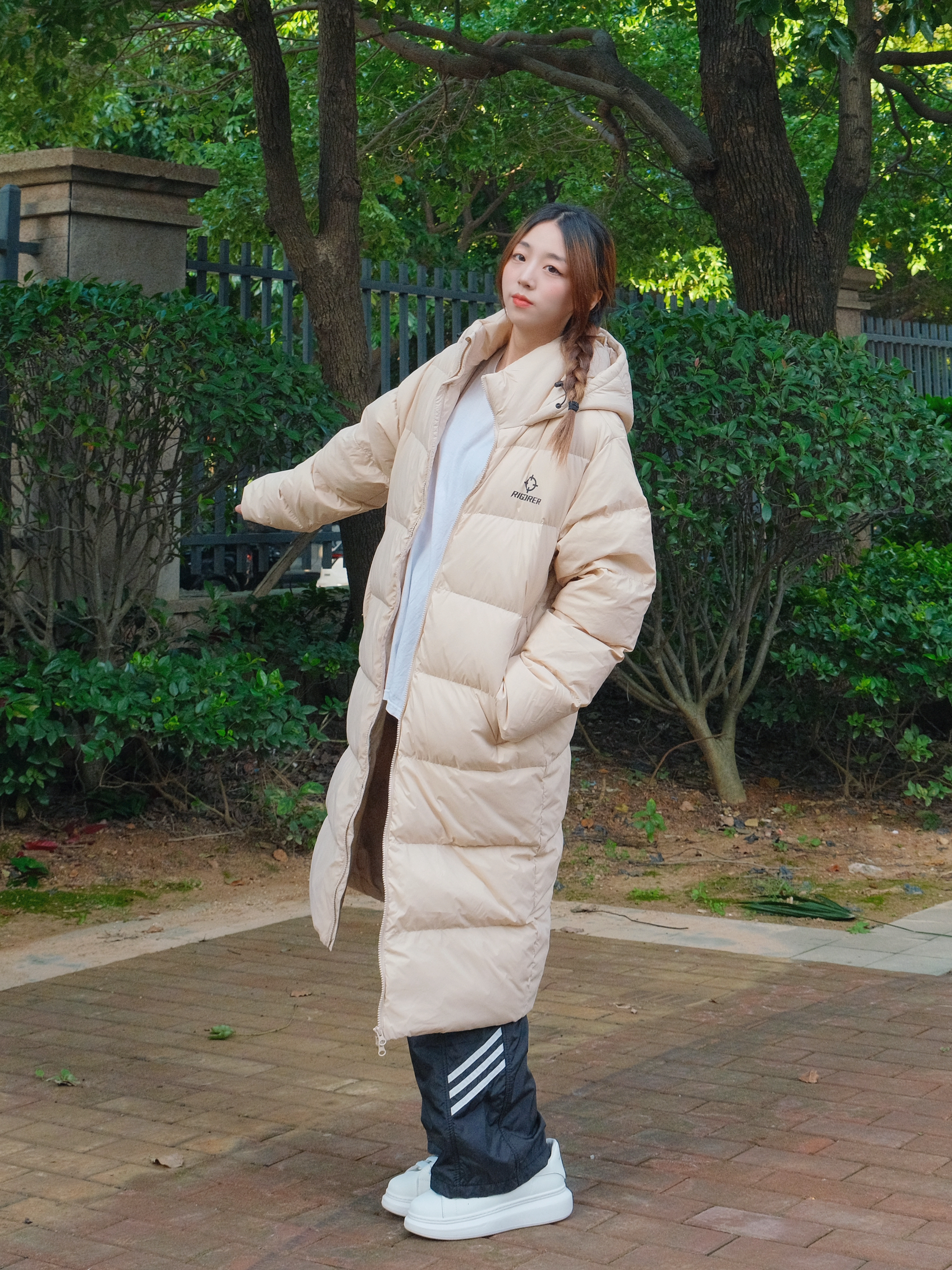 这里是小铭同学的穿搭分享频道身高:168 体重:44 穿搭博主尊滴很卷! 俺已经准备好今年过冬的Io0k了耶 衣柜里当然得囤一件长款羽绒服啦 淡粉色的冬天里穿很显白哇 ~ 再搭配一双小白鞋 毫不费力的冬日穿搭模版 有了