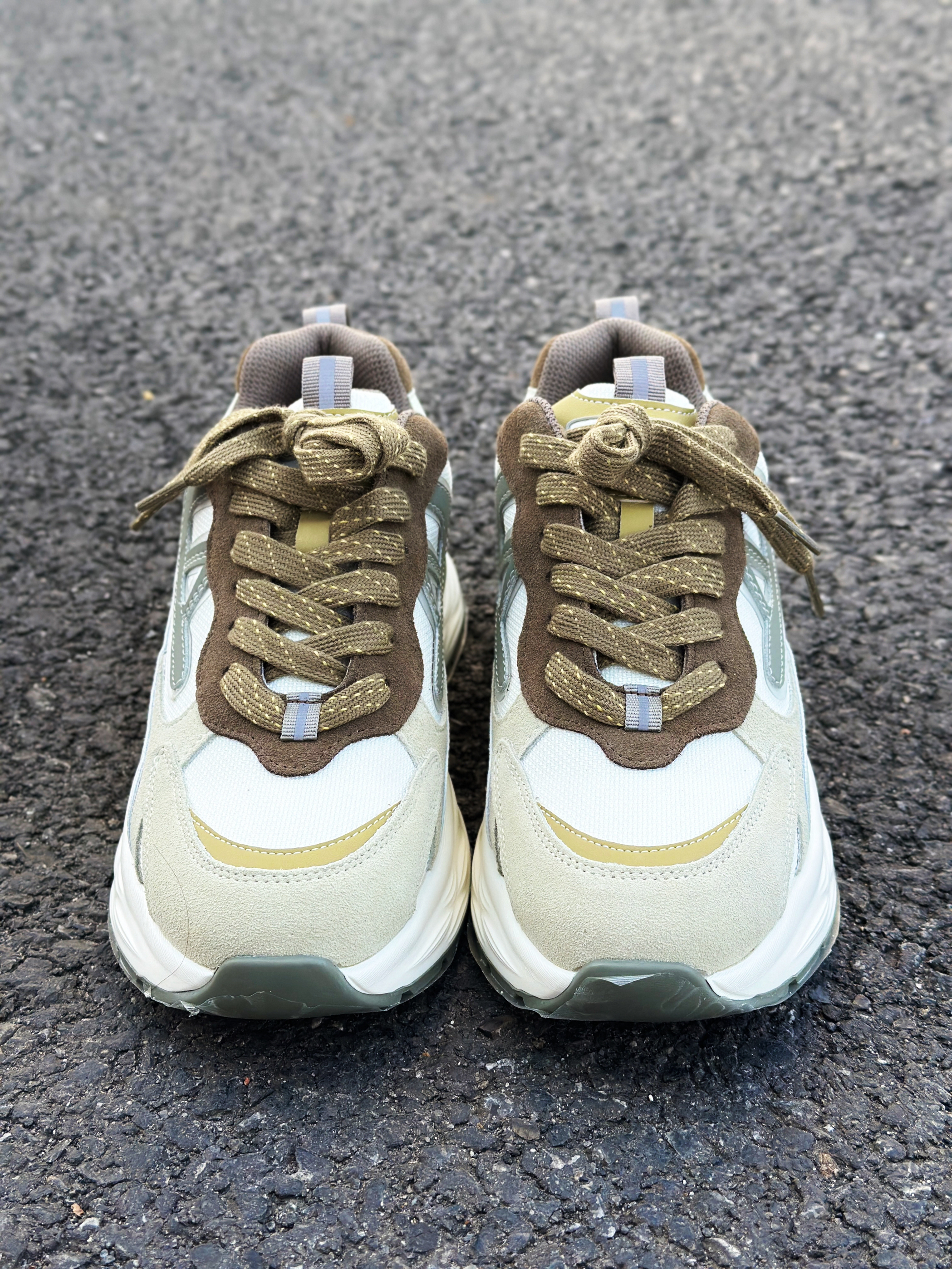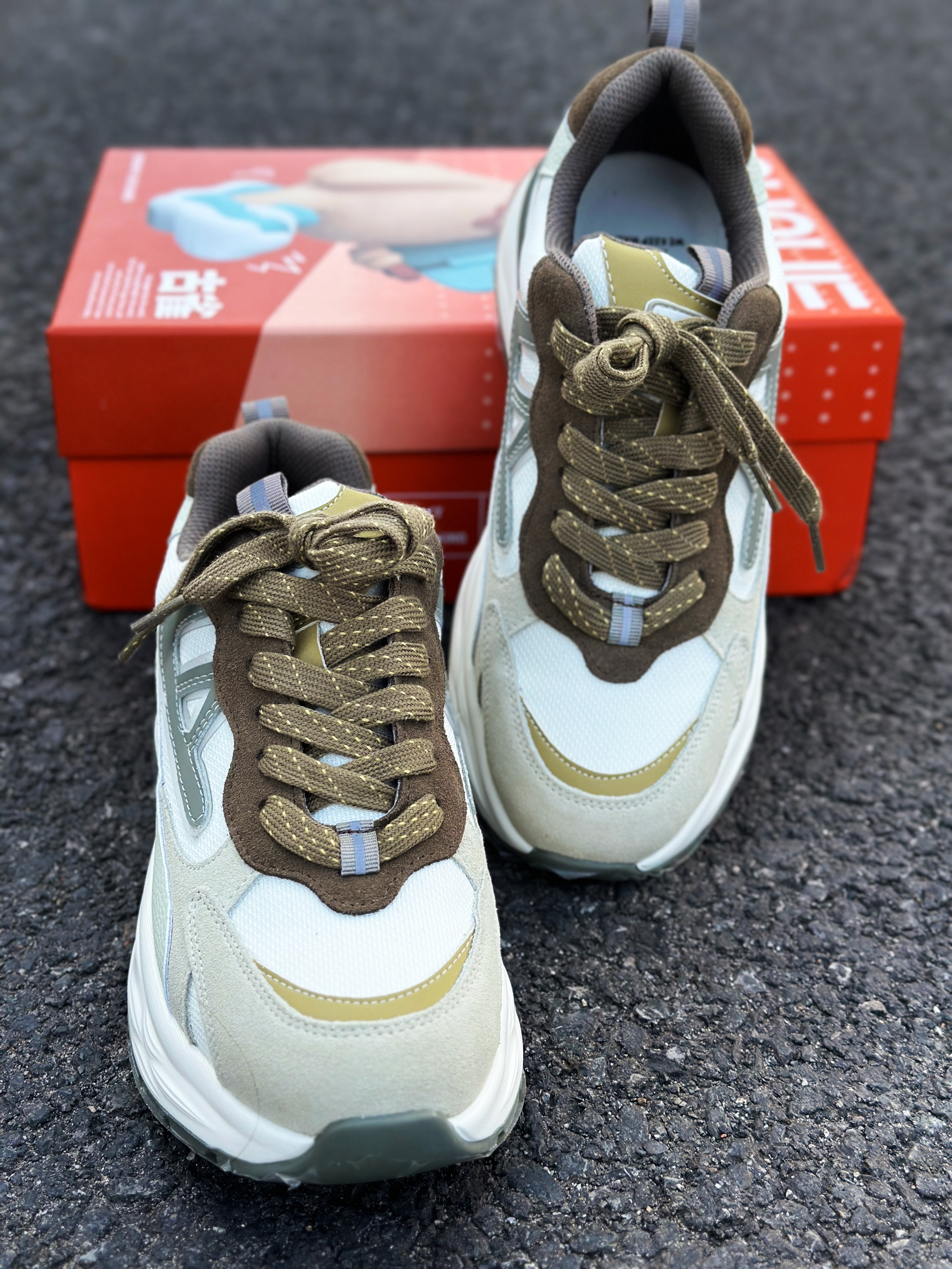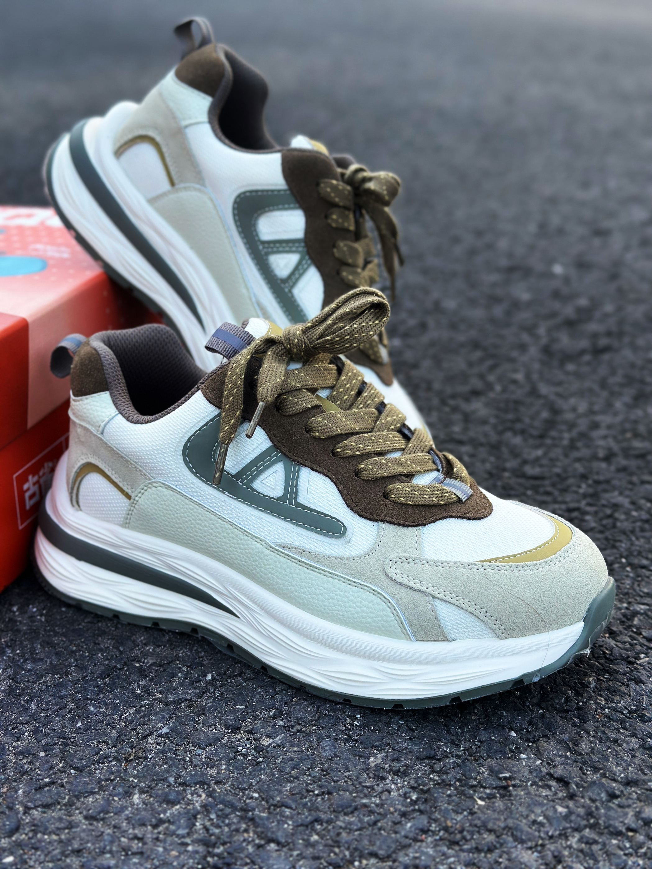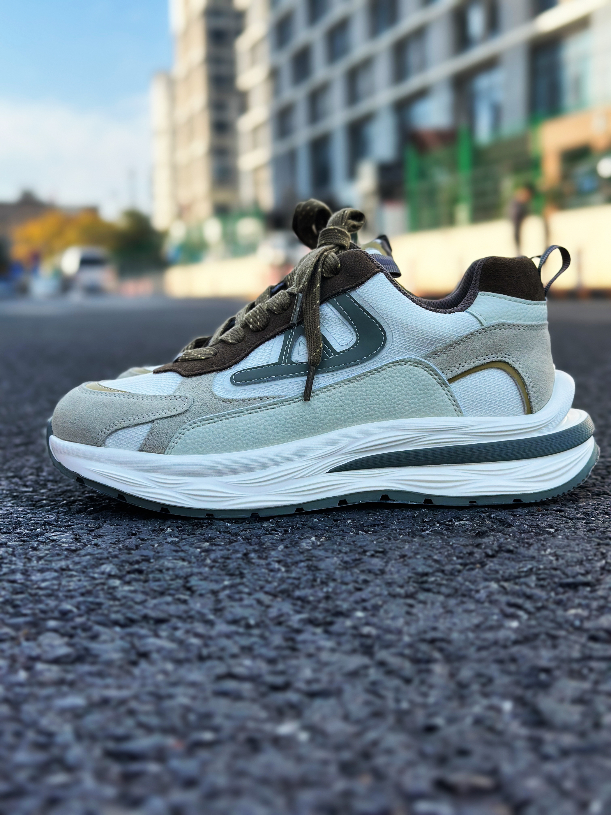 halo 阿迪来了,本期和大家分享的是一双我最近入手的来自古雀🏠复古增高百搭老爹鞋! 整双鞋外观配色非常的抢眼!采用低饱和度的清晰抹茶白绿配色,运动时尚感拉满!让人很有上🦶的欲望! 鞋面这块采用了超纤皮材质,透气包裹性很好!舒适度也不错。即使长时间穿着,也不会感觉太过闷脚! 另外厚实的中底,脚感非常的舒适!而且增高效果明显! 最后,组合橡胶大底,增强鞋底整体的抓地效果和耐磨性能! 总的来说!这双老...