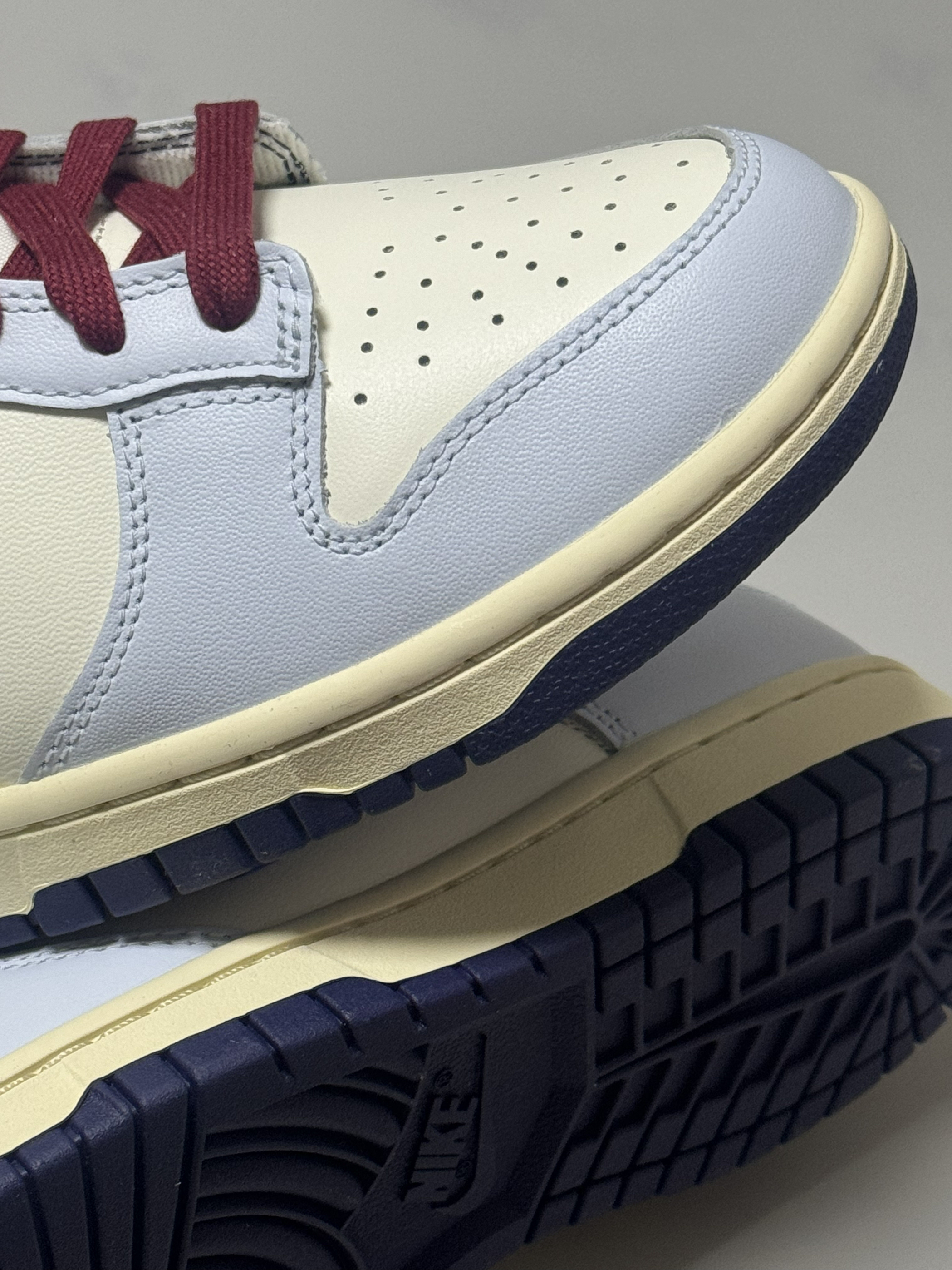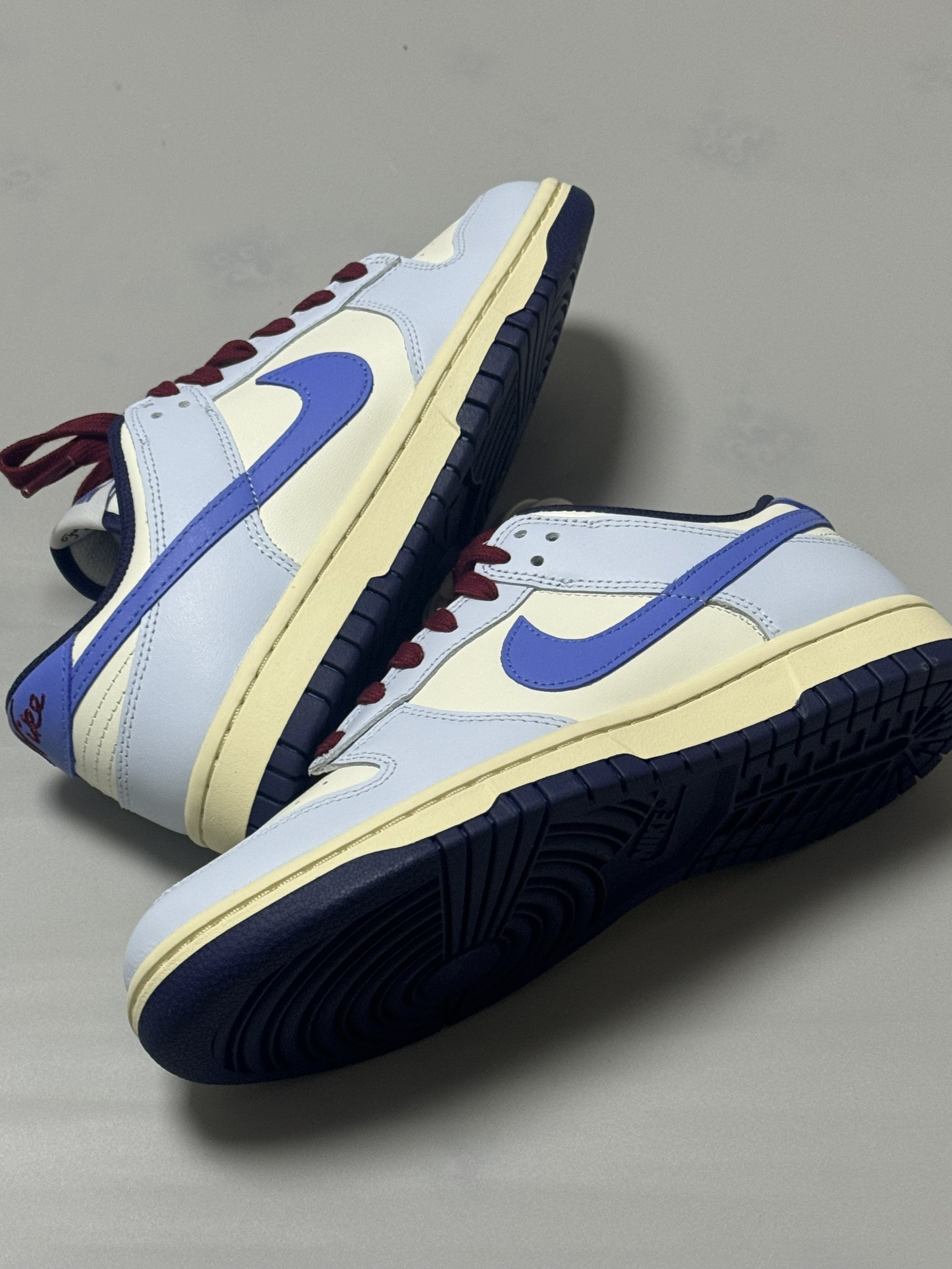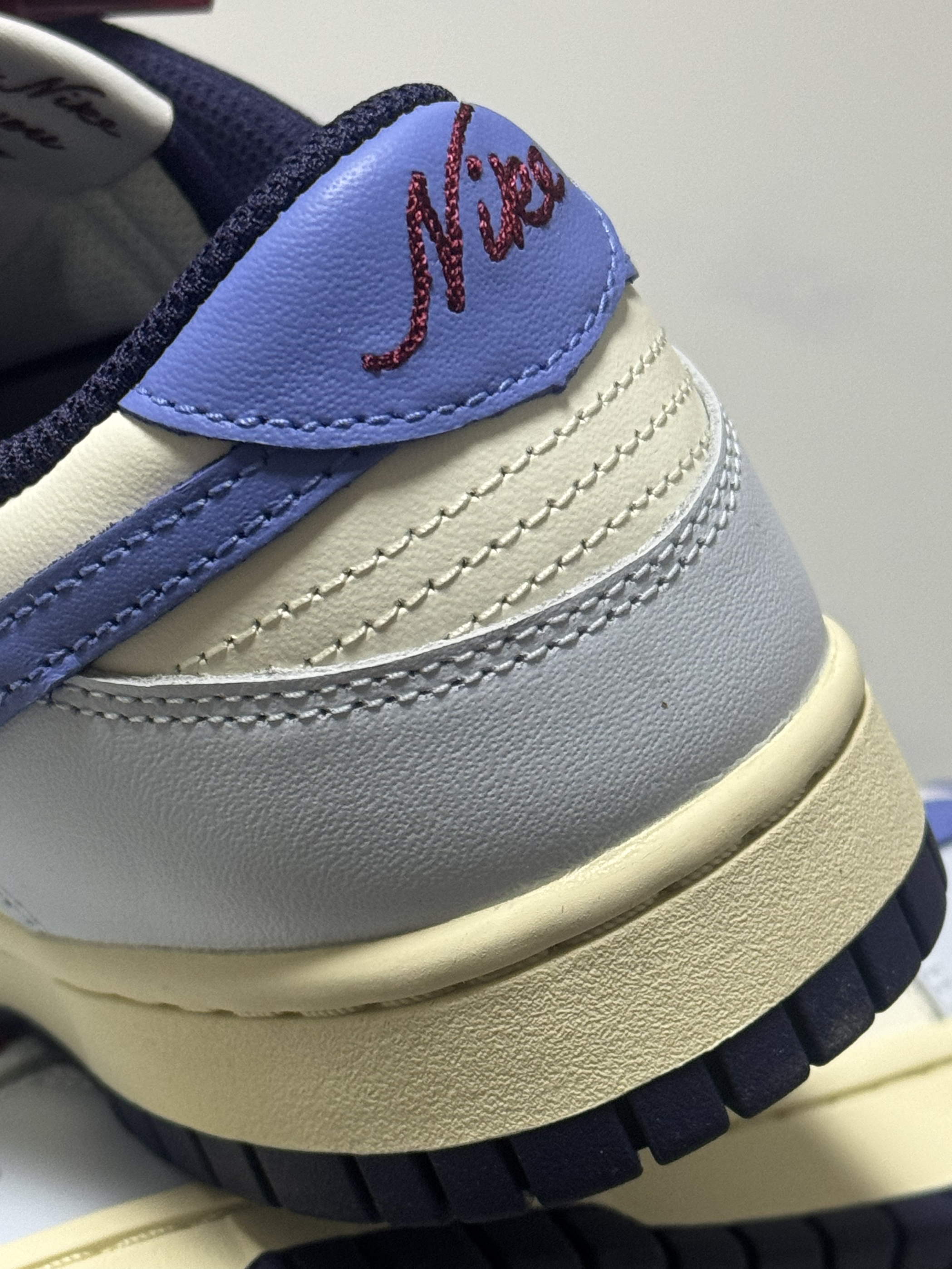 halo 阿迪来了,马上圣诞节就要到了,本期和大家分享一双我个人最近入手非常好看的一双dunk low! 没错,就是这款米蓝配色的dunk low,整双鞋以米白色为主调,搭配雾霾蓝鞋身框架,视觉效果简约大气。 鞋身采用荔枝纹皮革,而 Swoosh及后跟则采用淡紫色点缀,极具视觉冲击力。 最后酒红色的鞋带虽然非常的拉风,但是可能会觉得有些不太协调,不过好在🈶一个赠送的米白色鞋带! 总的来说,这双鞋颜...