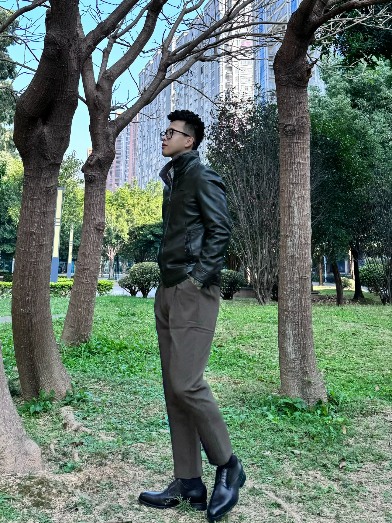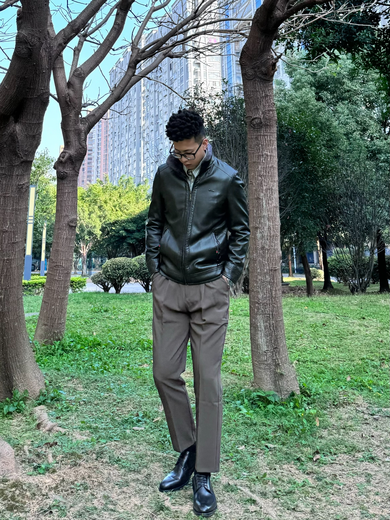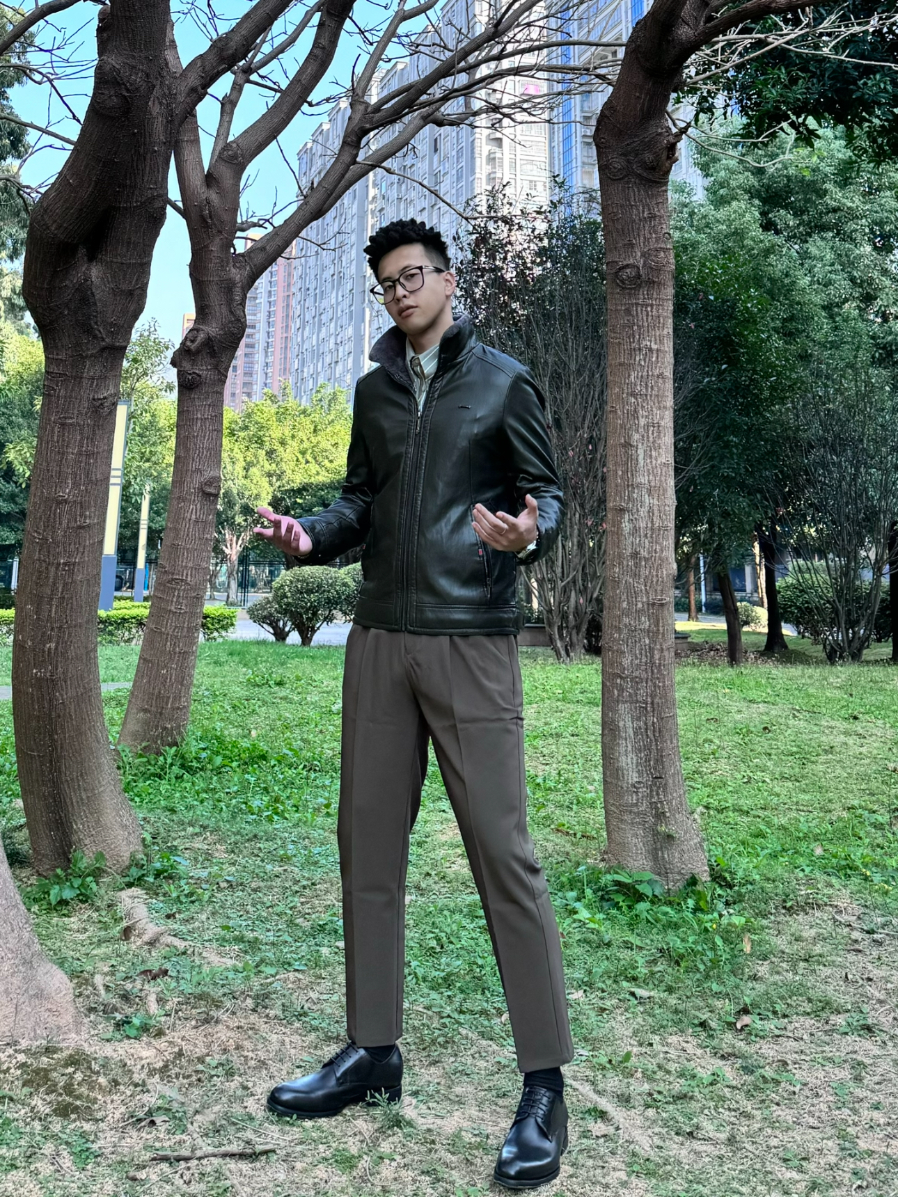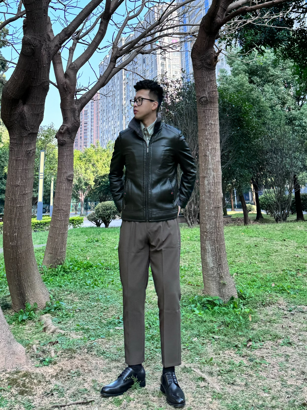 工作常常需要出差,又不想穿得太老气 给自己安排了一套轻熟商务穿搭 — 内搭选择了一件浅色系的衬衫国搭配上加绒的修身皮外套 冬季好看的同时也要注意保暖啦 鞋子就选择黑色的尖头皮鞋给人眼前一亮的感觉~ 一 这一套穿搭不会显得过于正式商务洽谈 见客户正正好