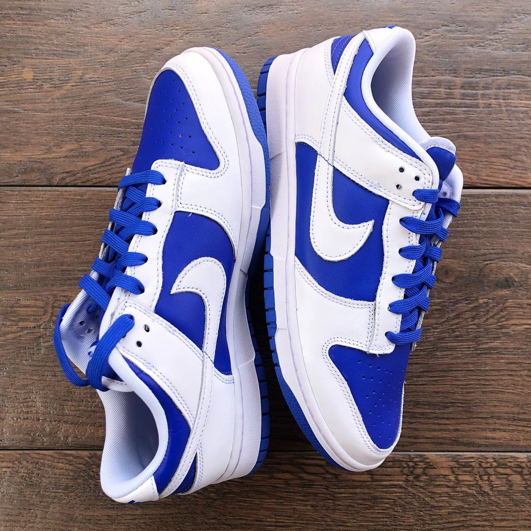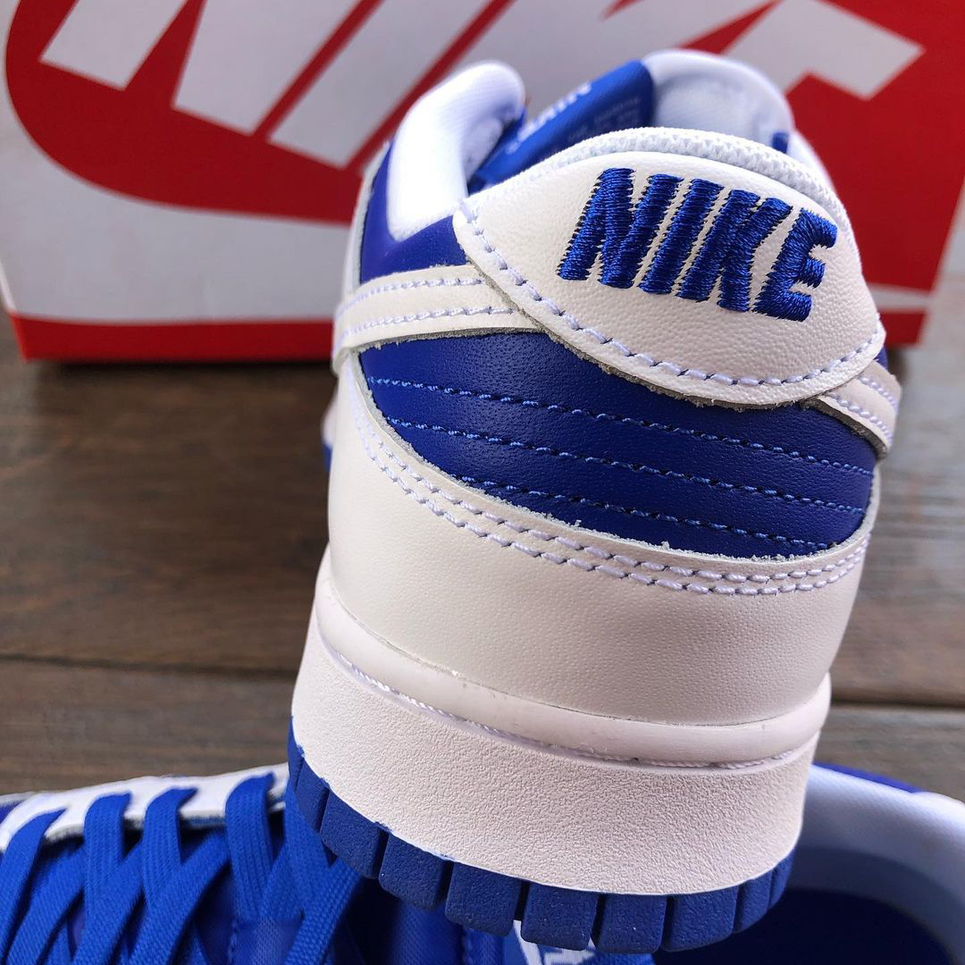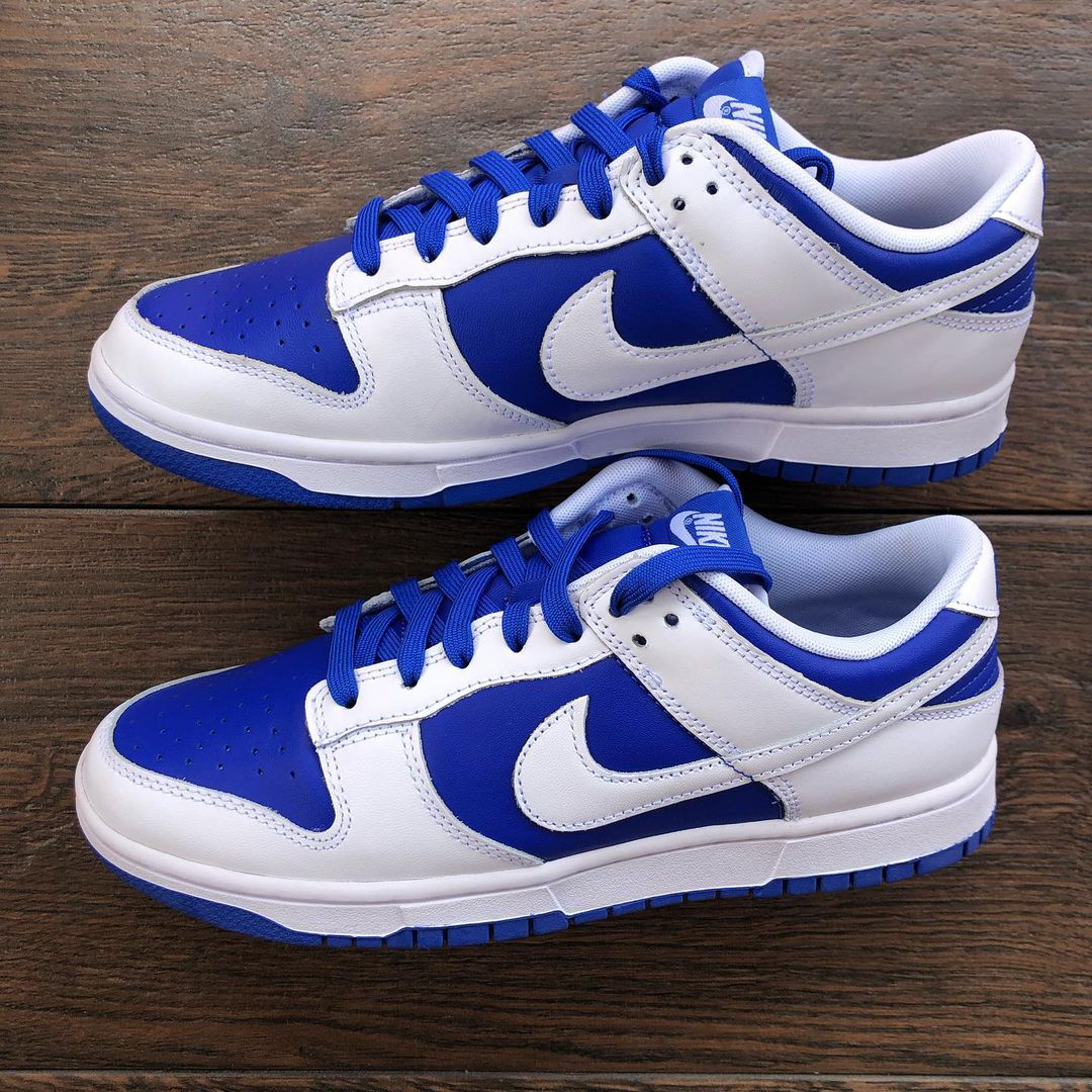 鞋名:Dunk Low Retro "Racer Blue" 白蓝 外观及细节: 外观方面这双鞋子与其他Dunk是没有分别的,配色上使用白色与蓝色的组合搭配,使用白色皮革做为主框架结构,蓝色皮革做为鞋面与鞋身侧面的填充,两侧的swoosh也是使用了白色皮革来制作,与主框架相融合,鞋舌部分是运用了织物材料,能有效保证透气性,但其选材略微偏硬,舒适度没有网眼布来的好,后跟上缀有蓝色耐克刺绣,白色...