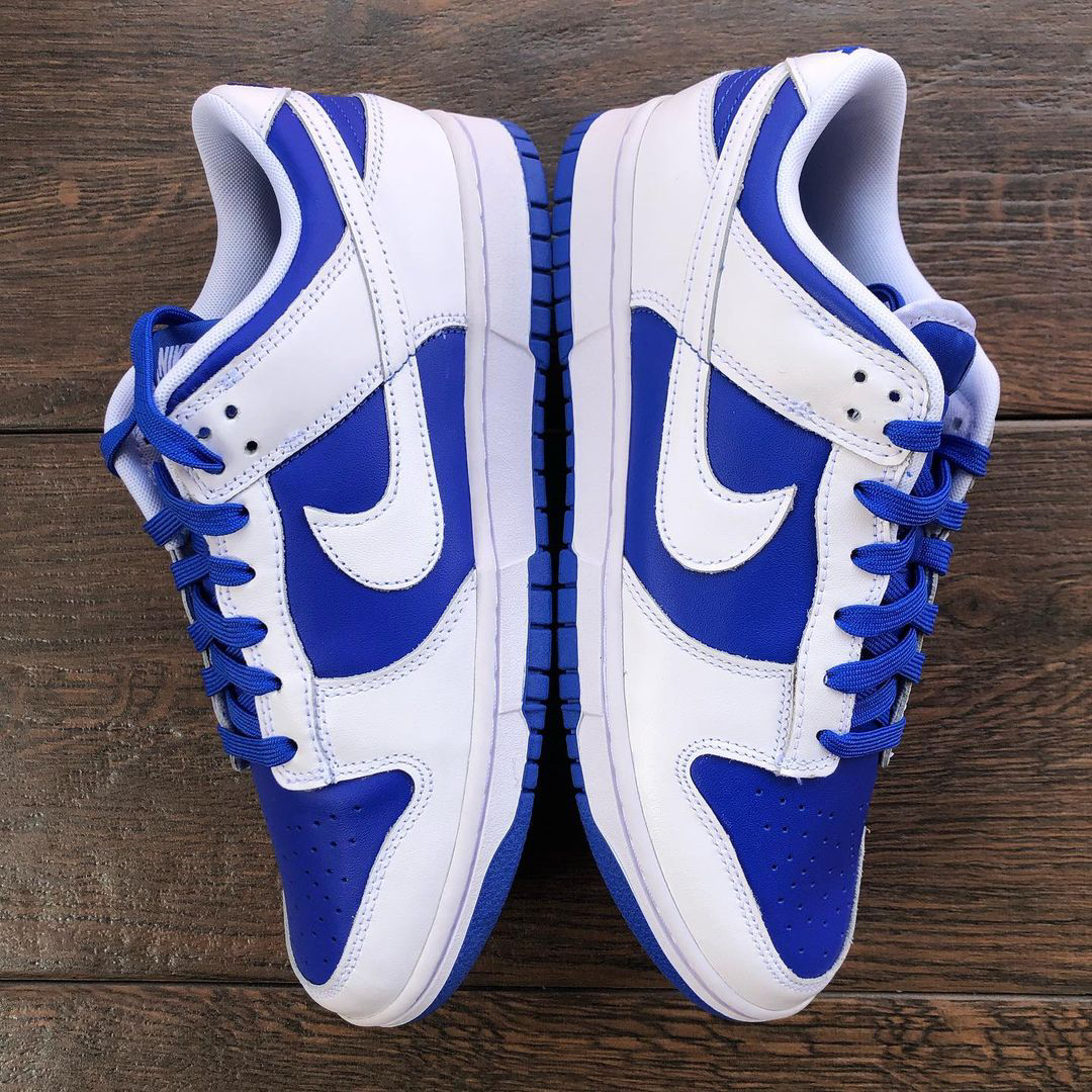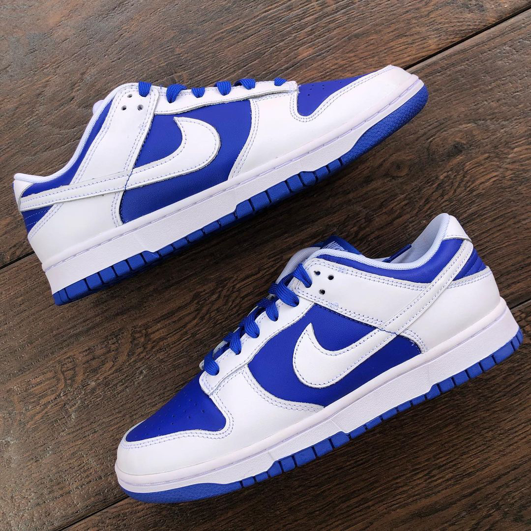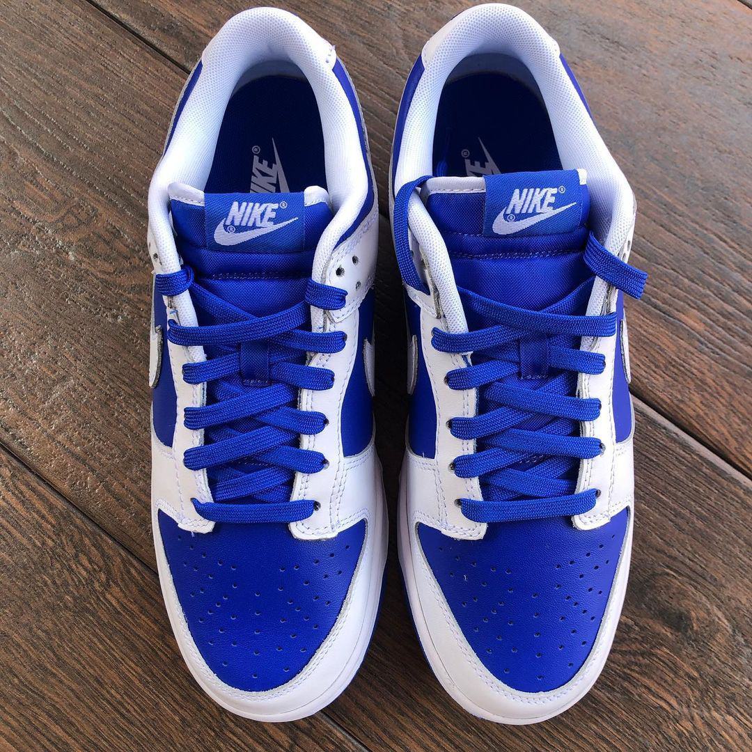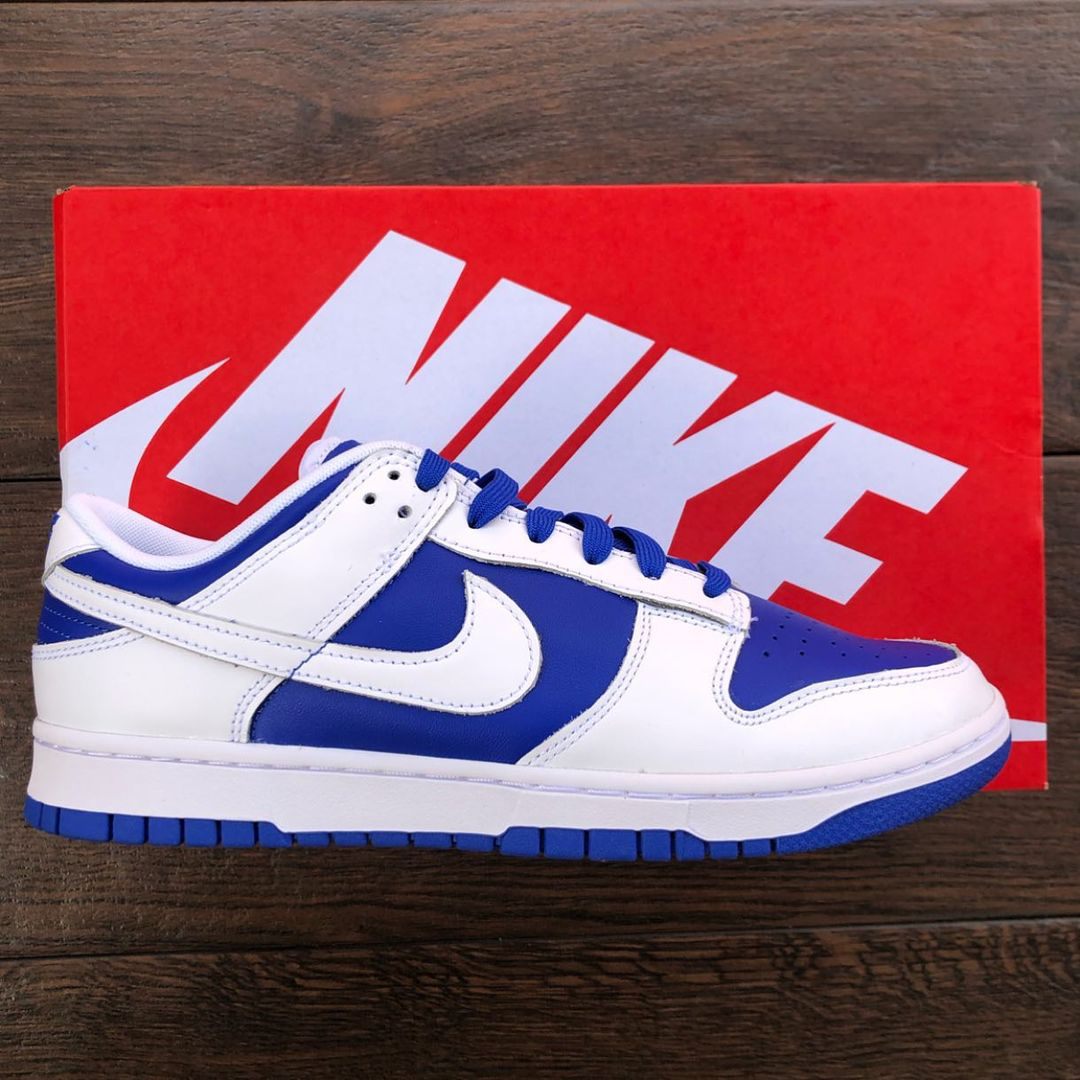 鞋名:Dunk Low Retro "Racer Blue" 白蓝 外观及细节: 外观方面这双鞋子与其他Dunk是没有分别的,配色上使用白色与蓝色的组合搭配,使用白色皮革做为主框架结构,蓝色皮革做为鞋面与鞋身侧面的填充,两侧的swoosh也是使用了白色皮革来制作,与主框架相融合,鞋舌部分是运用了织物材料,能有效保证透气性,但其选材略微偏硬,舒适度没有网眼布来的好,后跟上缀有蓝色耐克刺绣,白色...