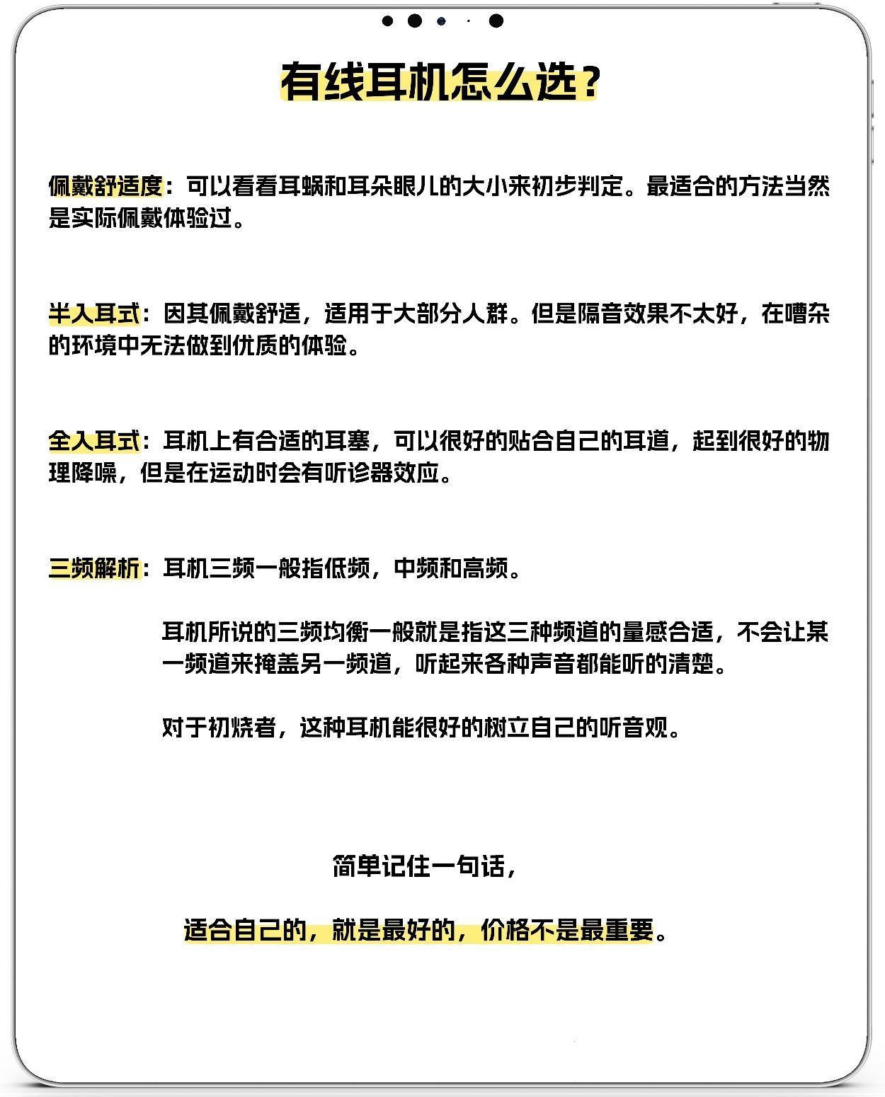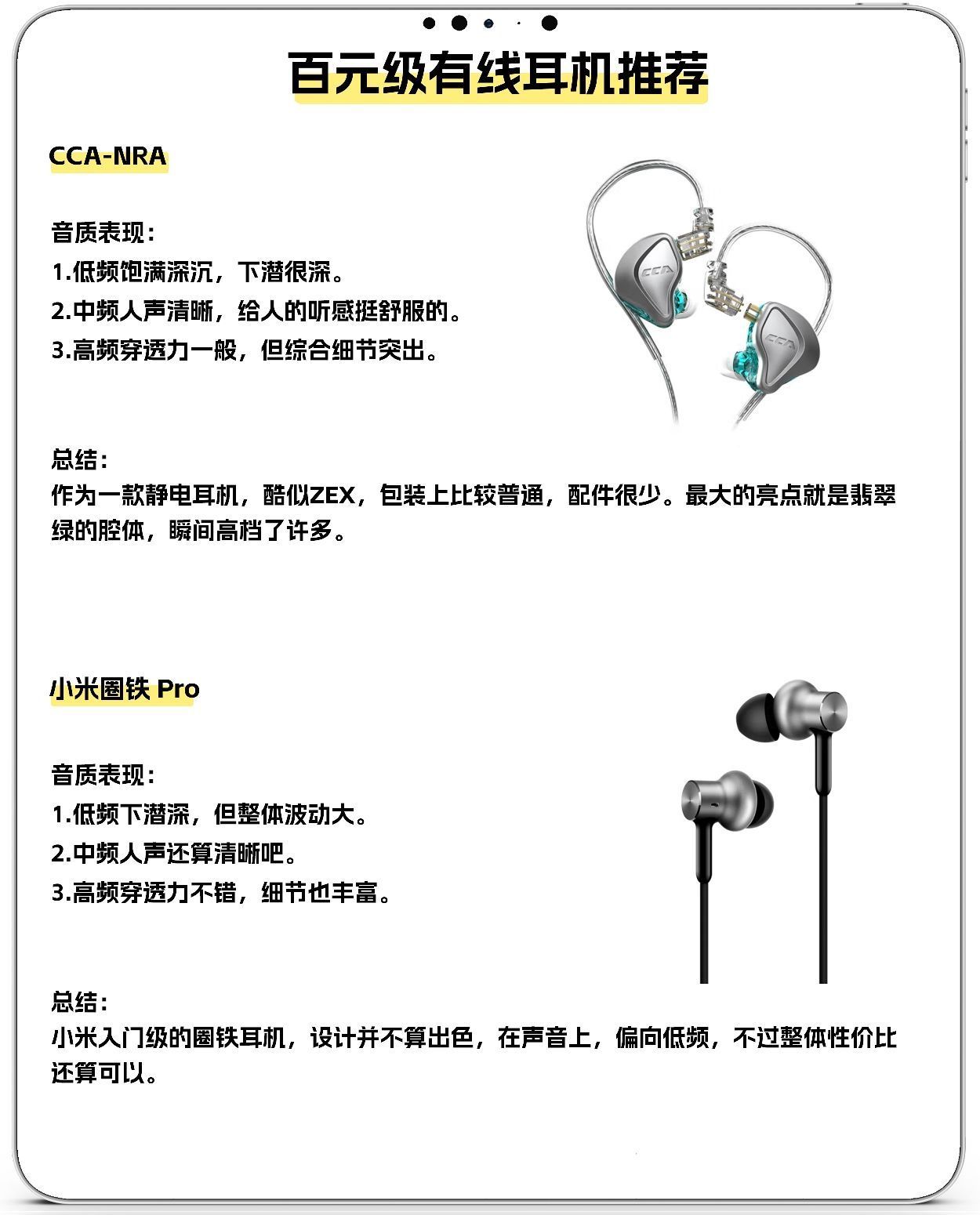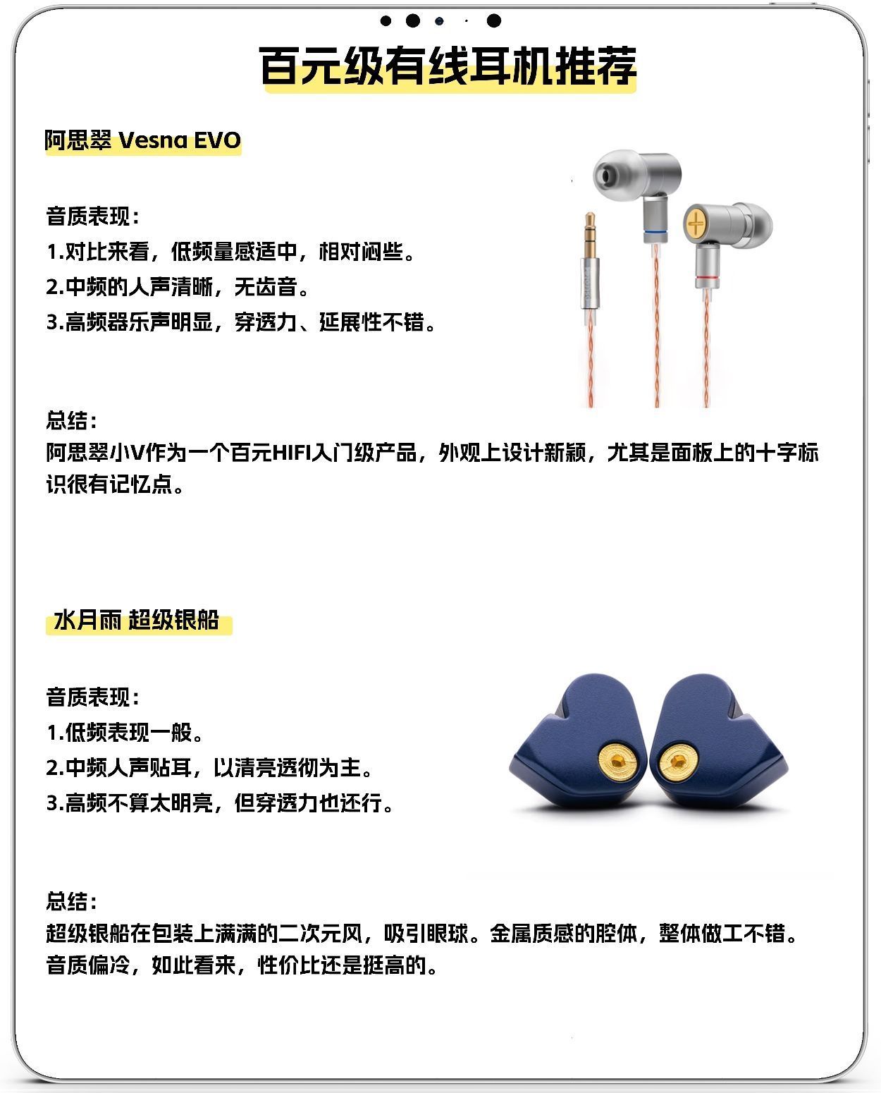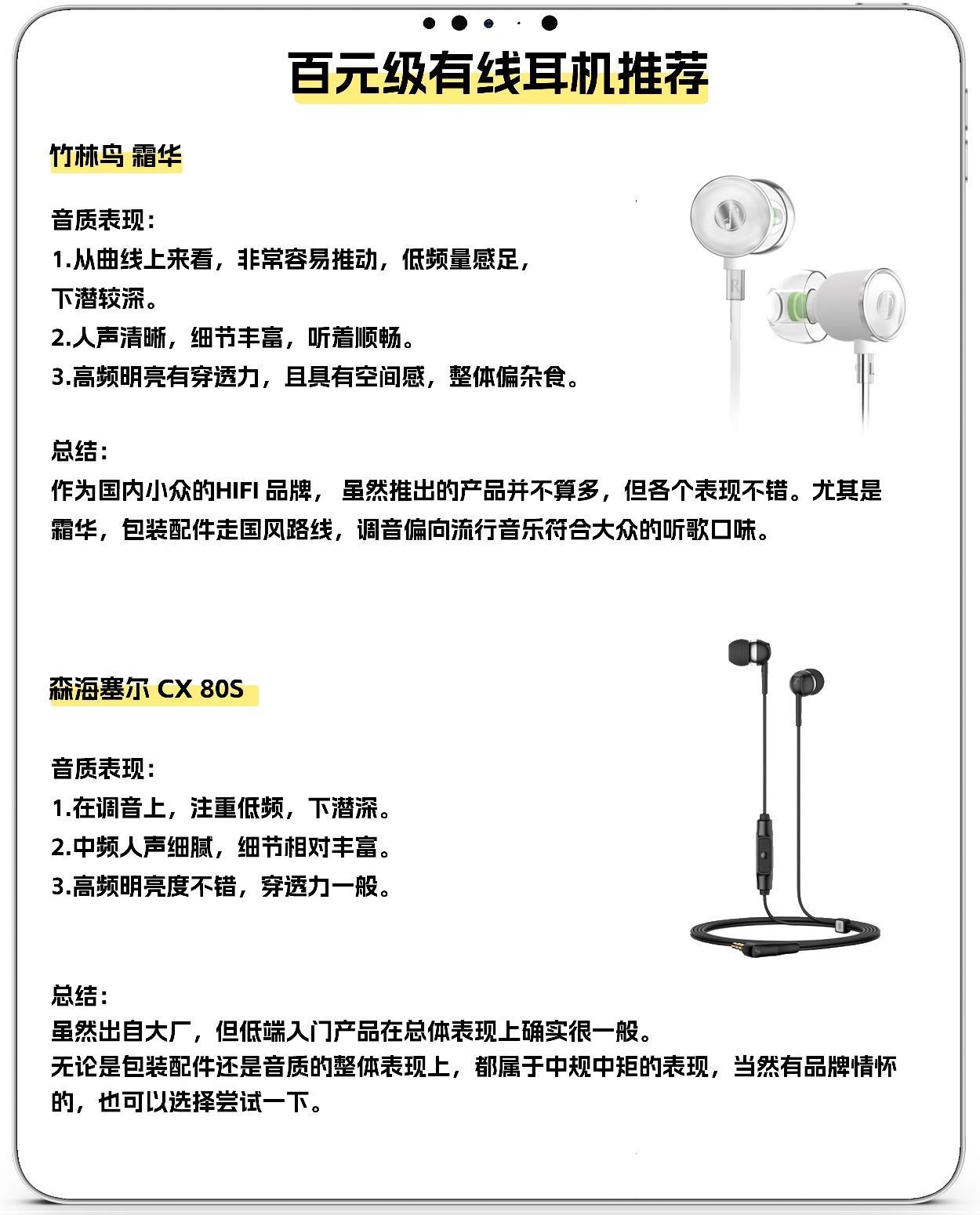 目前,真无线蓝牙耳机已经占据了大部分市场,但仍旧有一些不错的有线耳机值得入手,且价格也都在百元级别,性价比很高! 图2:选购要点 图3-图6:有线耳机推荐