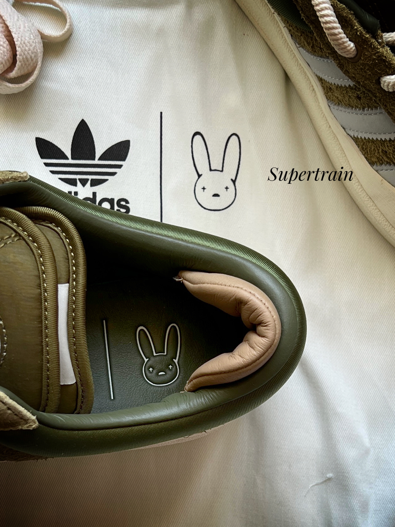 BADBUNNY几次联名都有入手,真的是高规格联名好鞋。这次推出的campus新配色更加绝绝子,自然不能放过。深绿、浅绿加米白大底,像极了Adimatic的绿棕,无疑是我个人最喜欢的一款配色。 ▶️设计细节:鞋身采用了质感超好的翻毛皮,牛皮与织物组成。与上次白色配色不同的是,这双鞋跟内侧还是纯皮,但是外侧一圈则用的是织物,丝绸质感非常亮眼,与鞋身绿色麂皮搭配更显层次。 ▶️尺码选择:因为之前买的白...