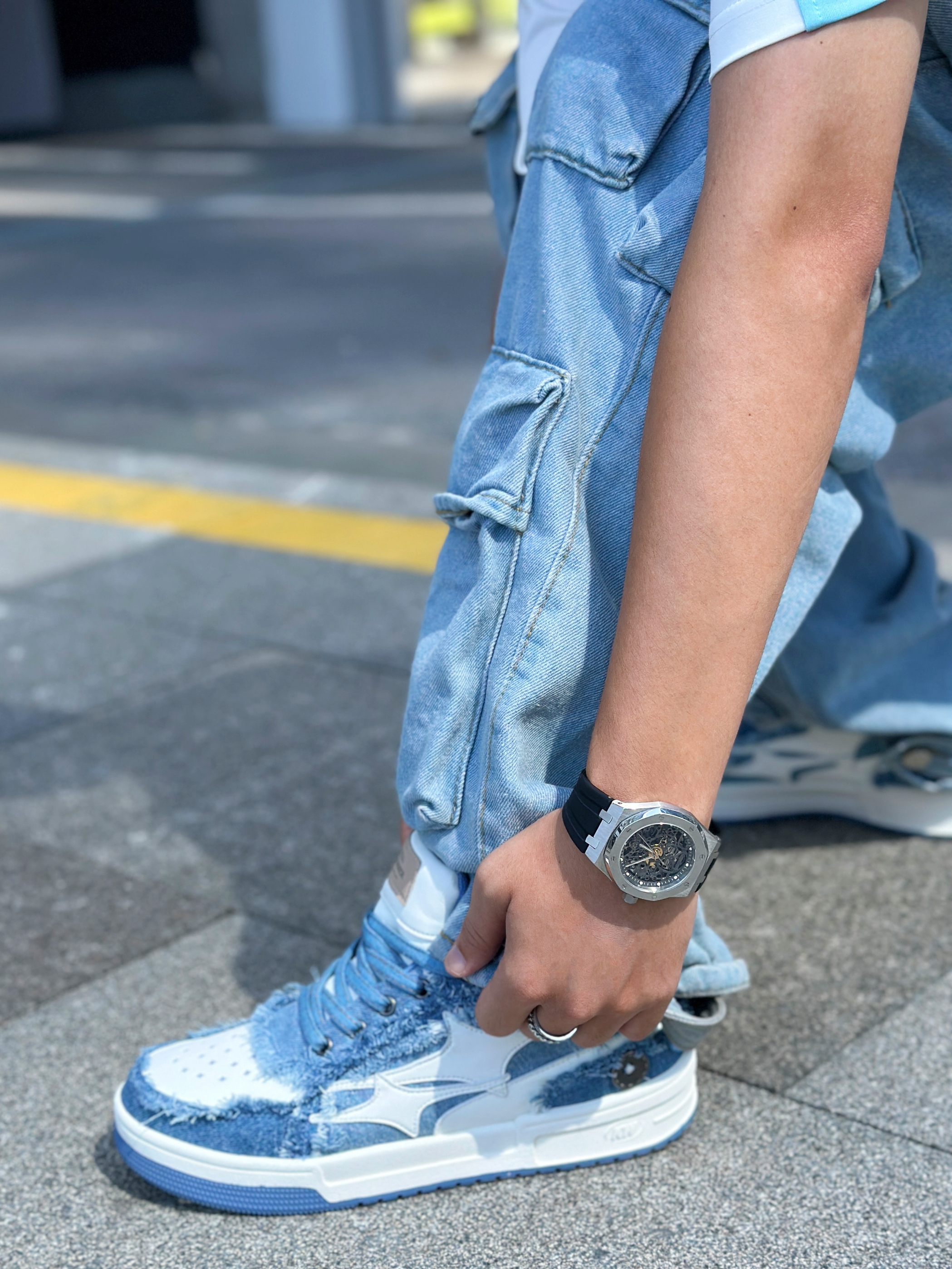 - 谁说多巴胺只能是粉色💗 今天来点不一样的蓝~感受色彩魅力🤩 - 潮人出门先来点配饰点缀一下! 这款格雅国潮腕表⌚️是我最近入手的~ 是不是很帅气,简约配色尽显高级感 精致的表盘也是令我青睐的一点👍 搭配任何风格的服饰都可以驾驭哦 - 蓝白配的条纹球衣➕多口袋工装牛仔裤 这双破碎牛仔星星💫板鞋也是帅的嘞~ 穿它出门回头率👀那是相当的高🆙 - 今日份“蓝”朋友穿搭就分享到这里啦! - ⌚️: G...