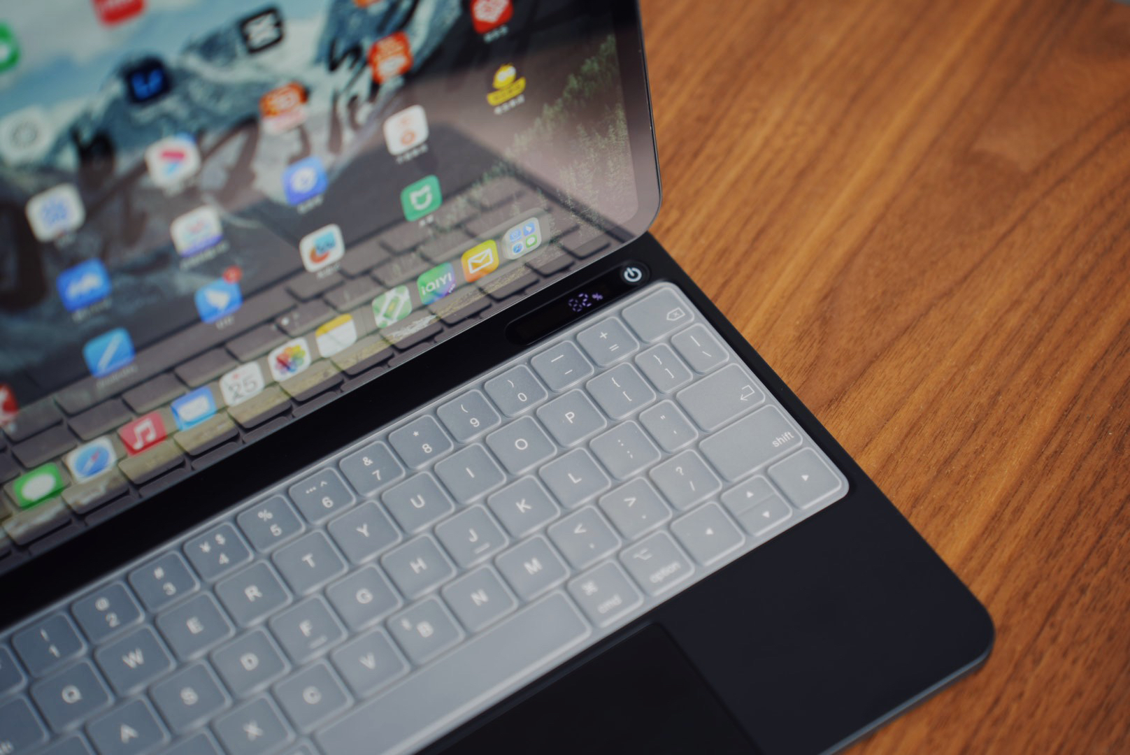 出门带电脑不方便?带个iPad又需要文字工作的时候就很不方便,于是我整了一个倍思键盘保护套数显版,用了几天确实好方便! 这块键盘整体也是做到了官方同款的磁吸悬浮支架,可视角度不错平时追剧很舒服。比市面上没有磁吸悬浮又称官方平替的好用不少。并且整体磁吸力度很强 这个键盘采用的是剪刀式的按键,整体触控按压的回弹手感在这个体积下做的挺不错的。声音也不大,在图书馆也不会吵到别人。最有意思的是,在这么轻...