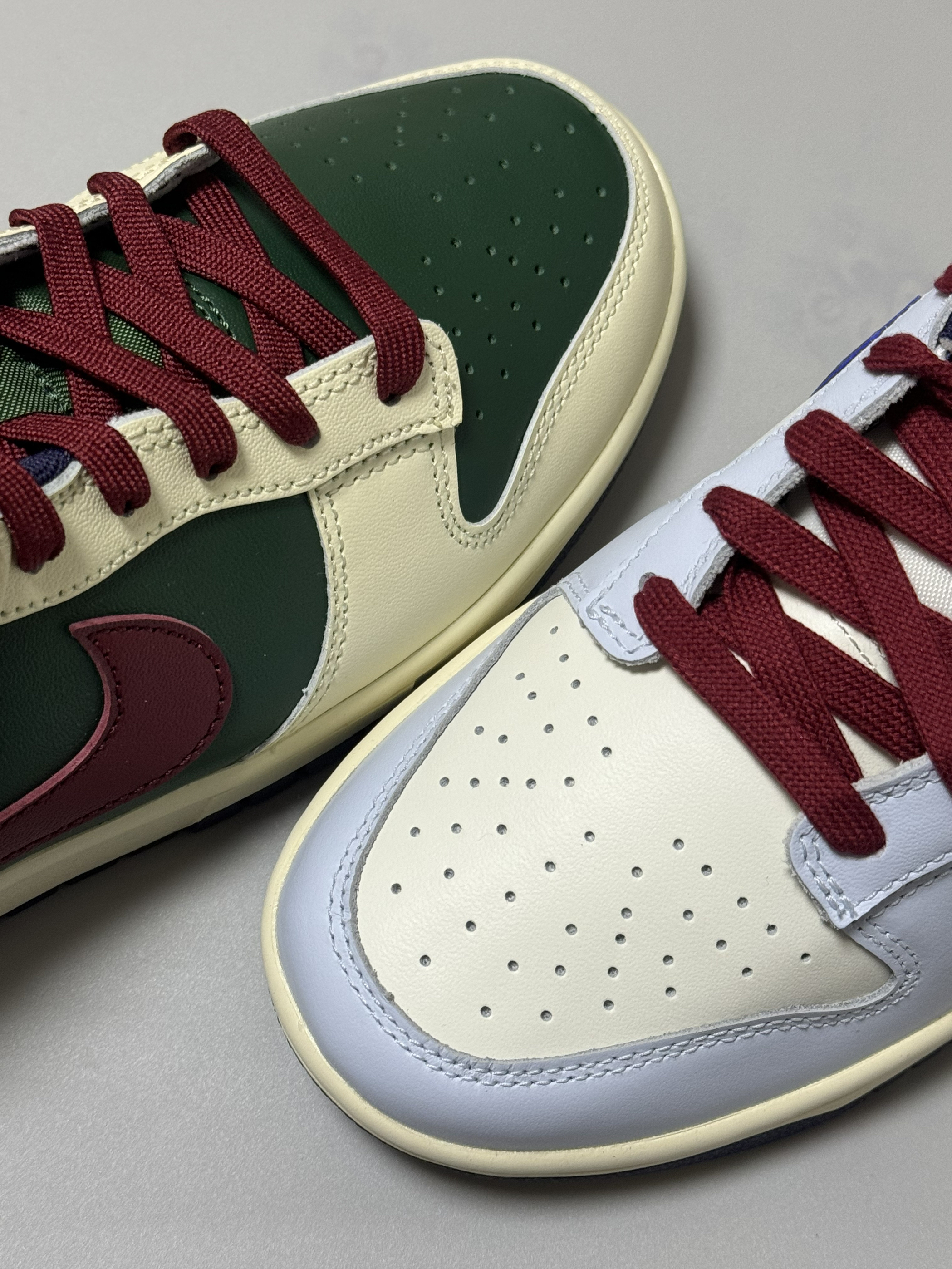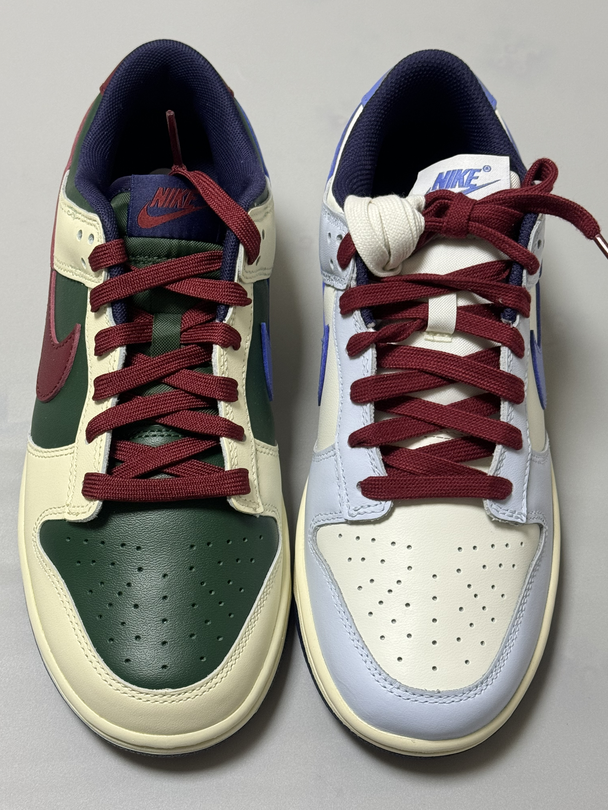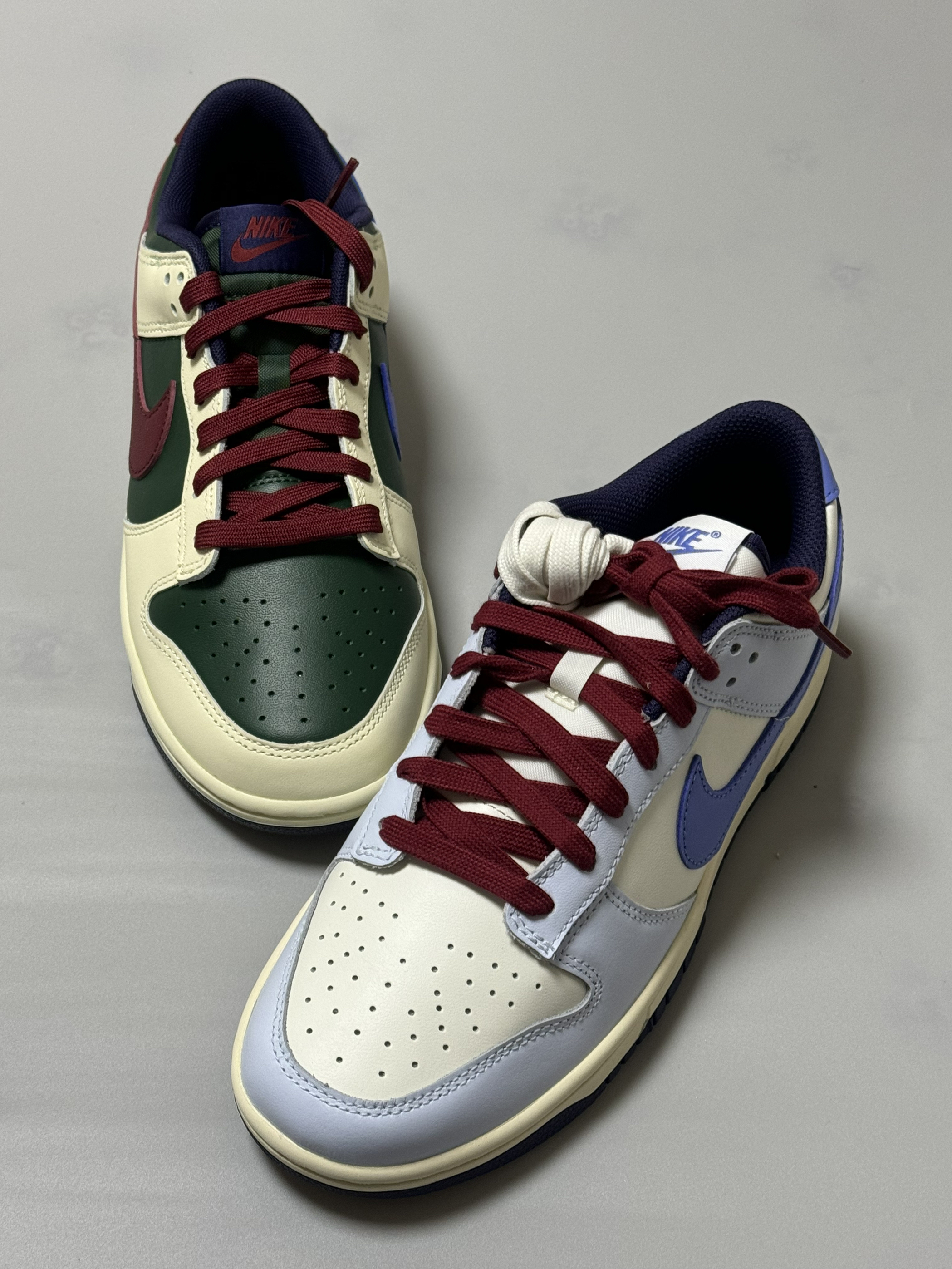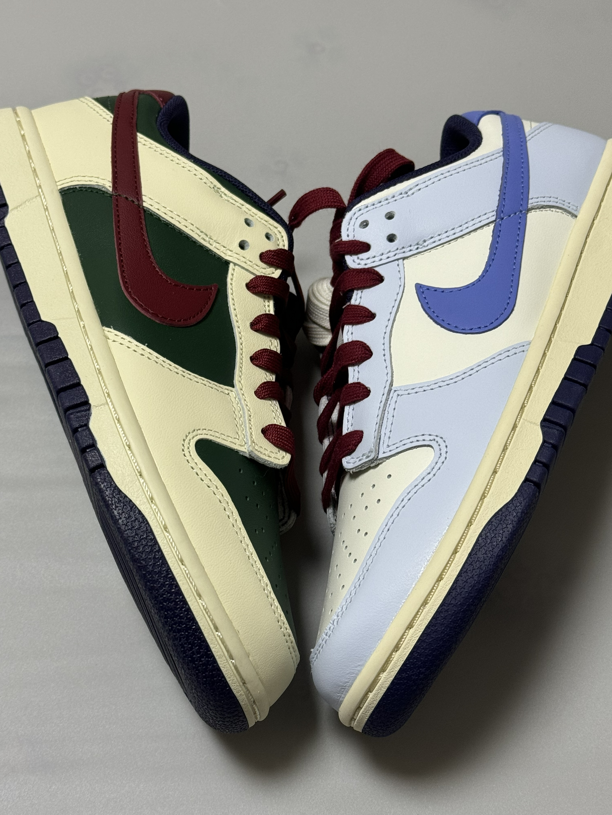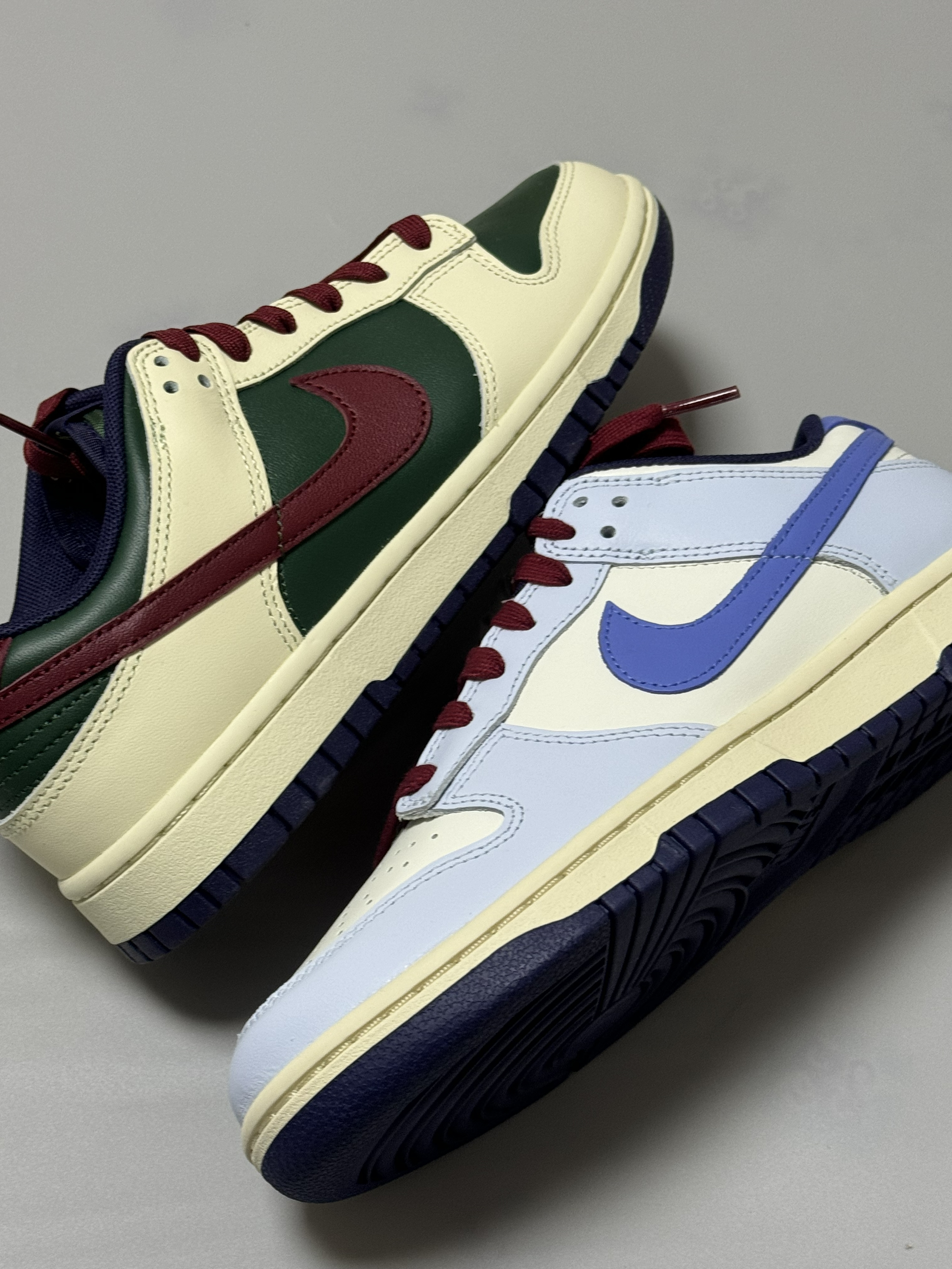 halo 阿迪来了,本期分享两双最近入手的dunk 两双鞋属于同一系列,设计方式相同!只是配色变化! 话不多说,我们这就来分别看看吧!首先,我们先来看看这双dunk low “米蓝”配色,整双鞋以米白色为主调,搭配雾霾蓝鞋身框架,视觉效果简约大气。 鞋身采用荔枝纹皮革,而 Swoosh及后跟则采用淡紫色点缀,极具视觉冲击力。 最后酒红色的鞋带虽然非常的拉风,但是可能会觉得有些不太协调,不过好在🈶一...