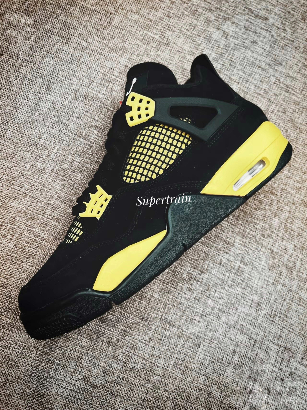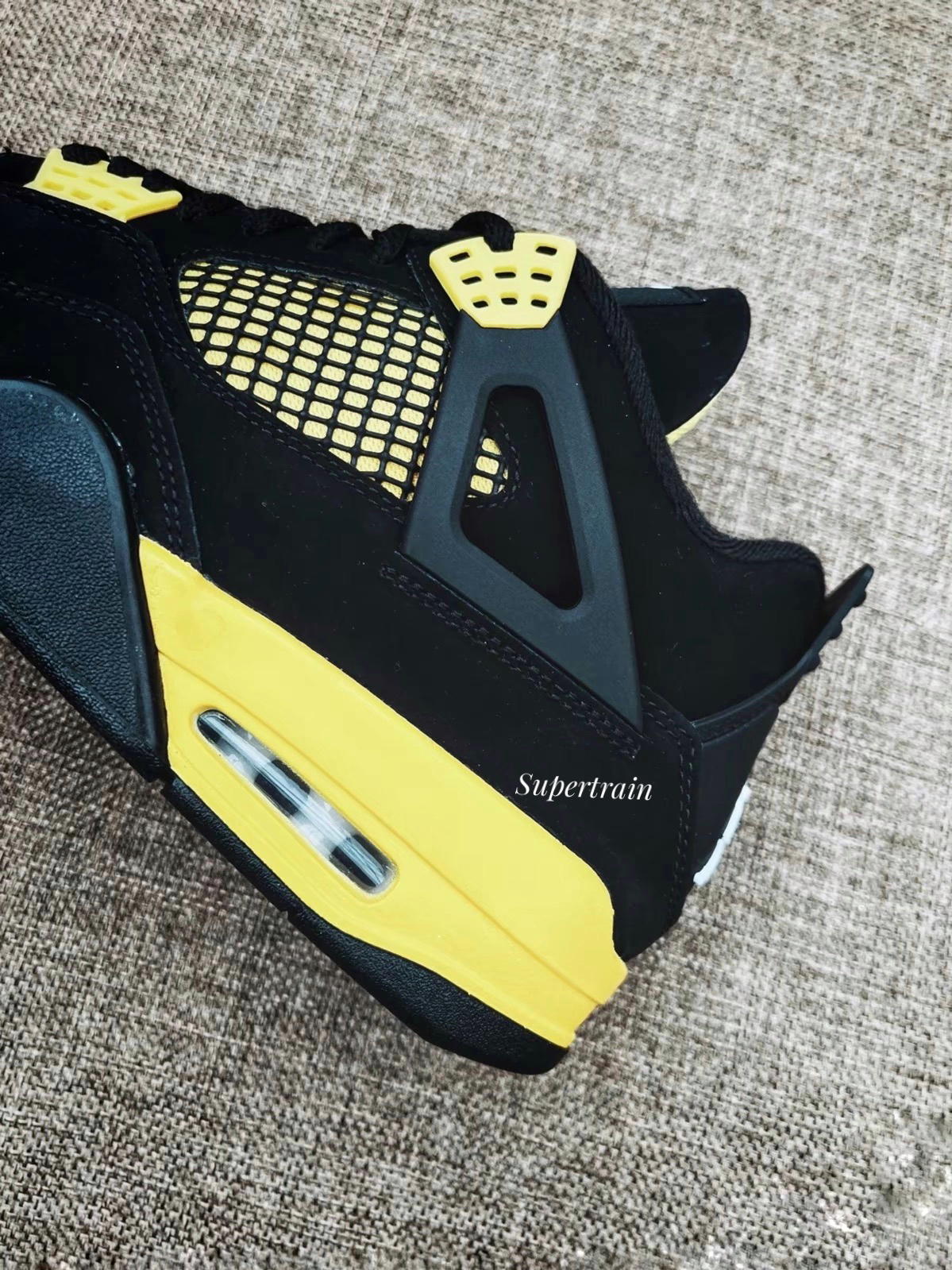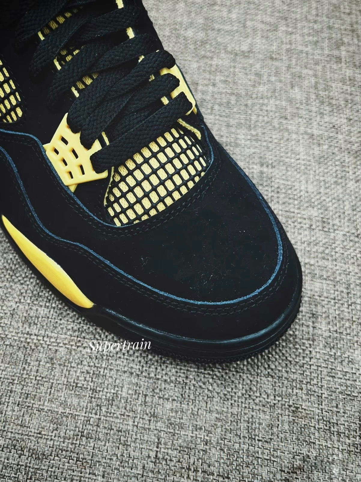作为很多鞋迷心中的白月光鞋款,今年的雷公复刻了解了多少鞋友心愿呀。 👟:麂皮材质还是比较细腻的,而且这次的做工真心还不错。黑黄属于AJ主流配色,而且避免了网格氧化烦恼。 👣:搭配啥裤子都轻轻松松,尺码方面正常选择就好。 👊:四代永不过时!