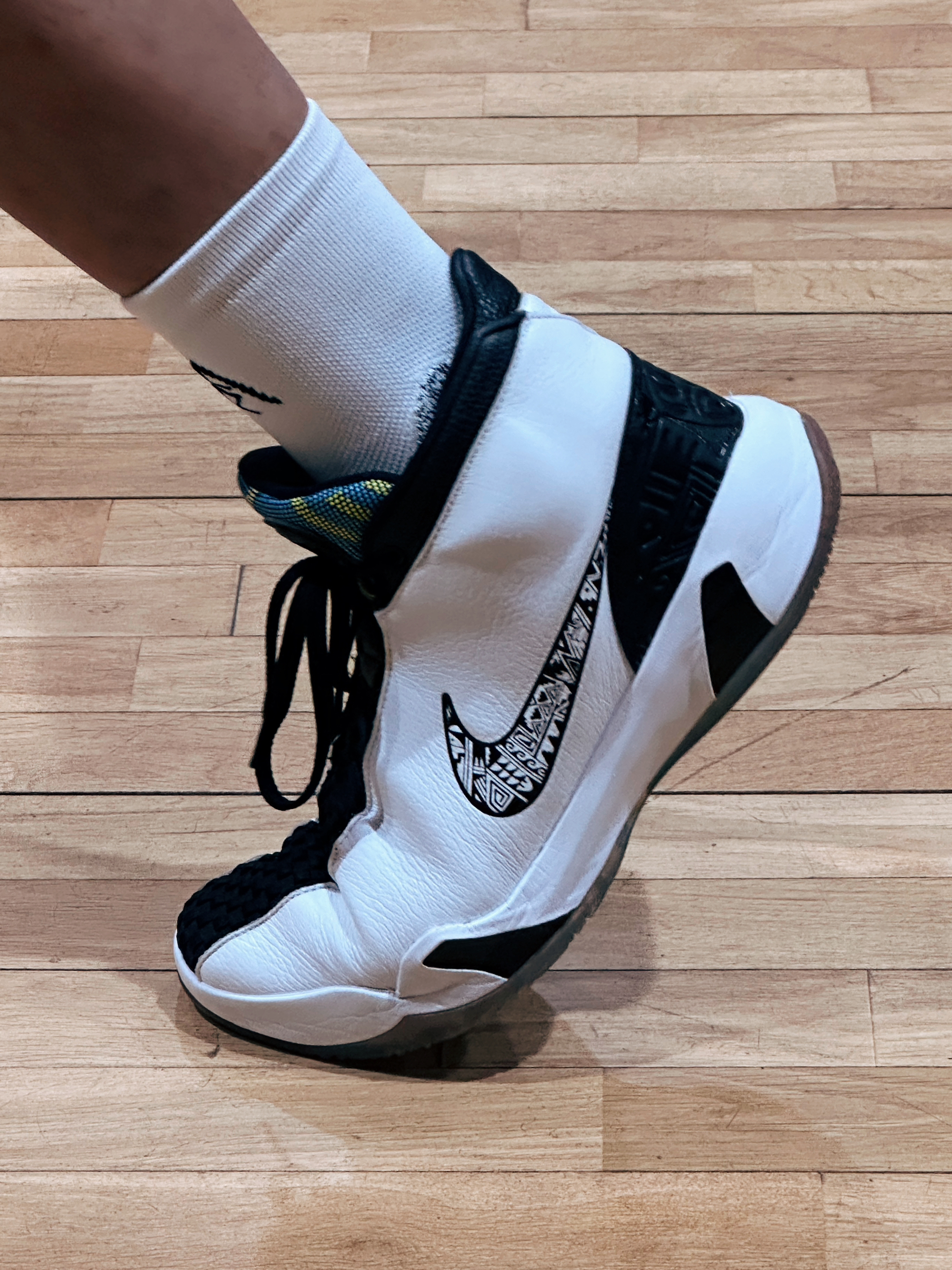 整双鞋采用了高帮的造型,设计语言上非常老派,我特喜欢这种复古的球鞋,在我心里高帮皮质的篮球鞋才符合我的认知!