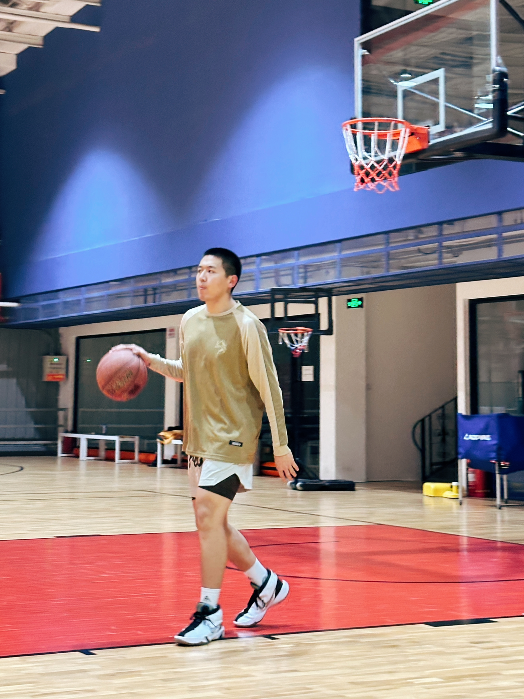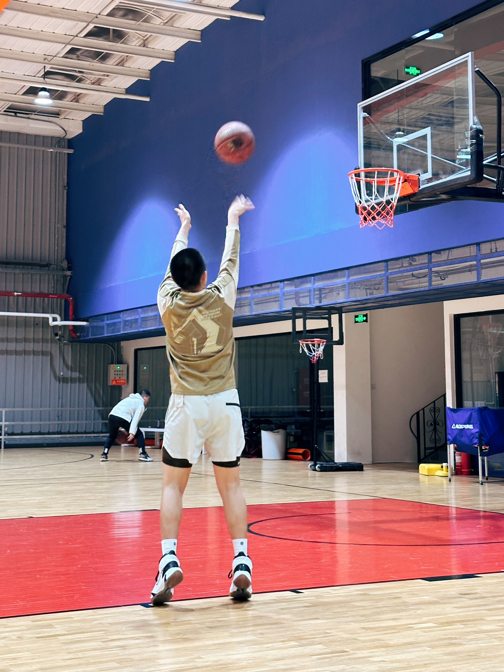 鞋脚一体性方面:不是很轻快!首先鞋身重量比较沉,其次中底结构调教的有些肉,跑起来有点拖沓!场地感根本就没有,满场跑下来会觉得脚酸,所以更适合不要求速度的兄弟们,最好是那种有点体重的地板流!